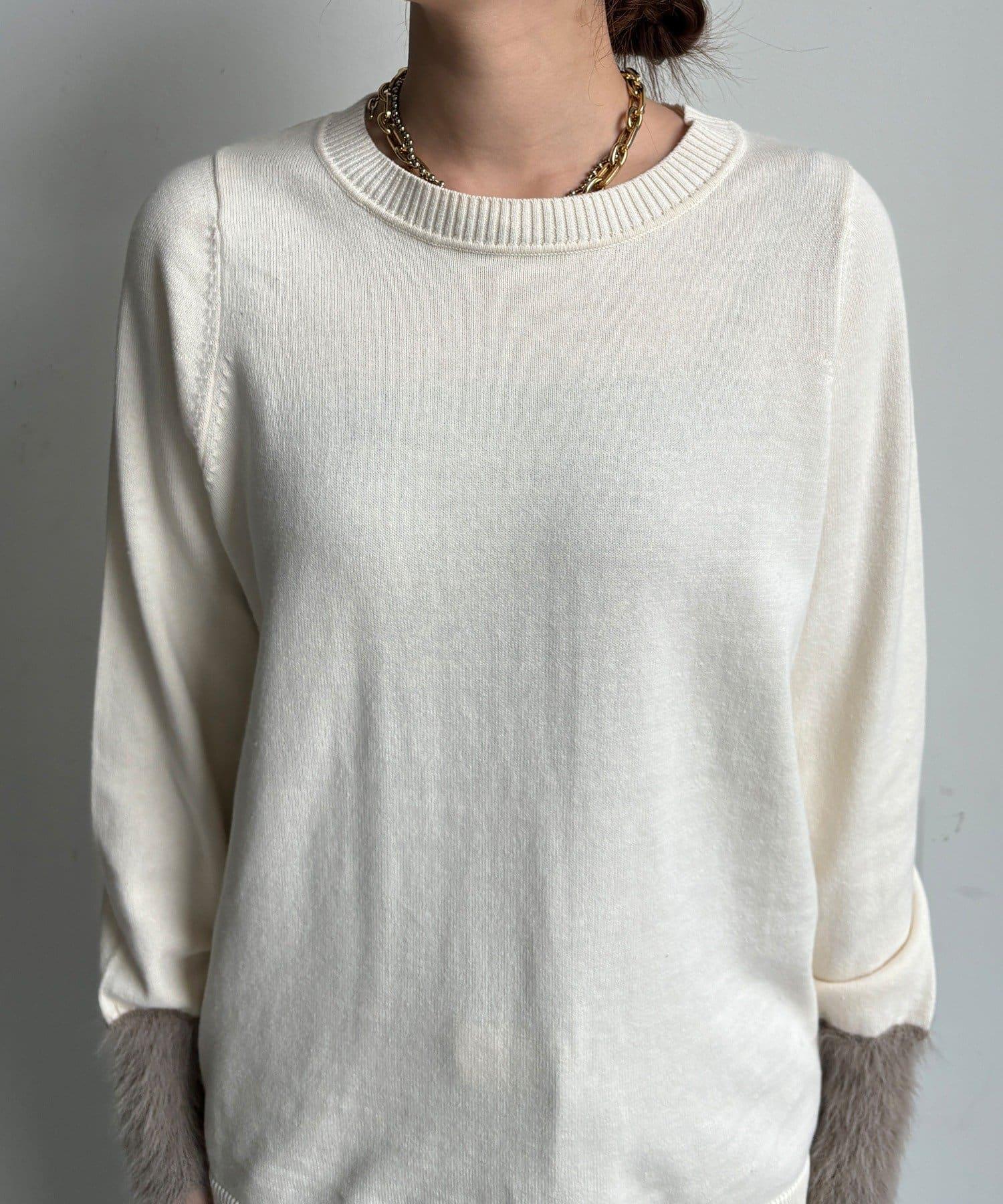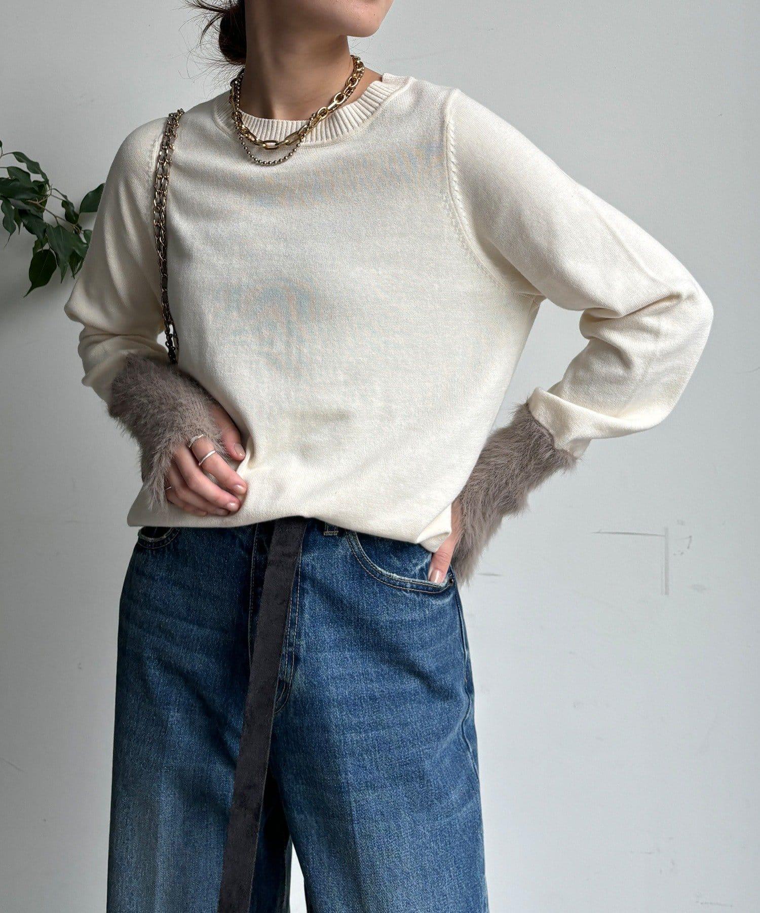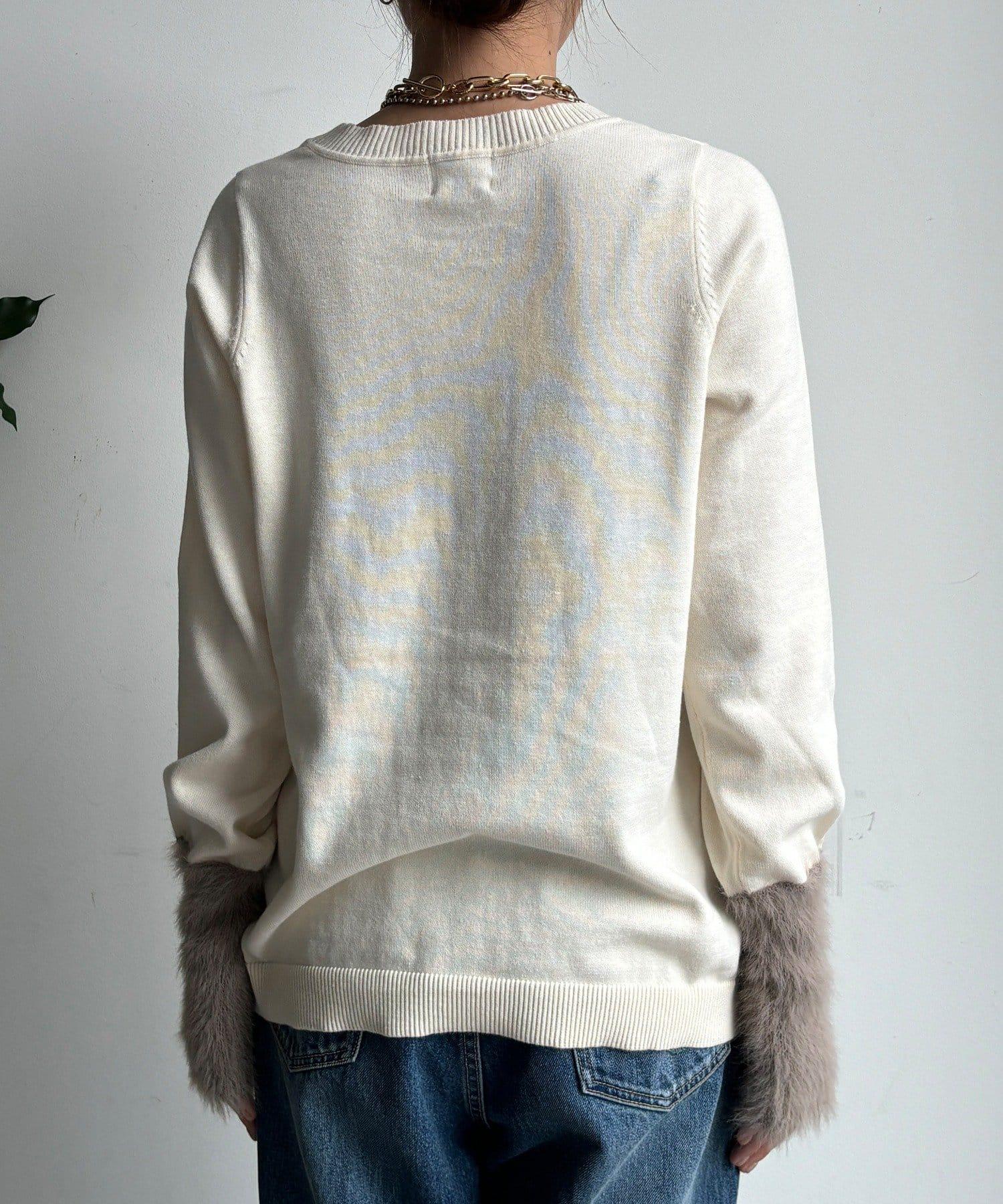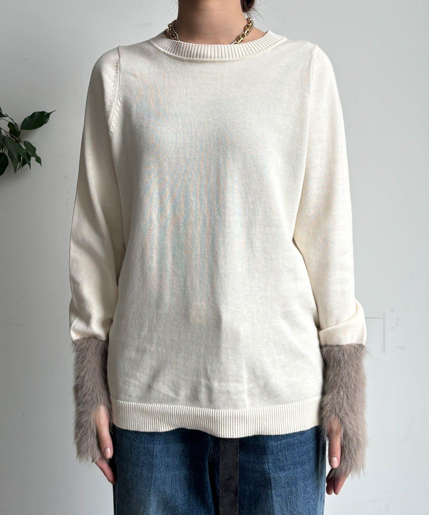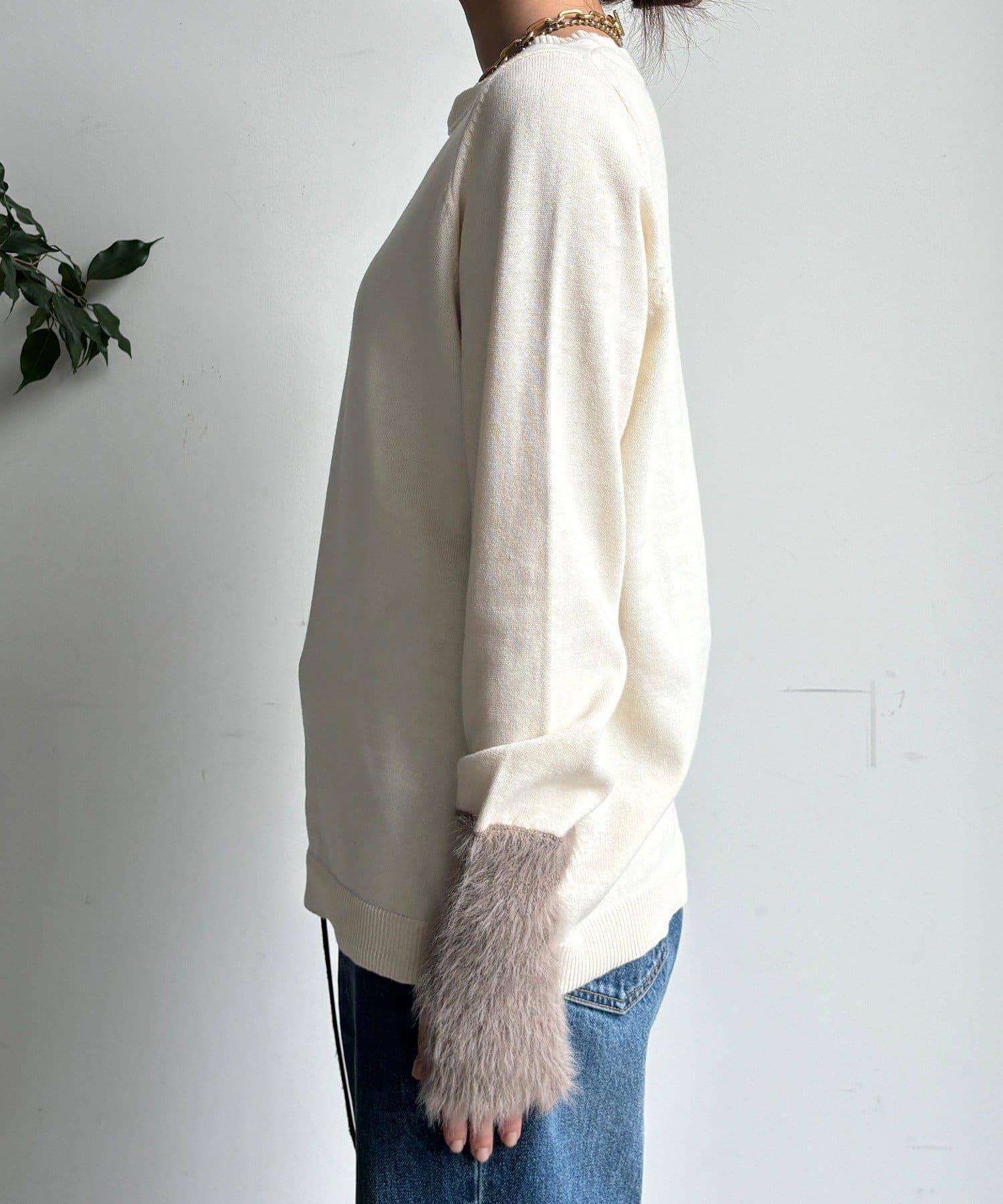 蓬鬆的絨毛材質袖子為簡約而不古怪的設計錦上添花,給人以優雅的印象。袖口有一個洞的設計,可以把大拇指穿過去,這樣就可以一直溫暖到手,看起來也很可愛◎。