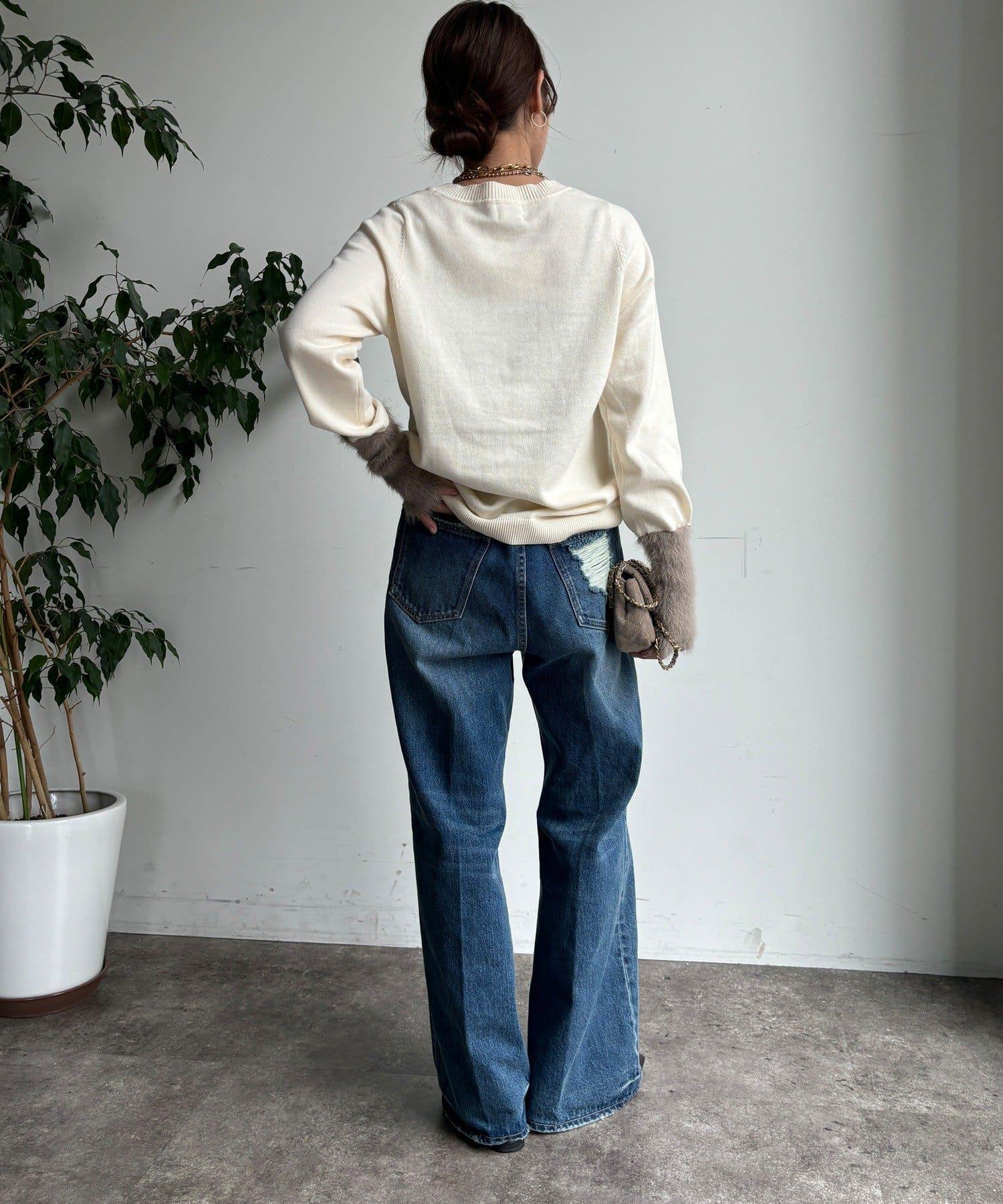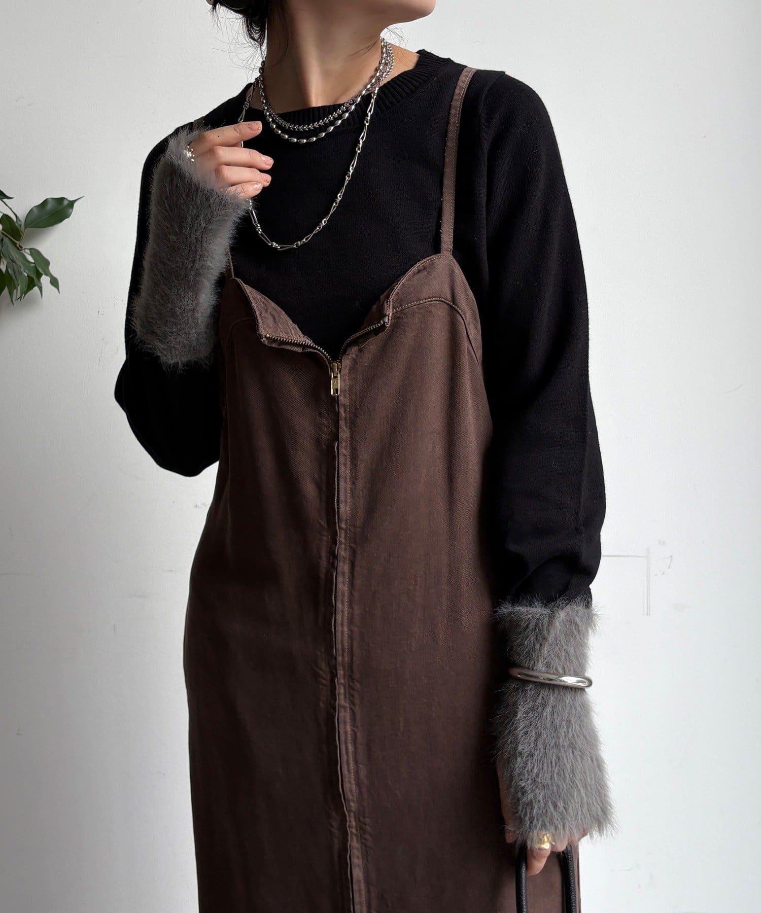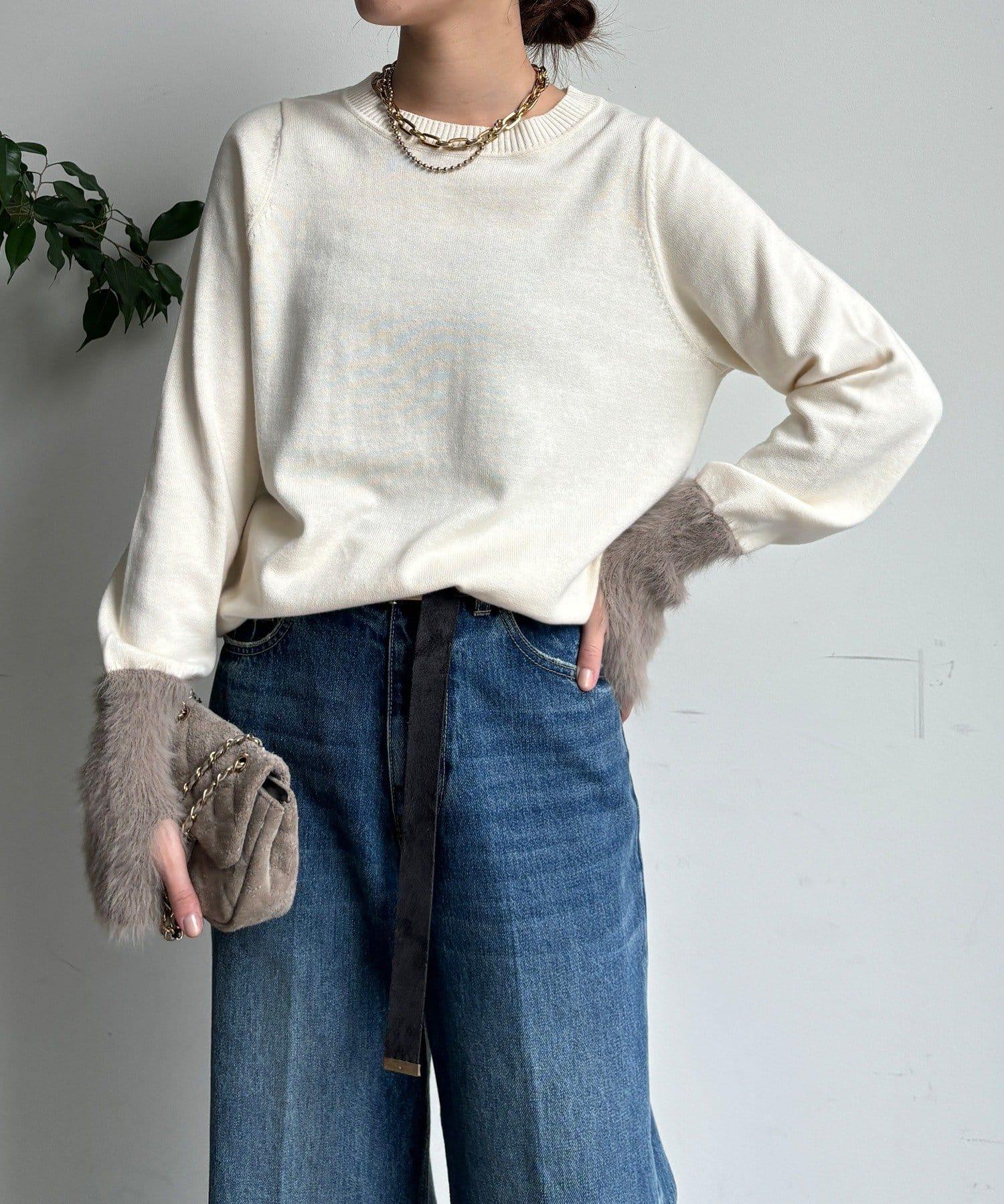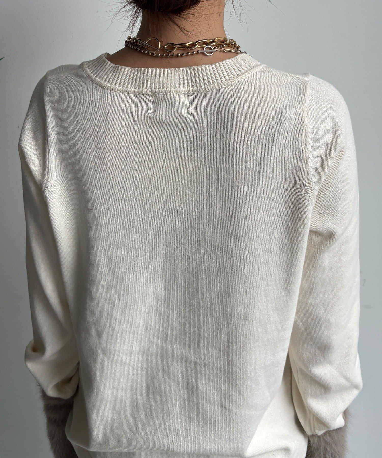蓬鬆的絨毛材質袖子為簡約而不古怪的設計錦上添花,給人以優雅的印象。袖口有一個洞的設計,可以把大拇指穿過去,這樣就可以一直溫暖到手,看起來也很可愛◎。