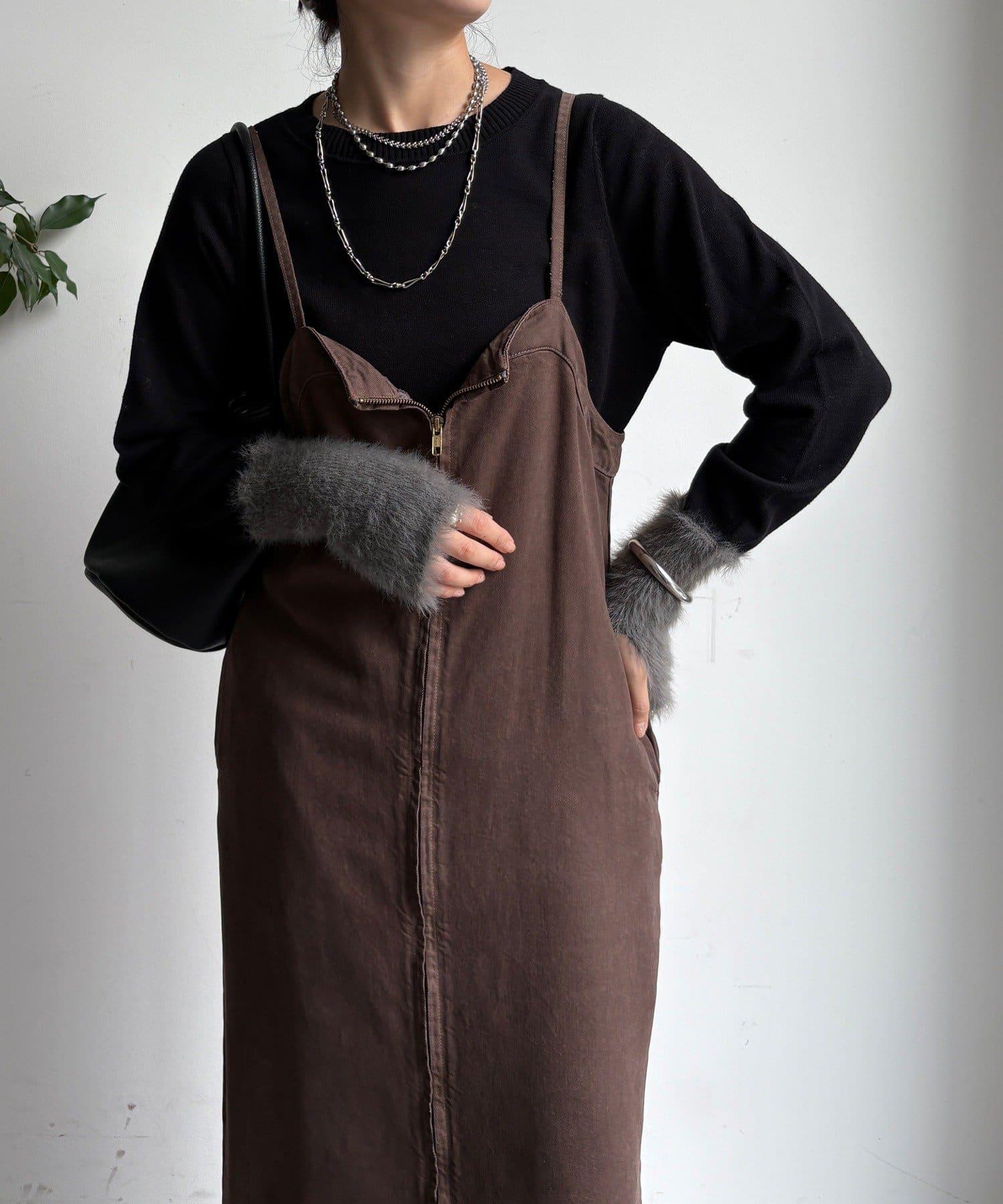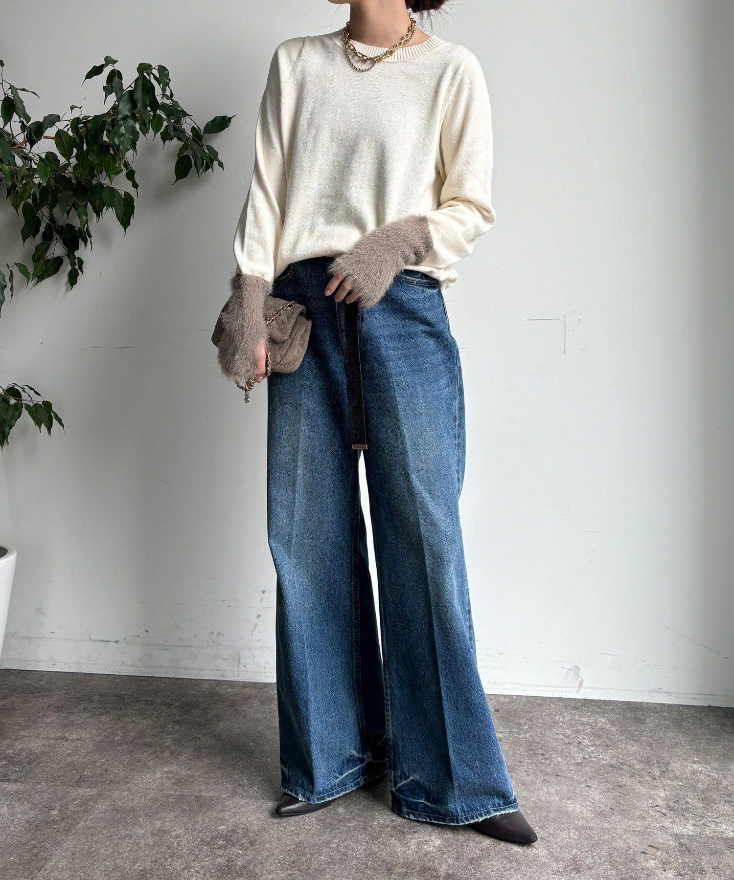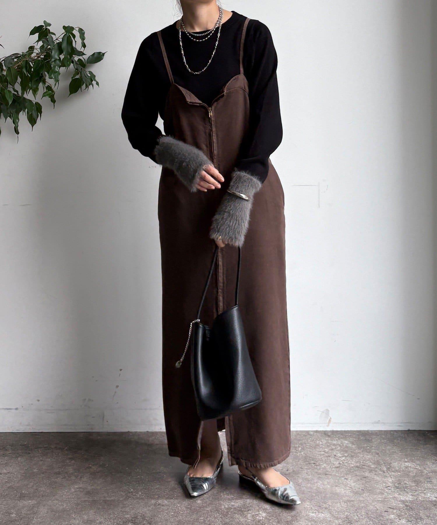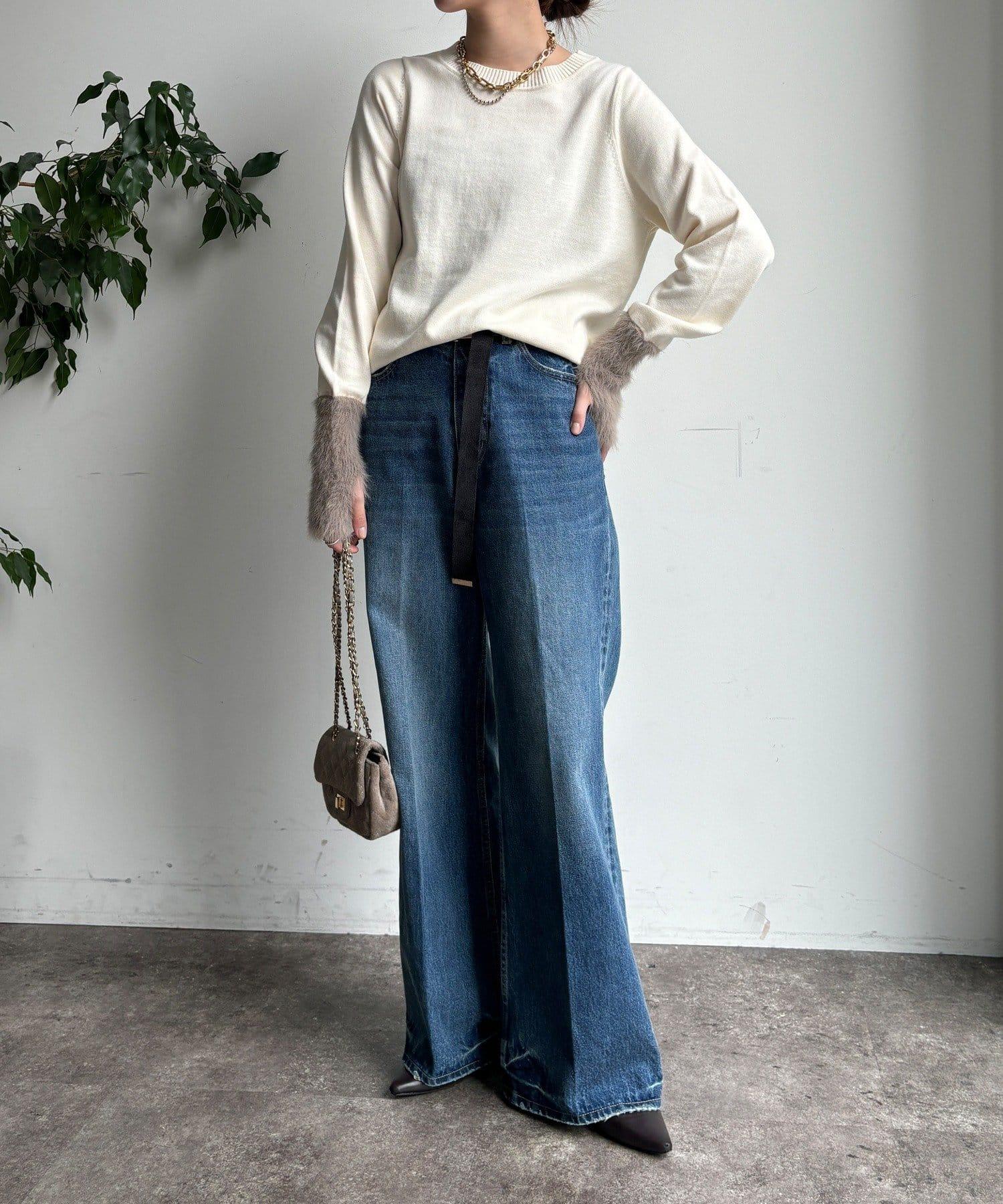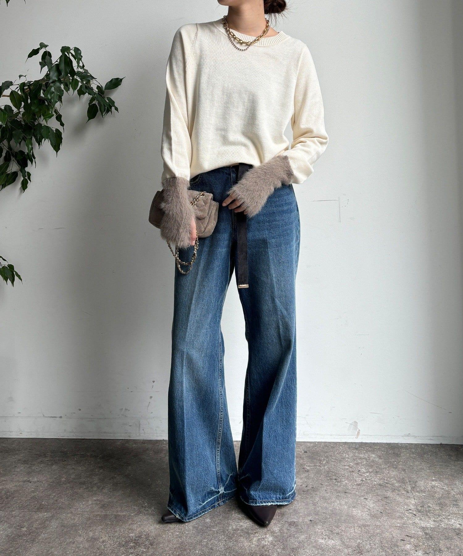 蓬鬆的絨毛材質袖子為簡約而不古怪的設計錦上添花,給人以優雅的印象。袖口有一個洞的設計,可以把大拇指穿過去,這樣就可以一直溫暖到手,看起來也很可愛◎。