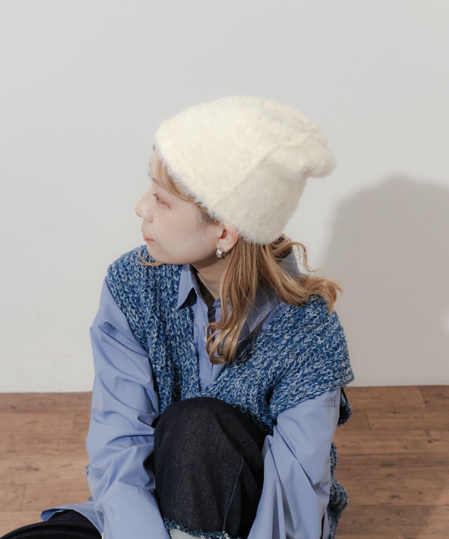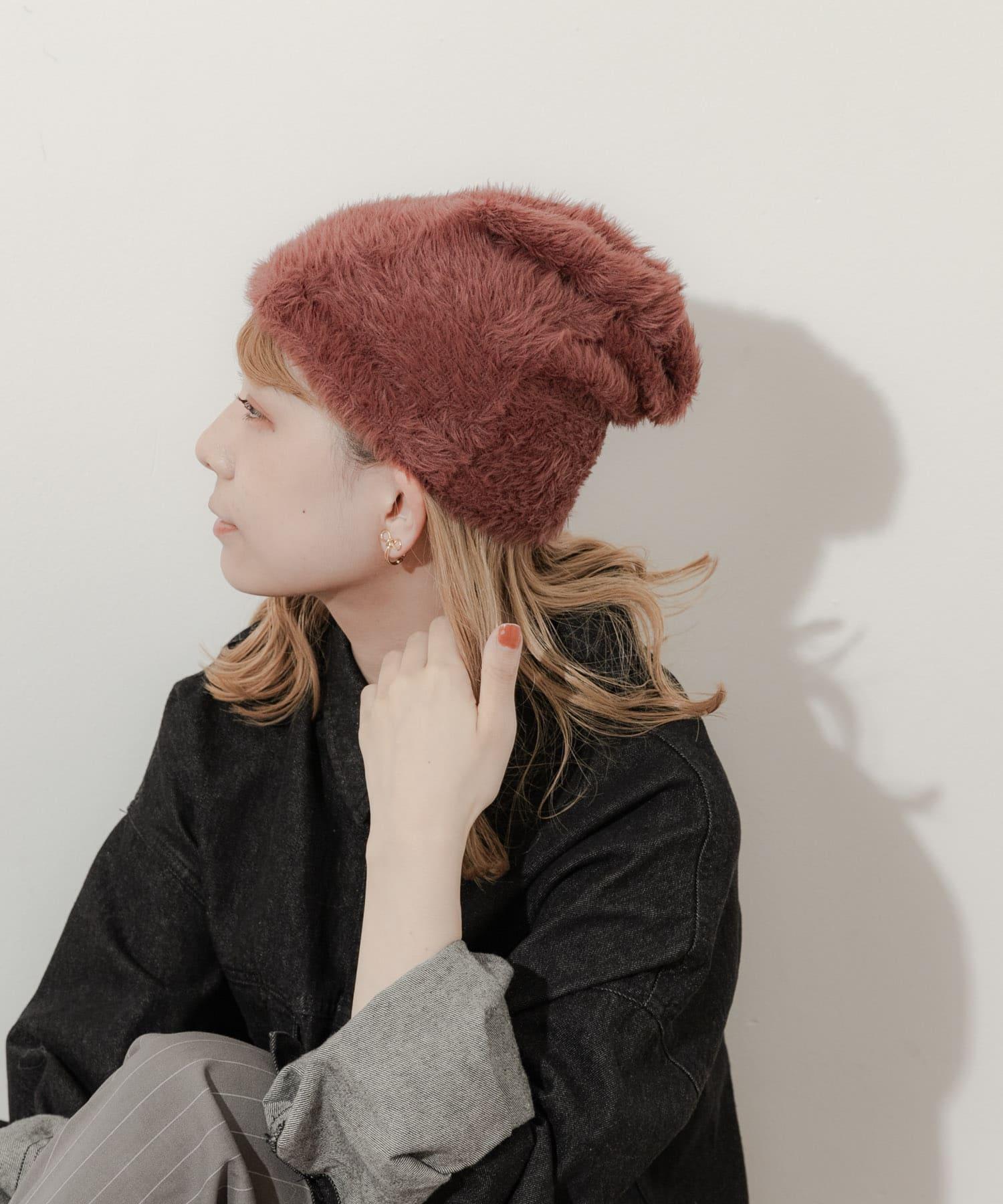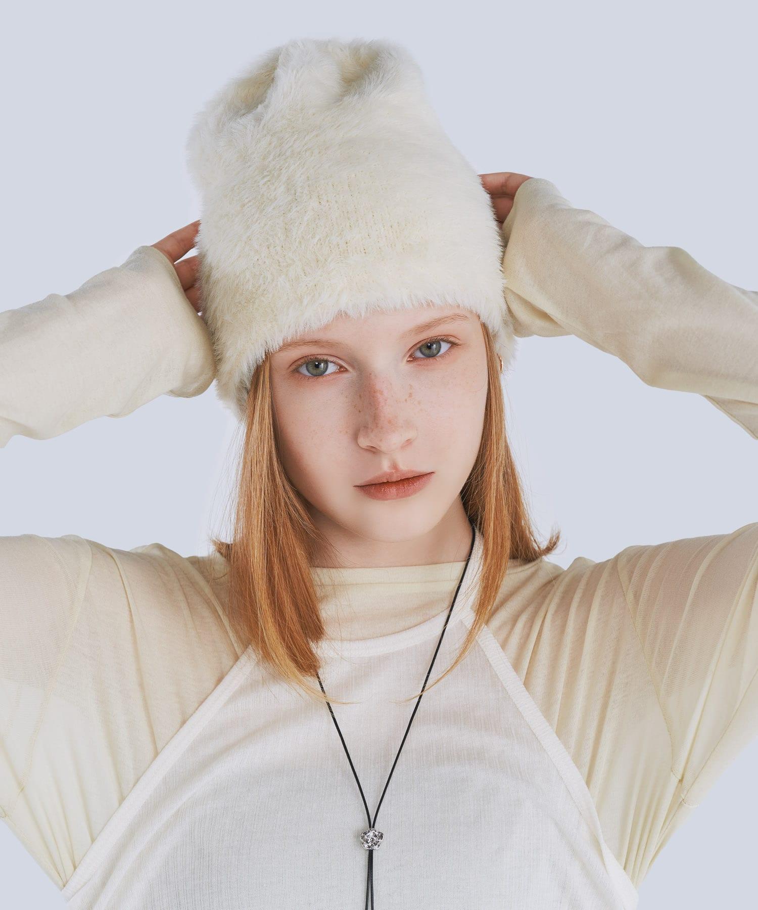 採用柔軟蓬鬆的絨毛材質製成的小帽。