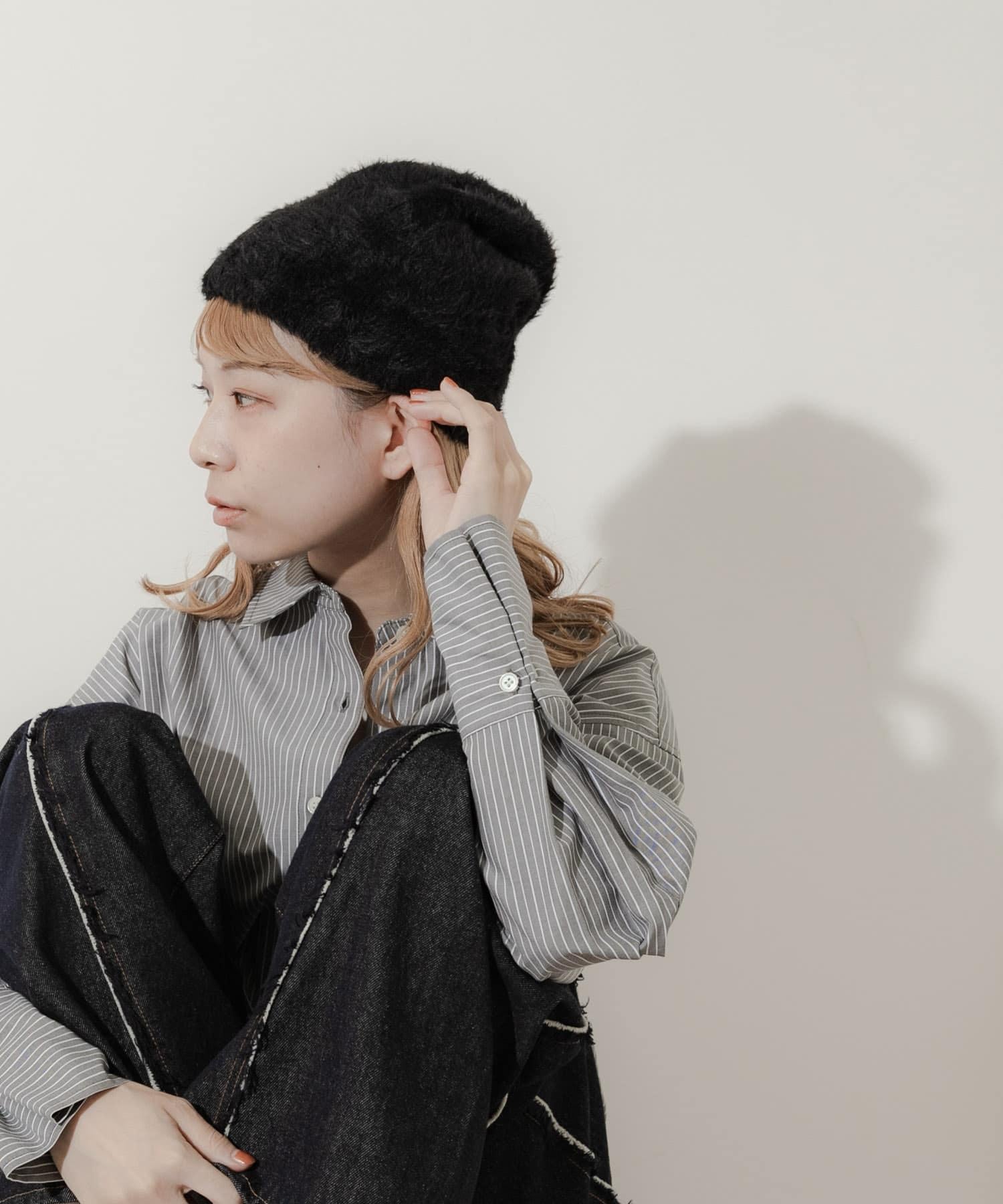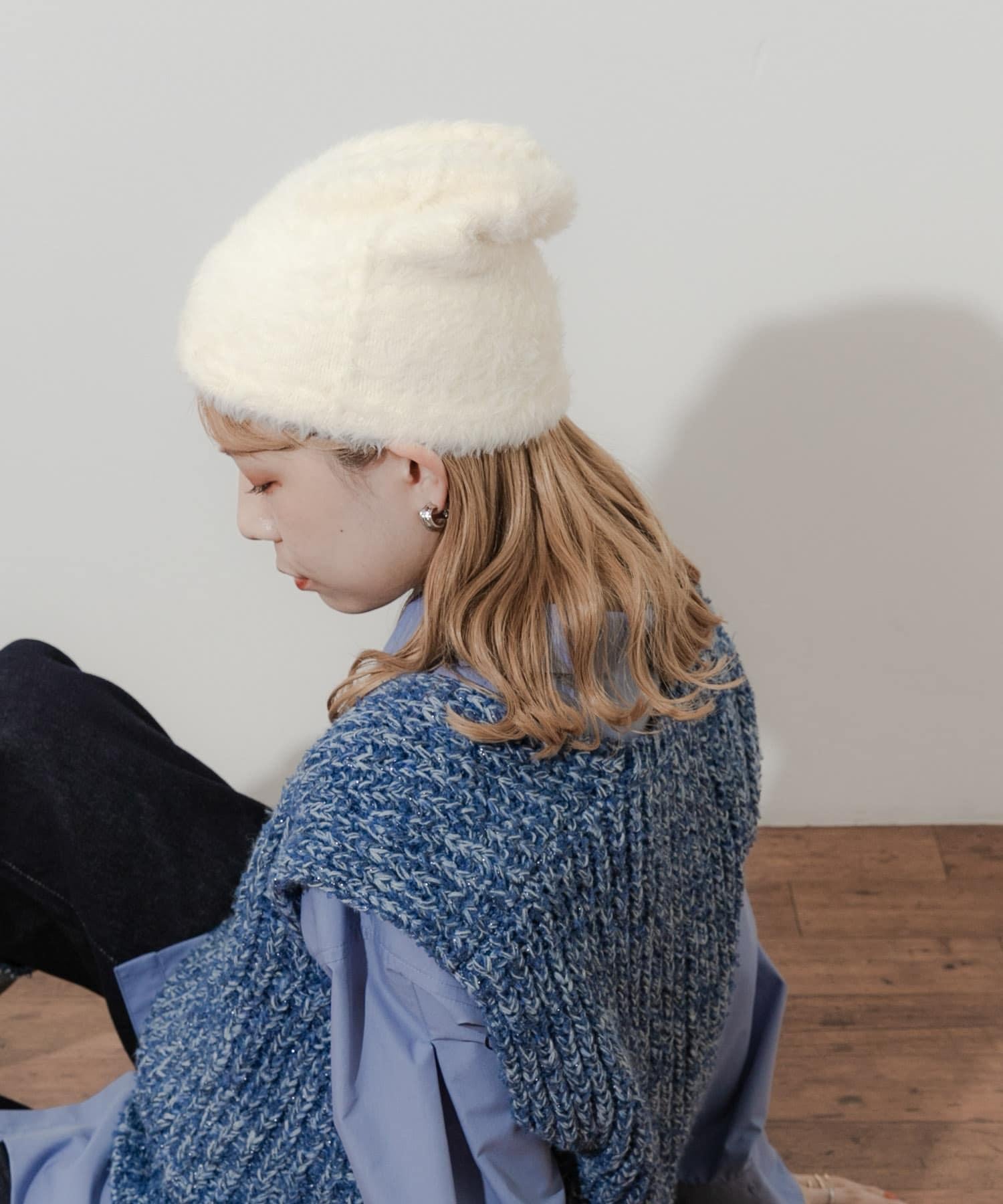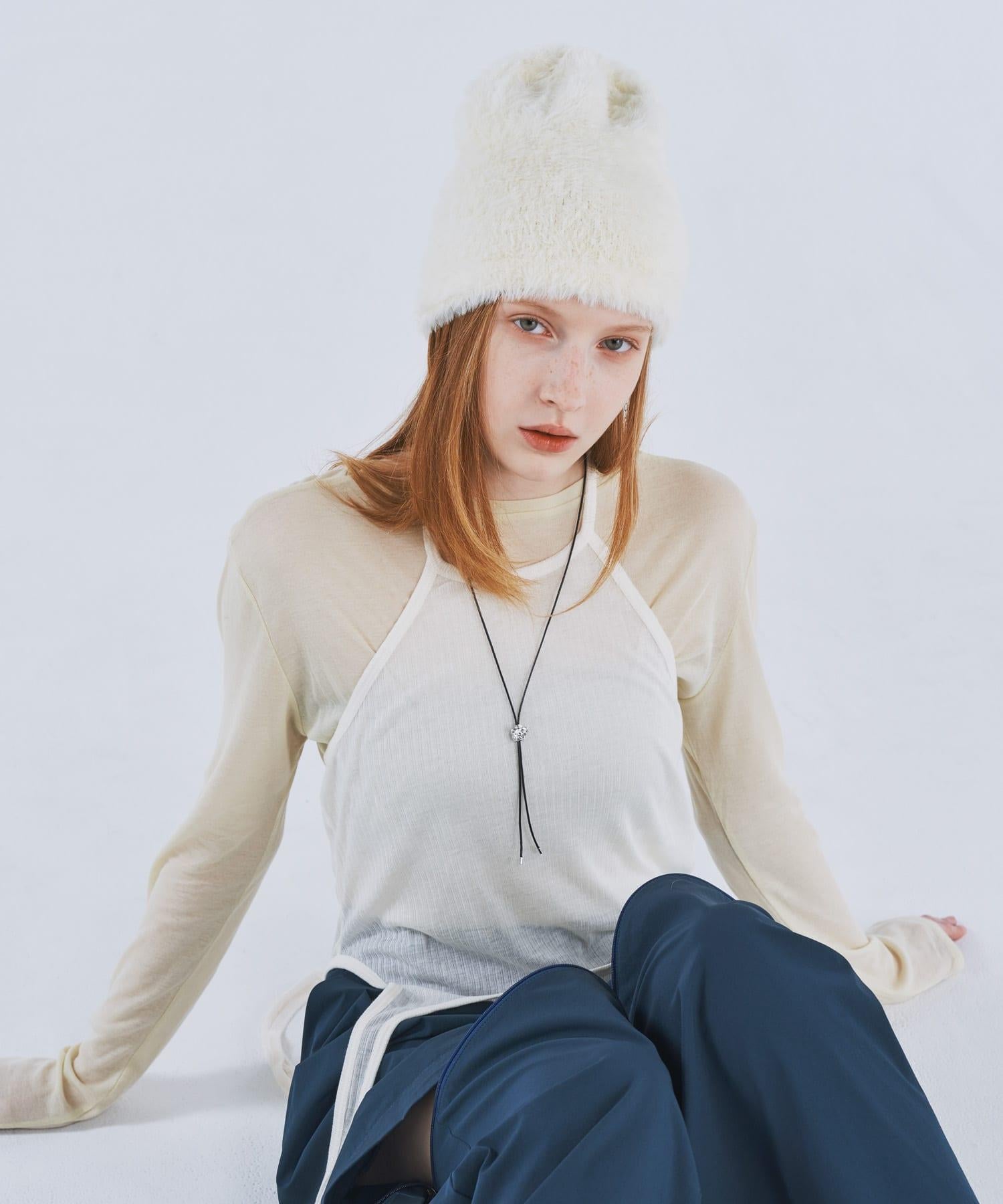 採用柔軟蓬鬆的絨毛材質製成的小帽。