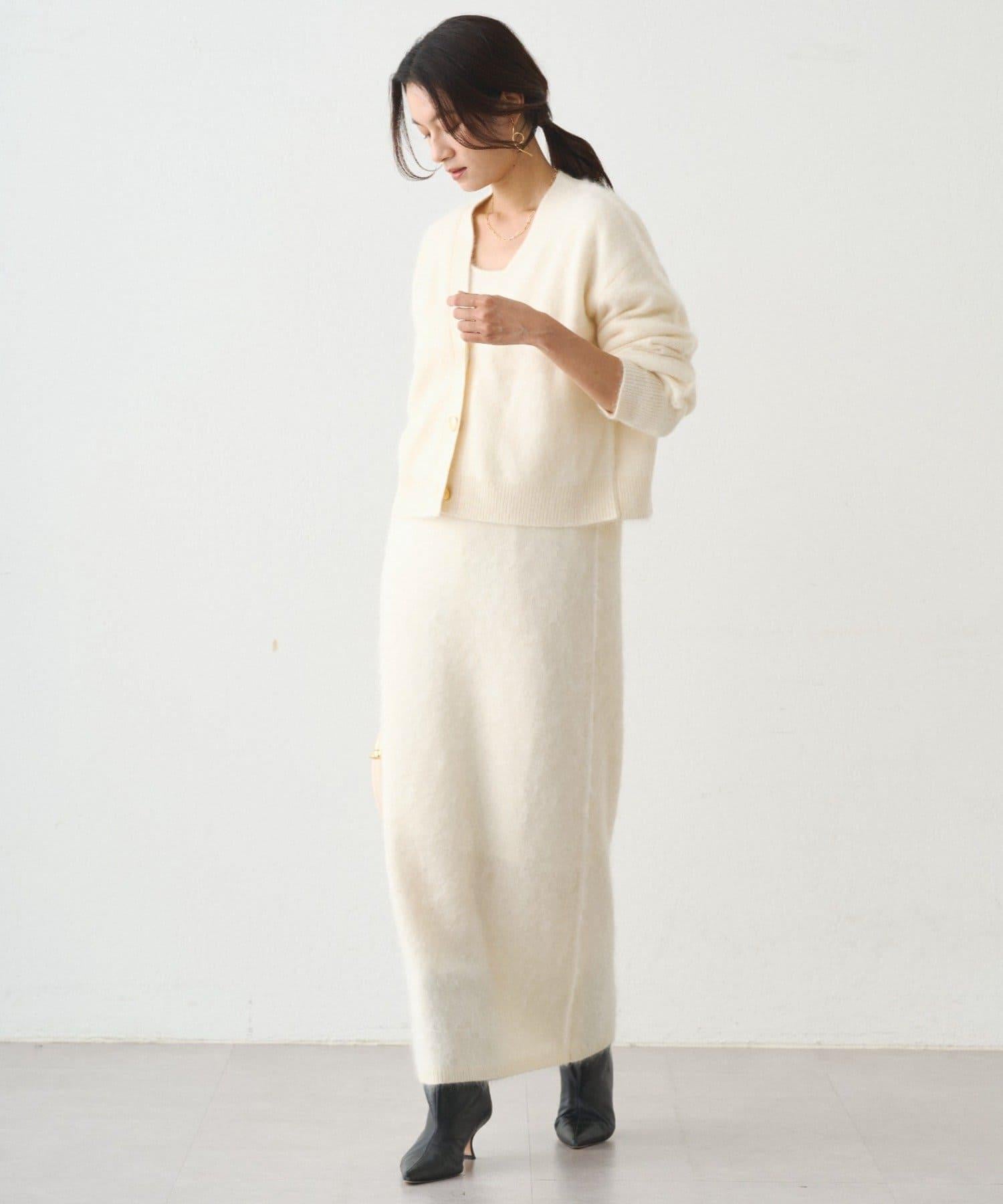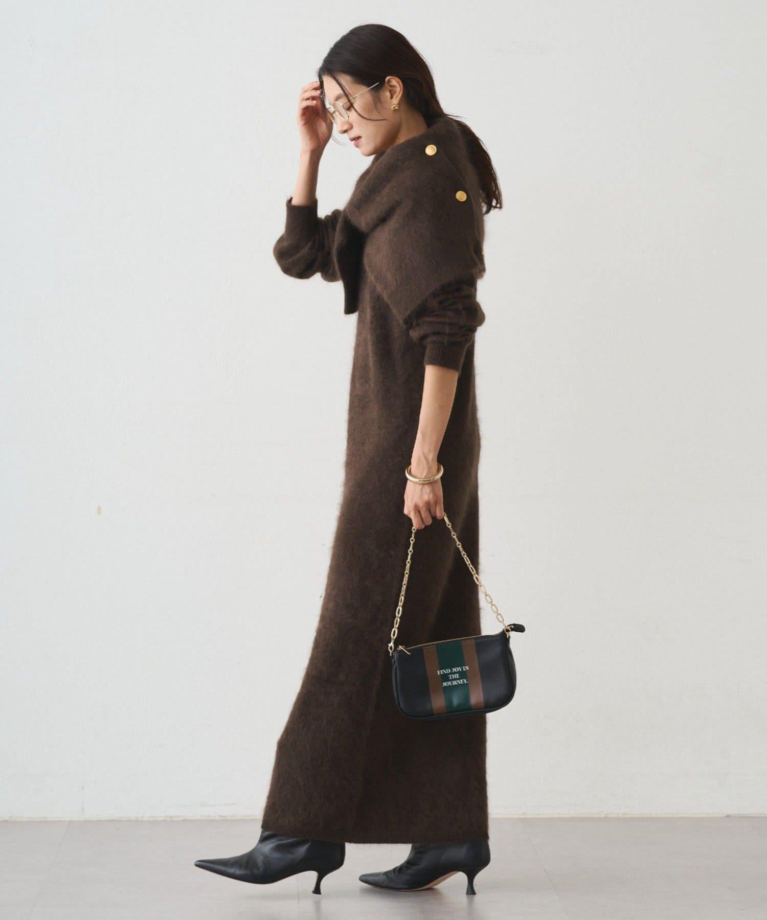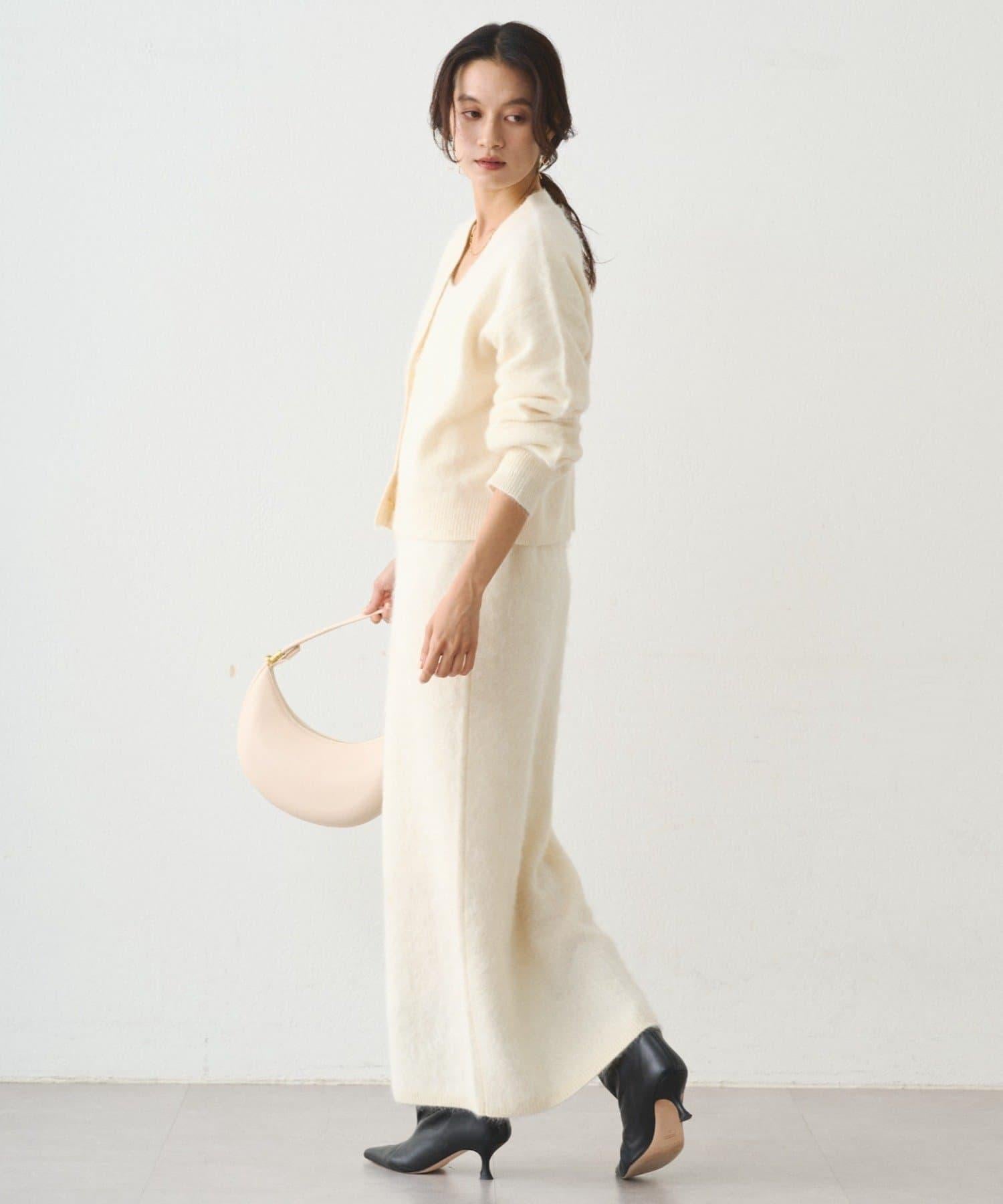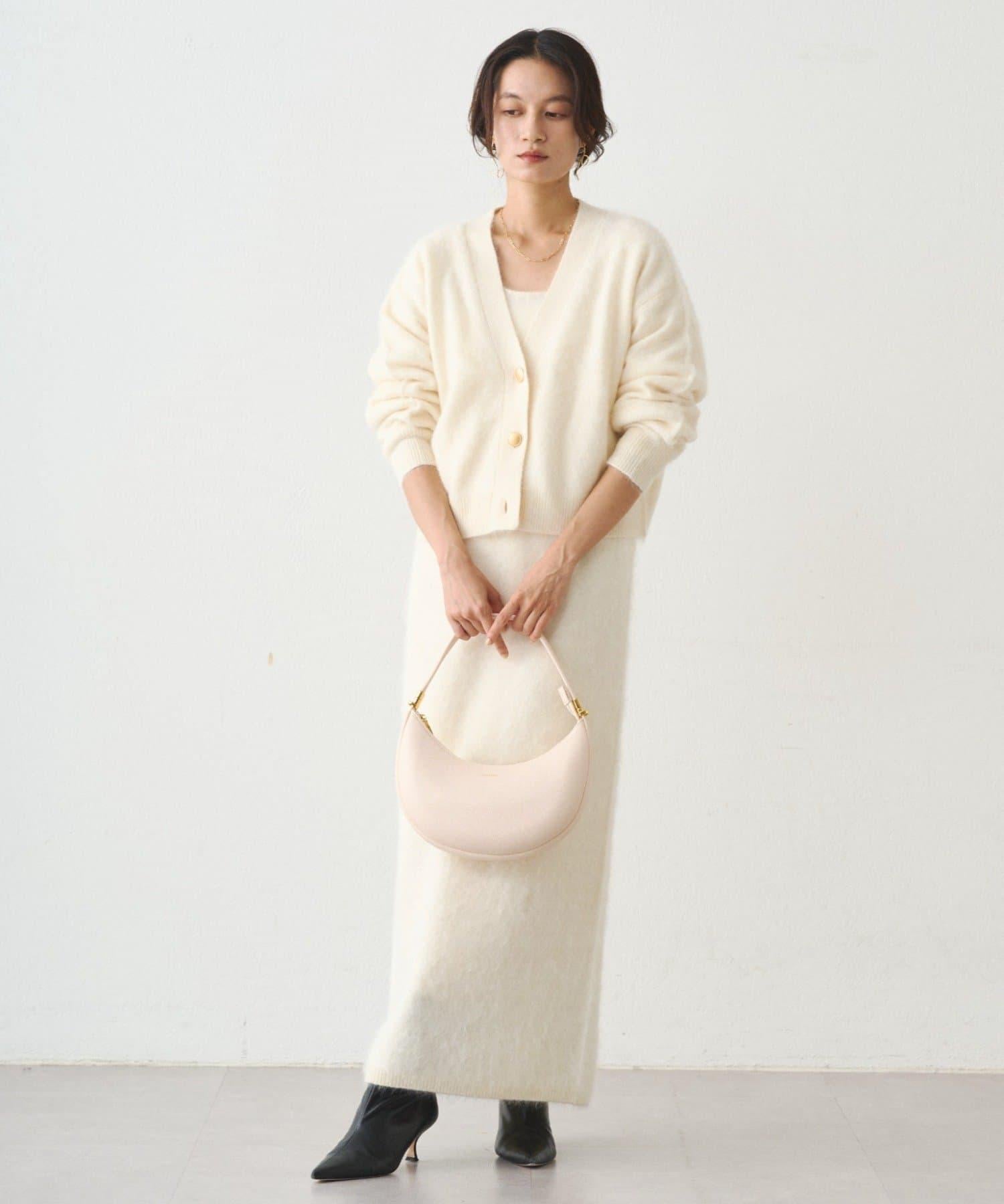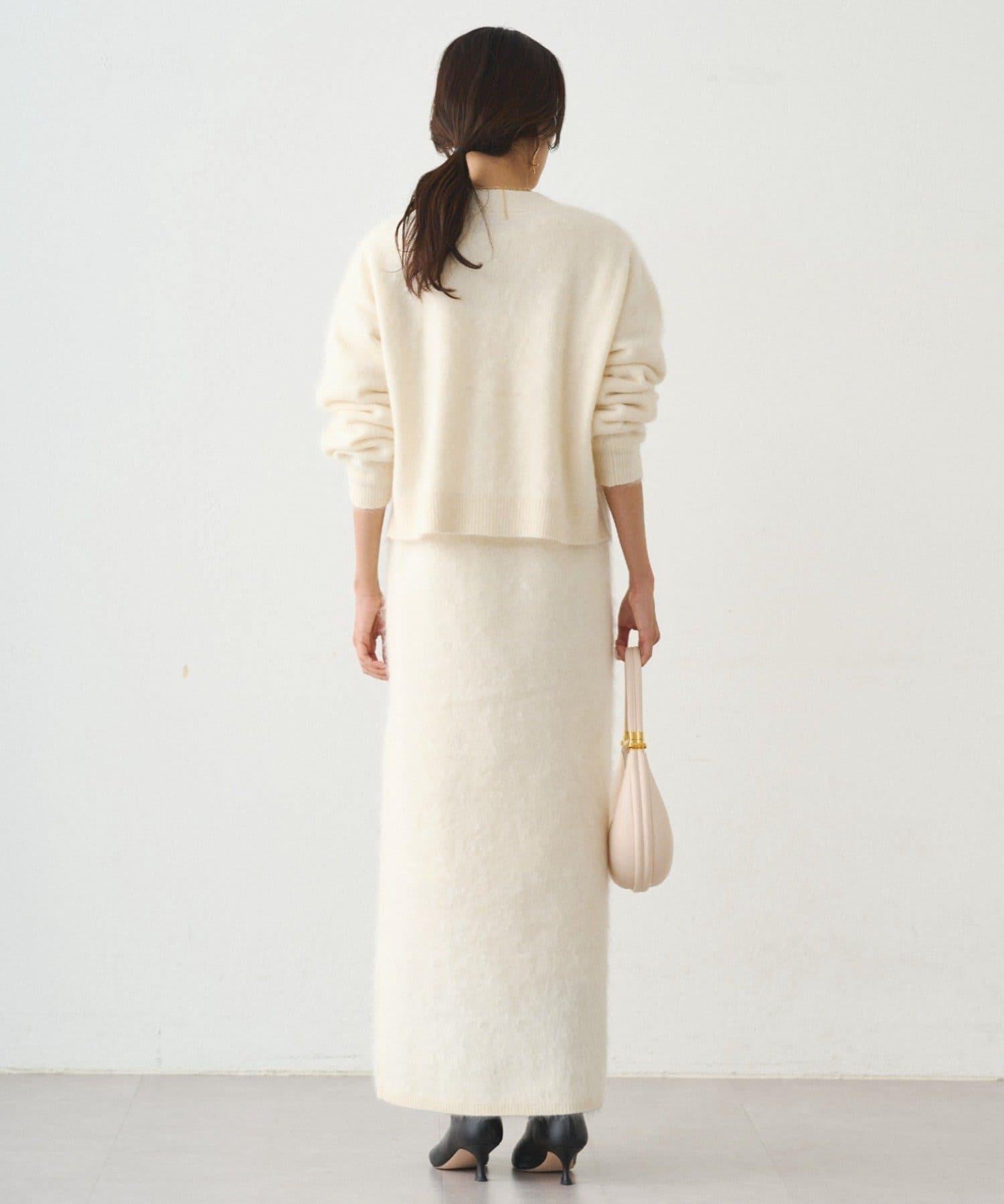 可與同材質的蓬鬆短款針織開衫搭配穿著。