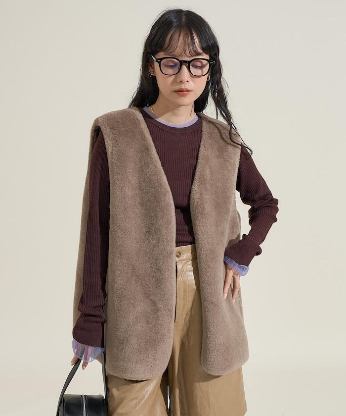 一件皮草馬甲,既可以疊穿在緊湊的上衣上,也可以疊穿在寬鬆的上衣上。