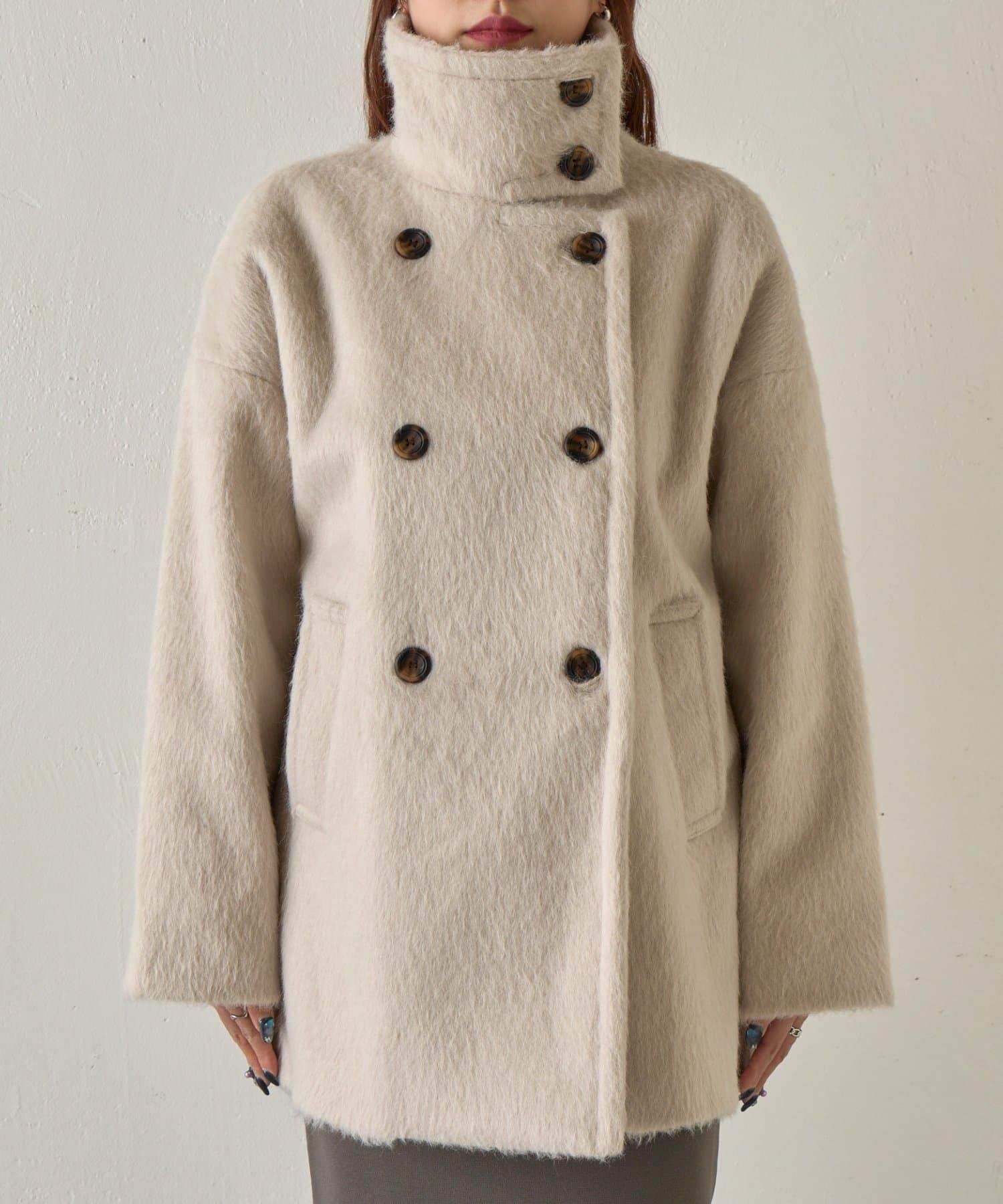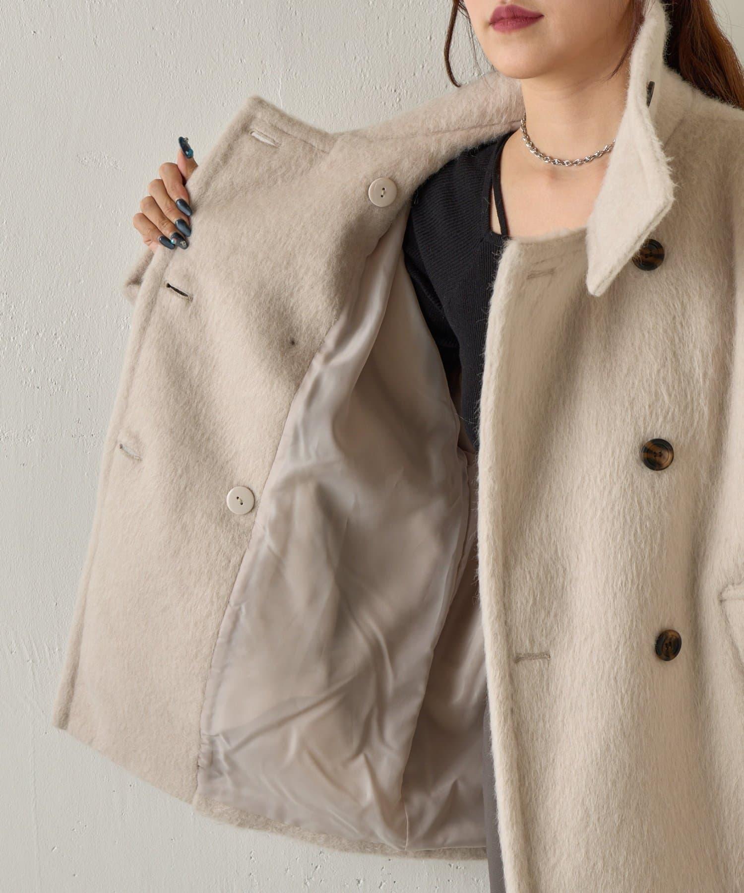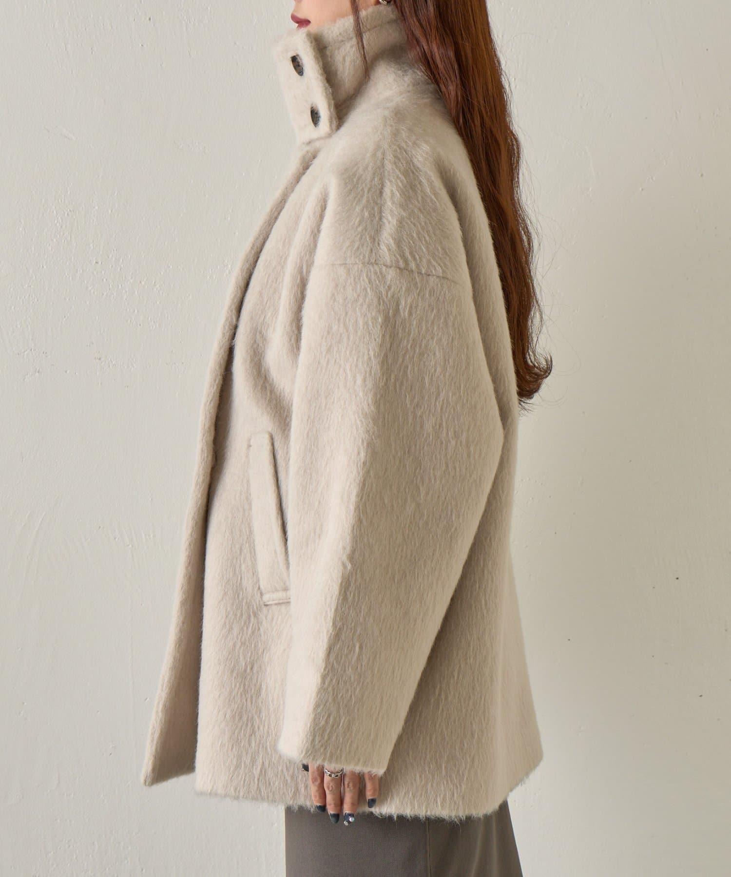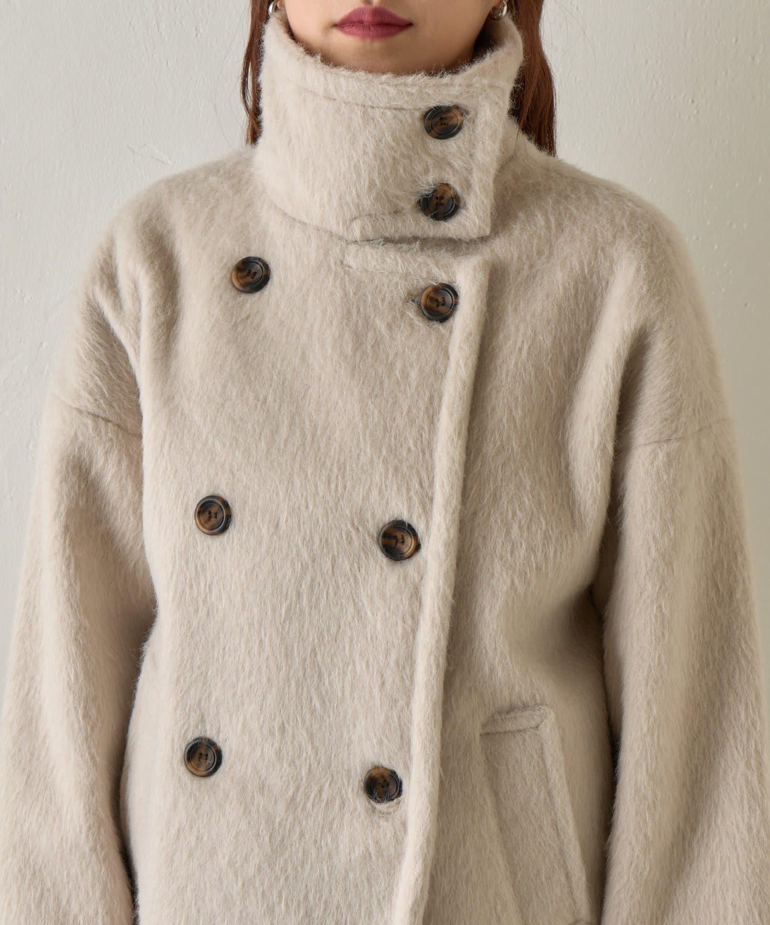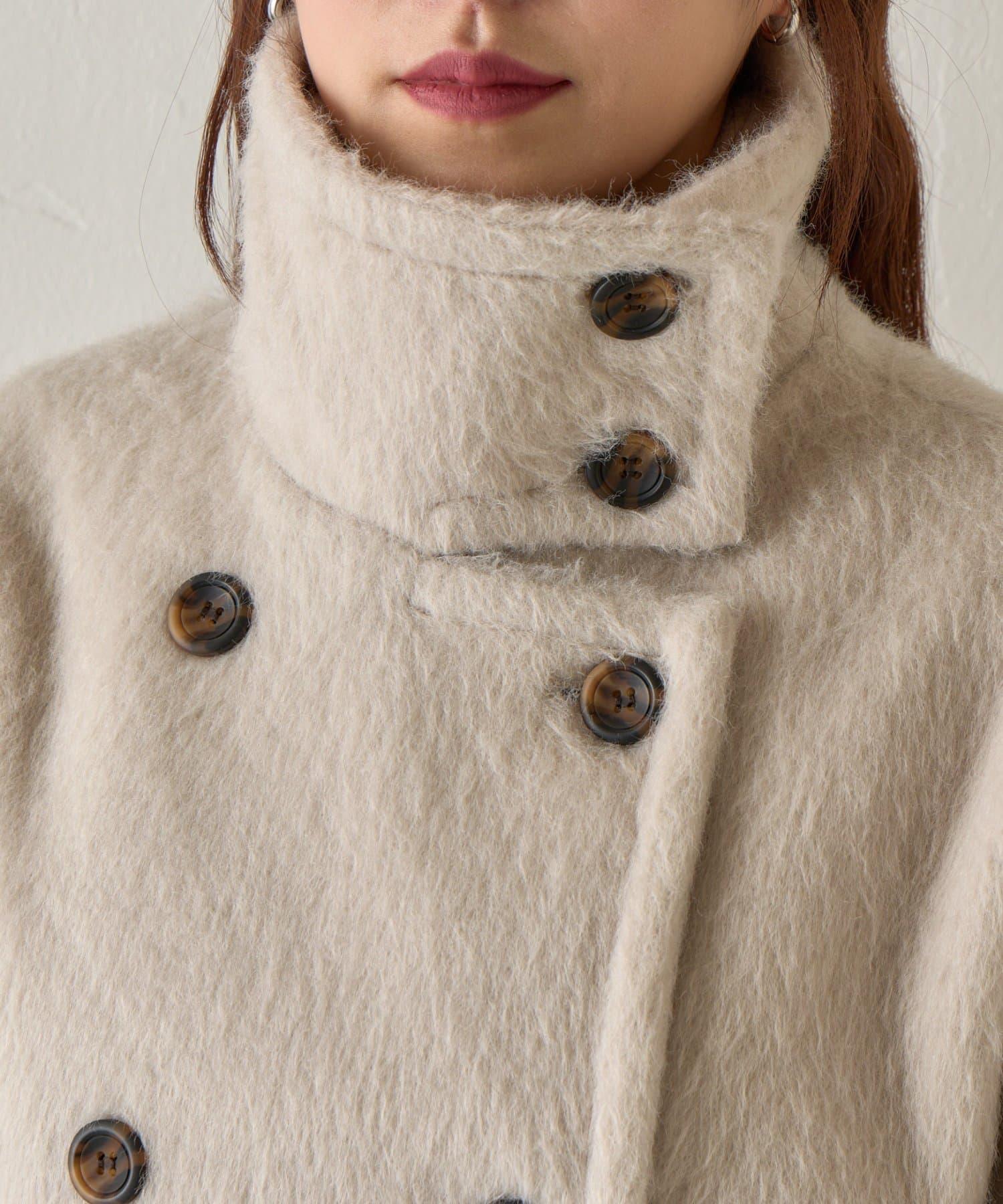 這款立領大衣的蓬鬆絨毛質地更顯女性的柔美和優雅。