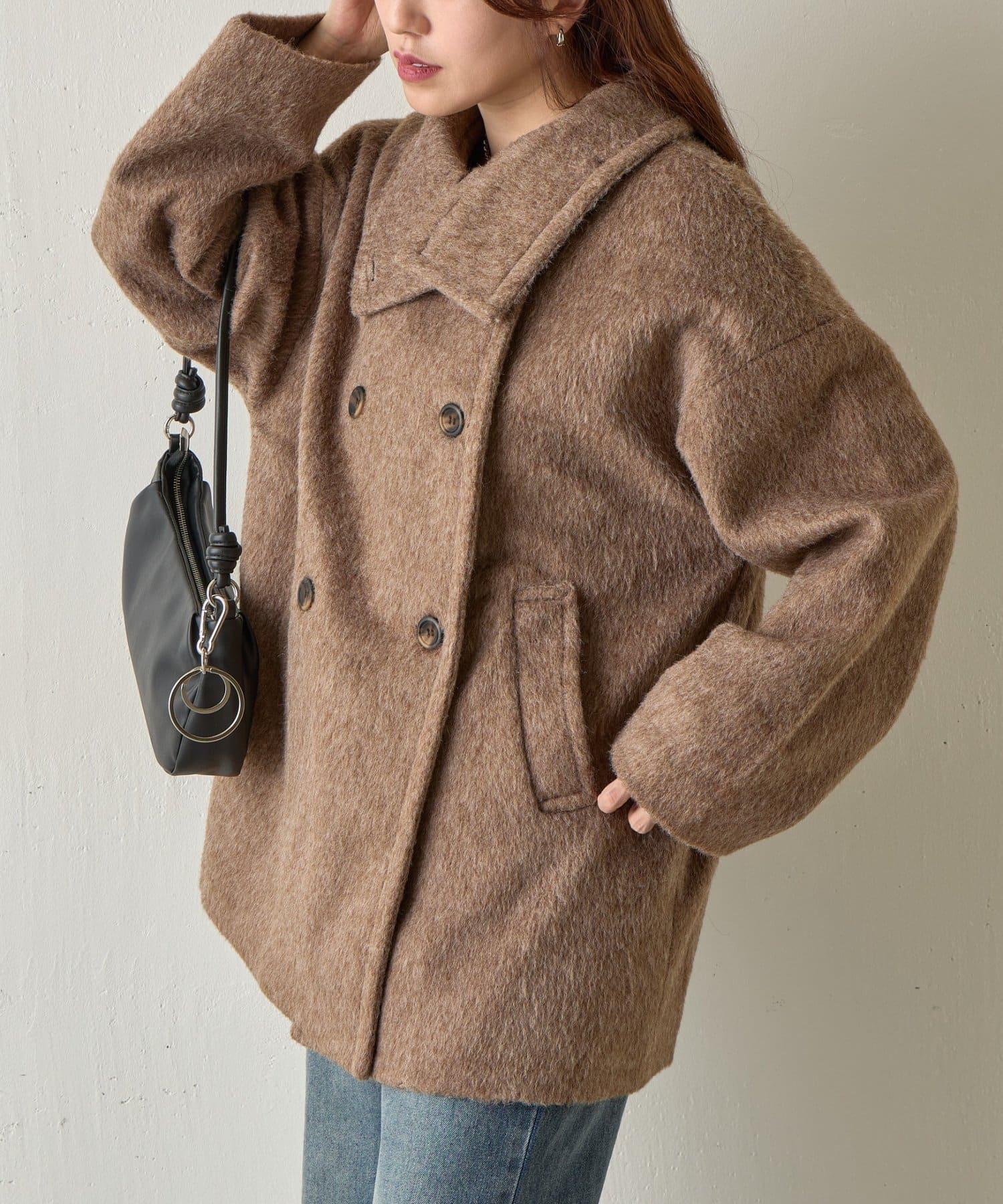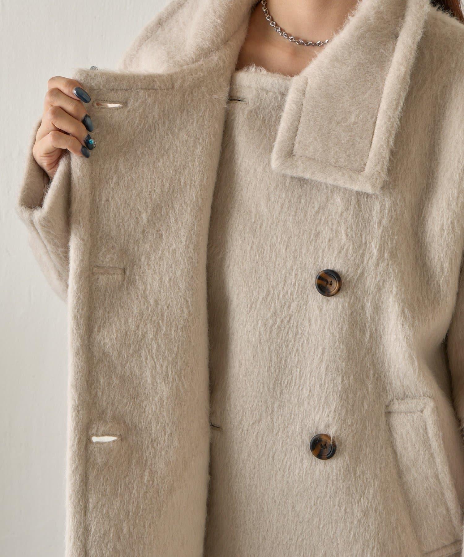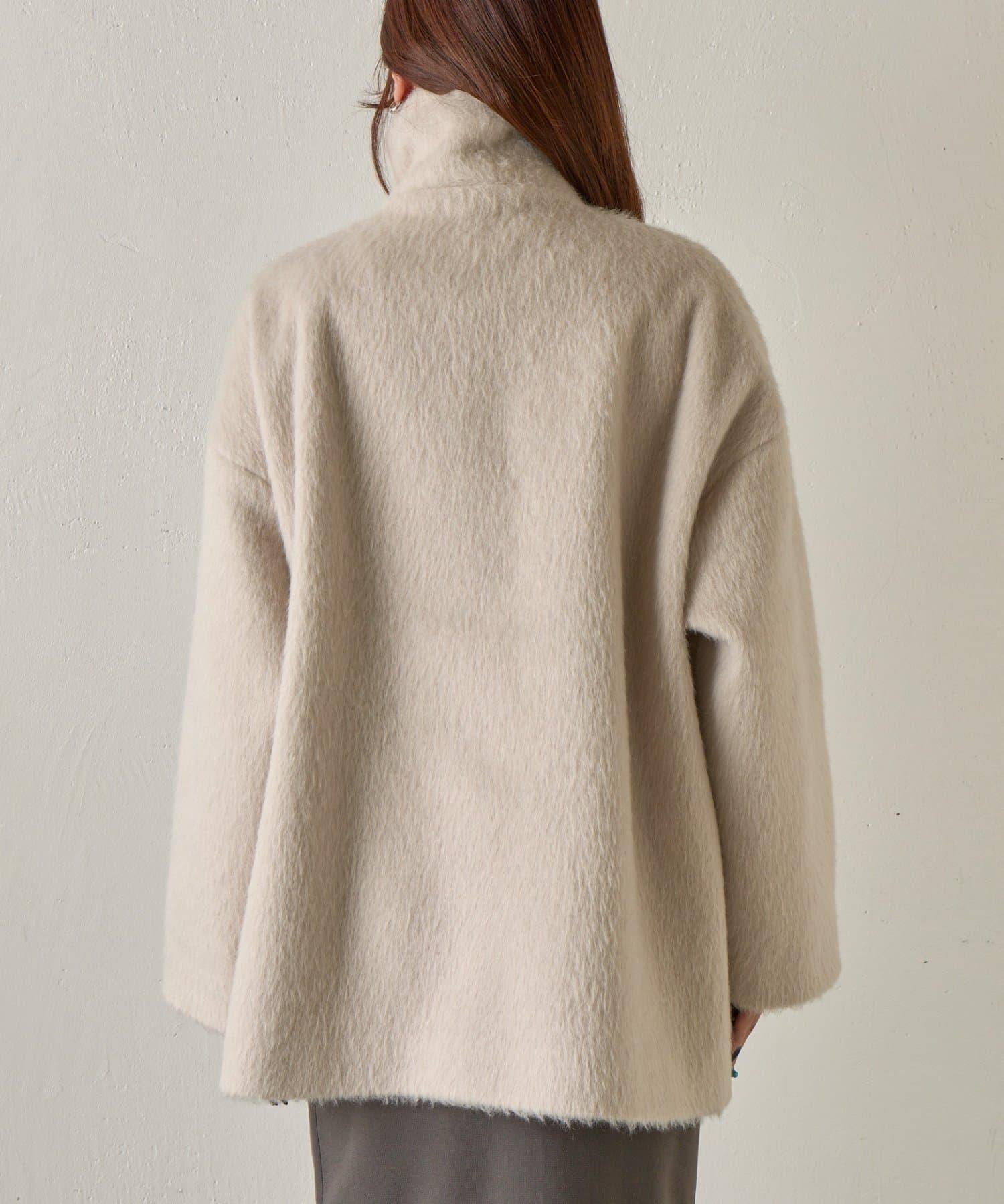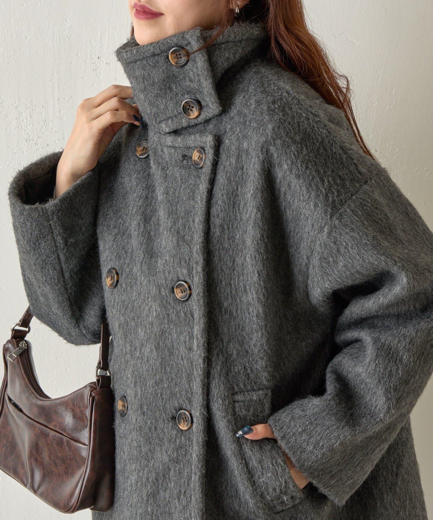 這款立領大衣的蓬鬆絨毛質地更顯女性的柔美和優雅。