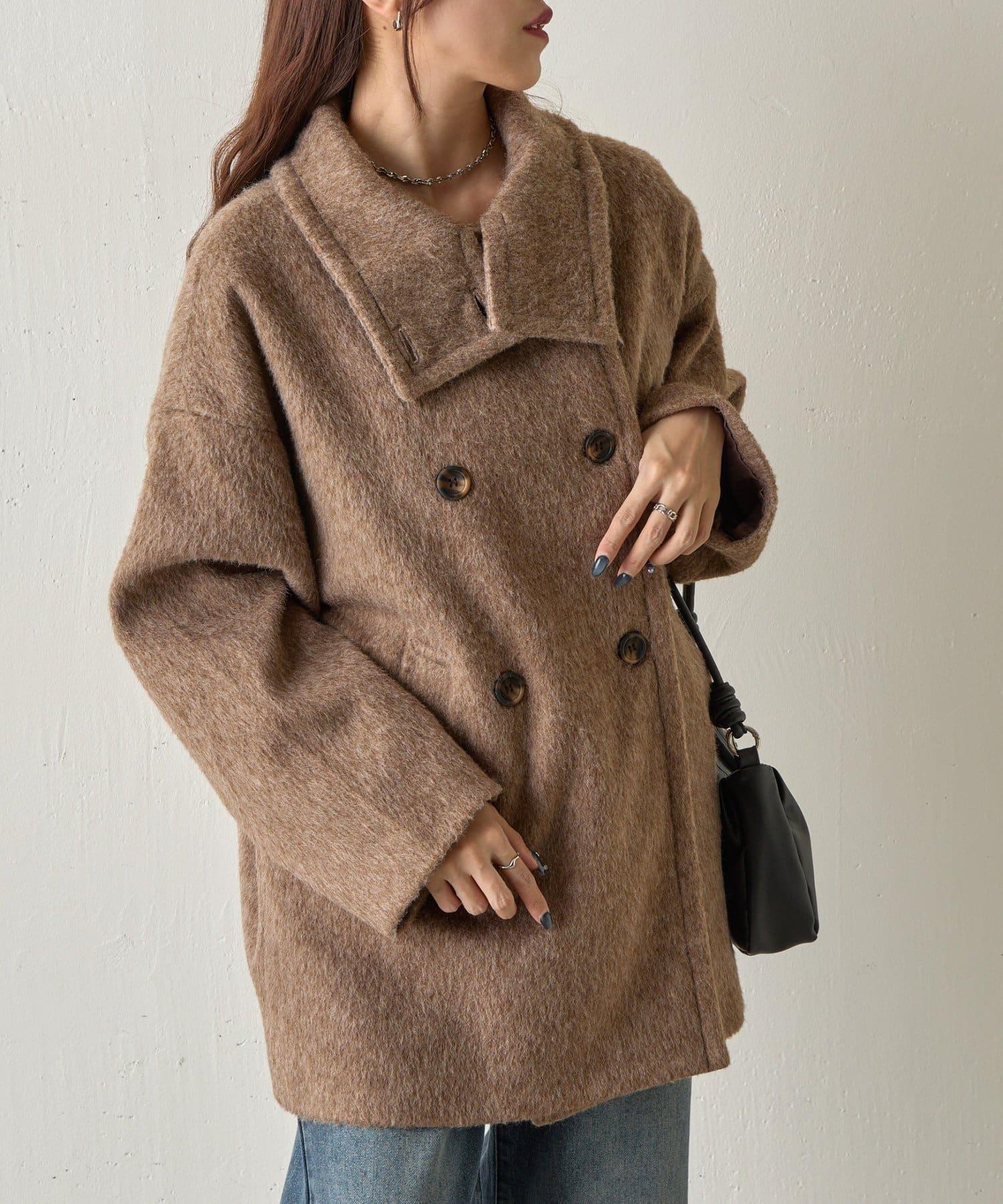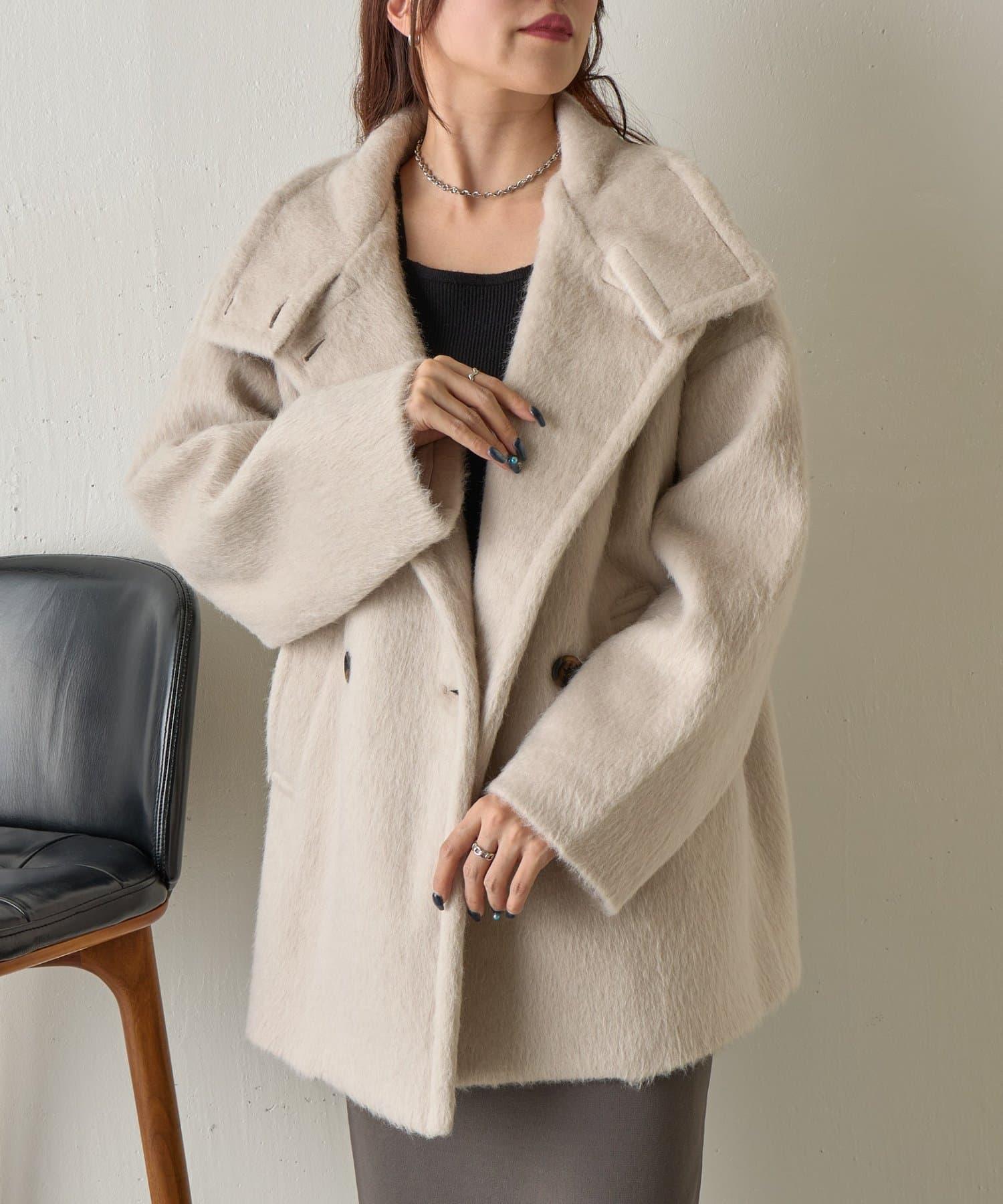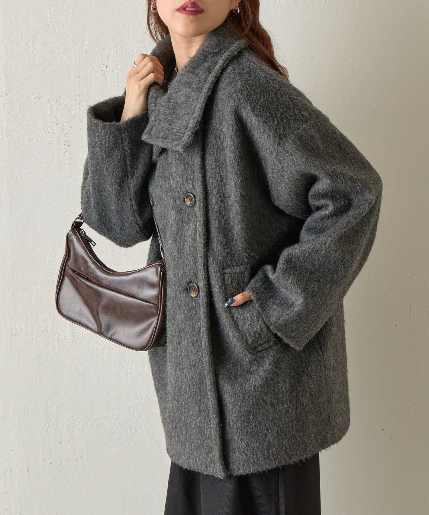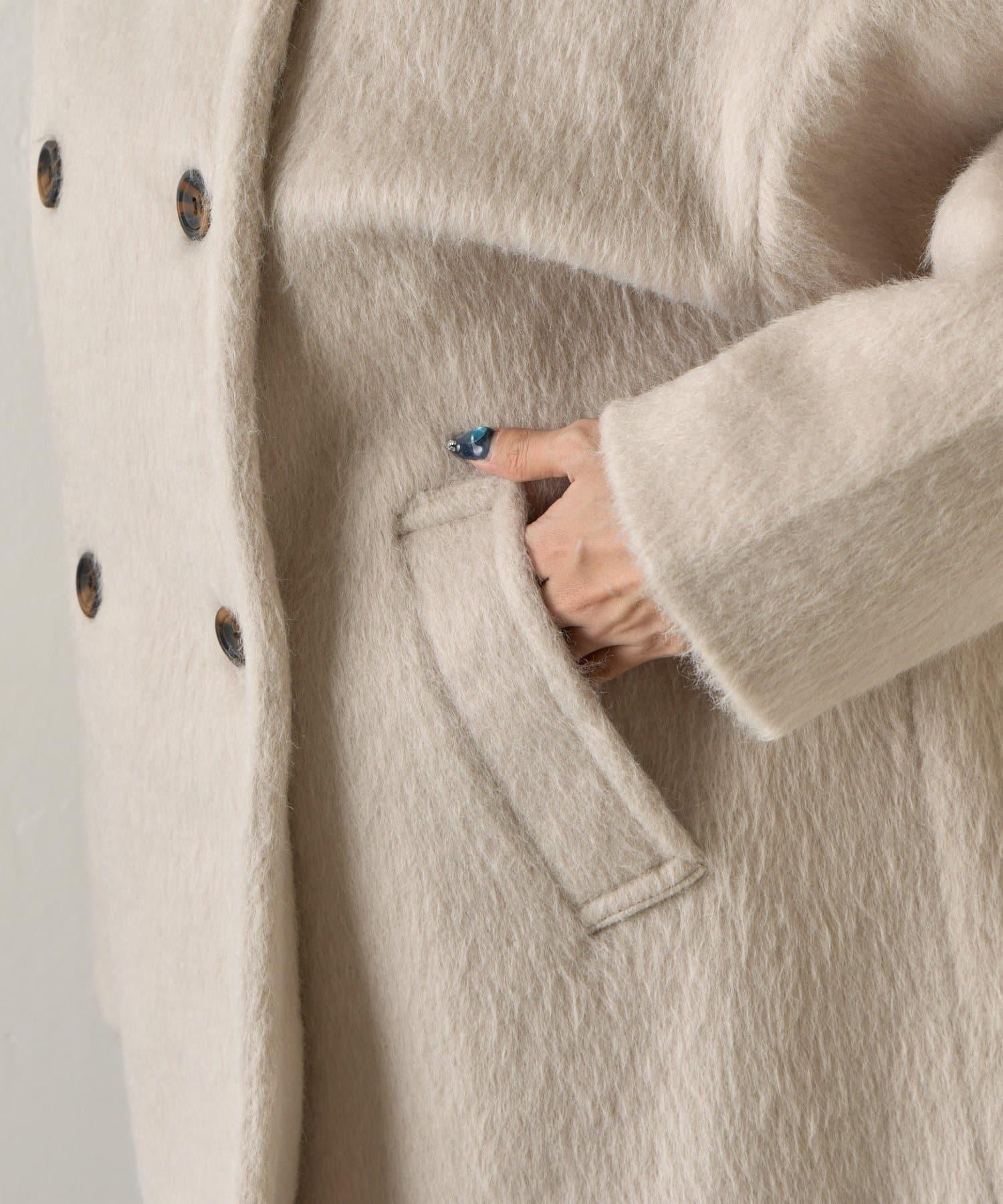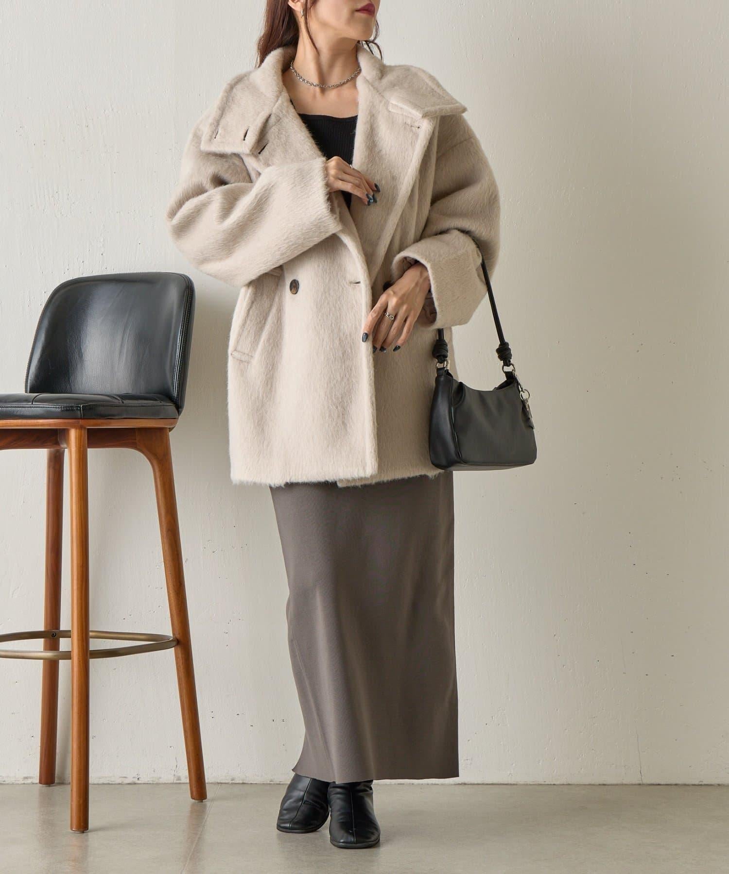 這款立領大衣的蓬鬆絨毛質地更顯女性的柔美和優雅。