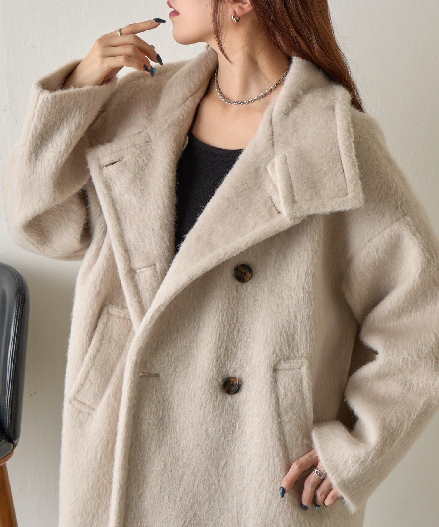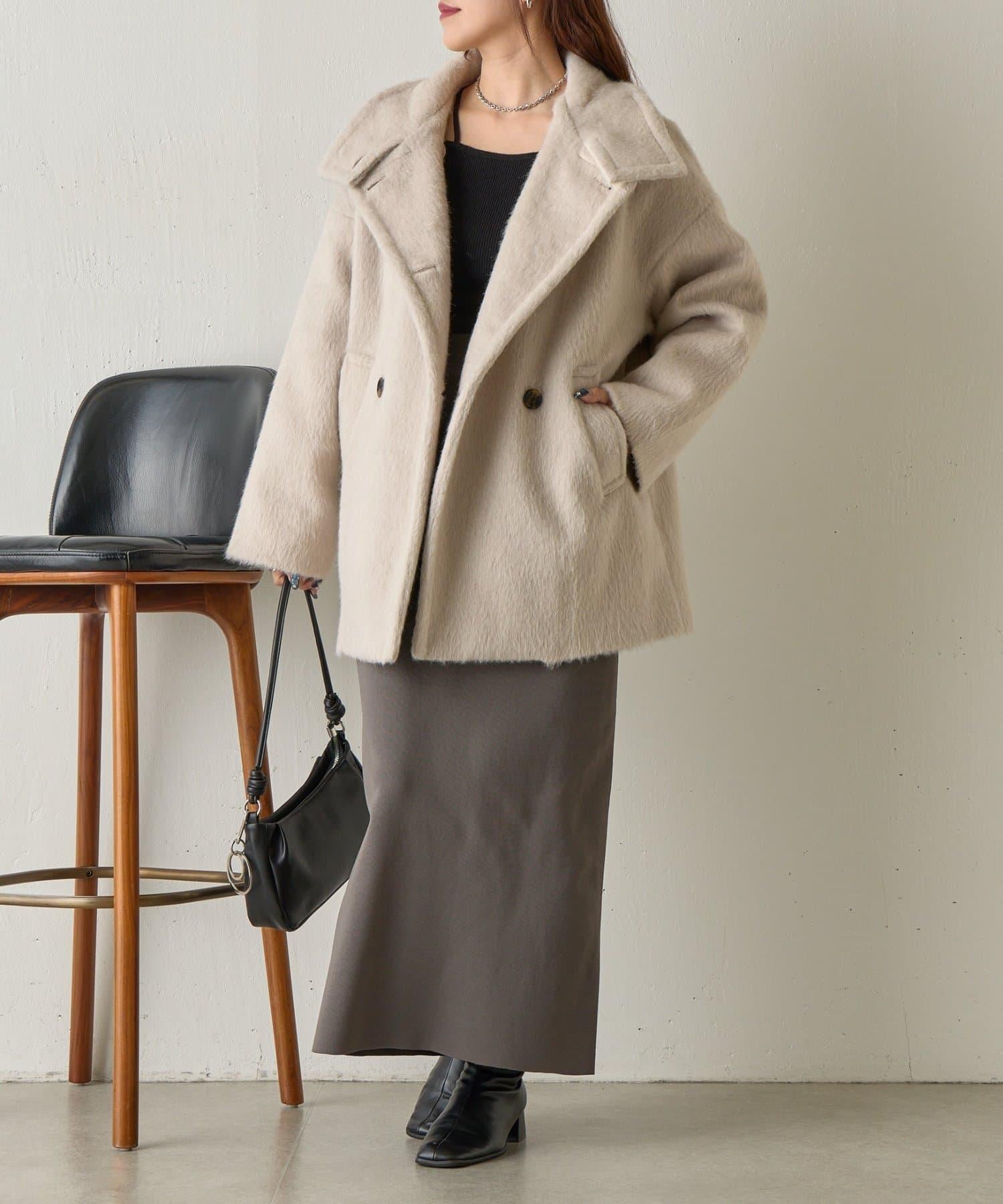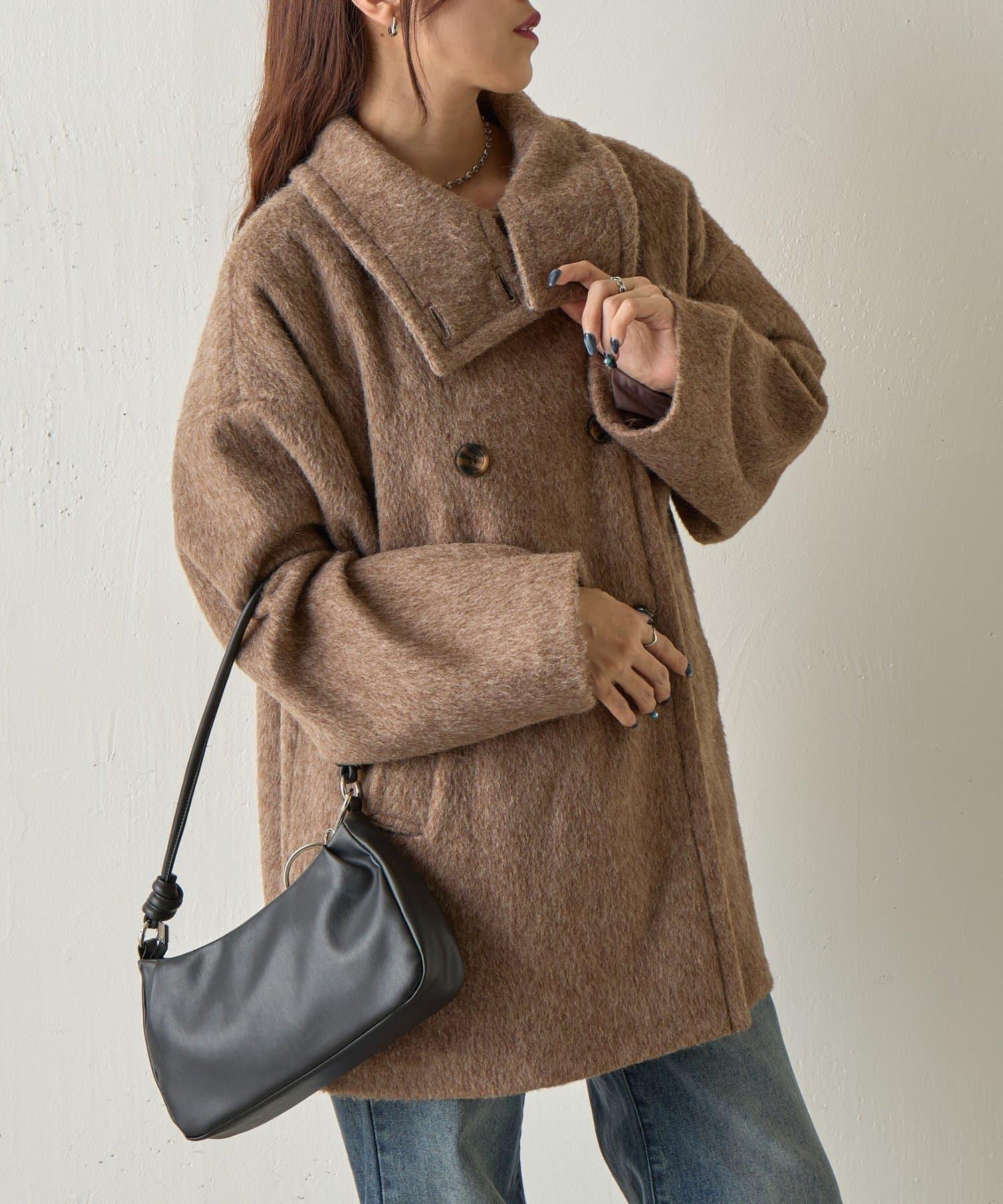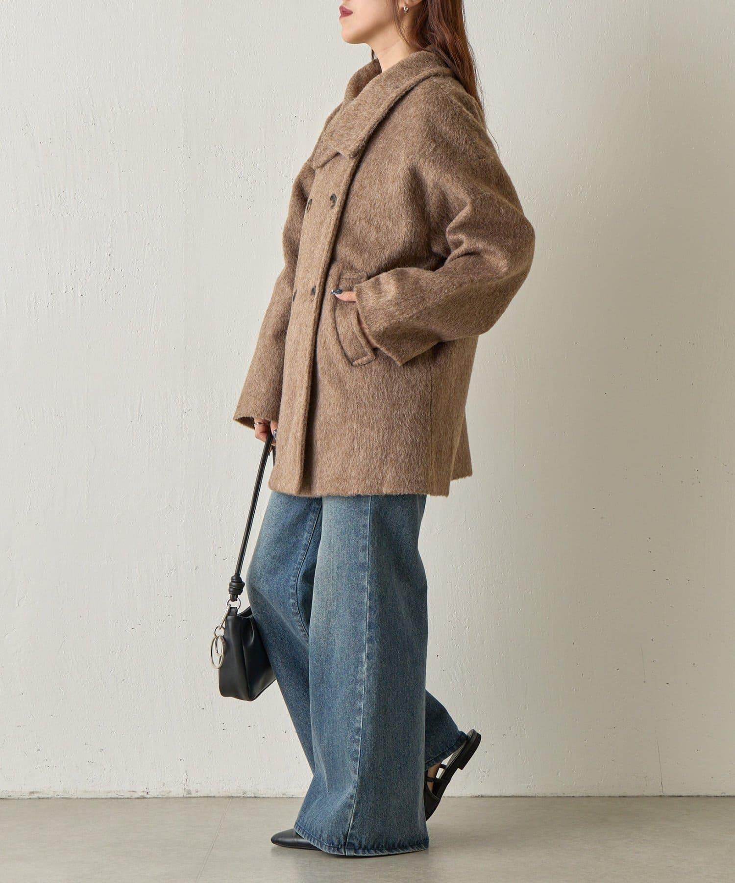 這款立領大衣的蓬鬆絨毛質地更顯女性的柔美和優雅。