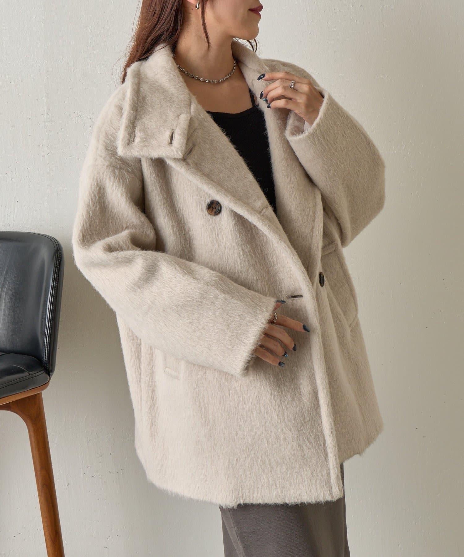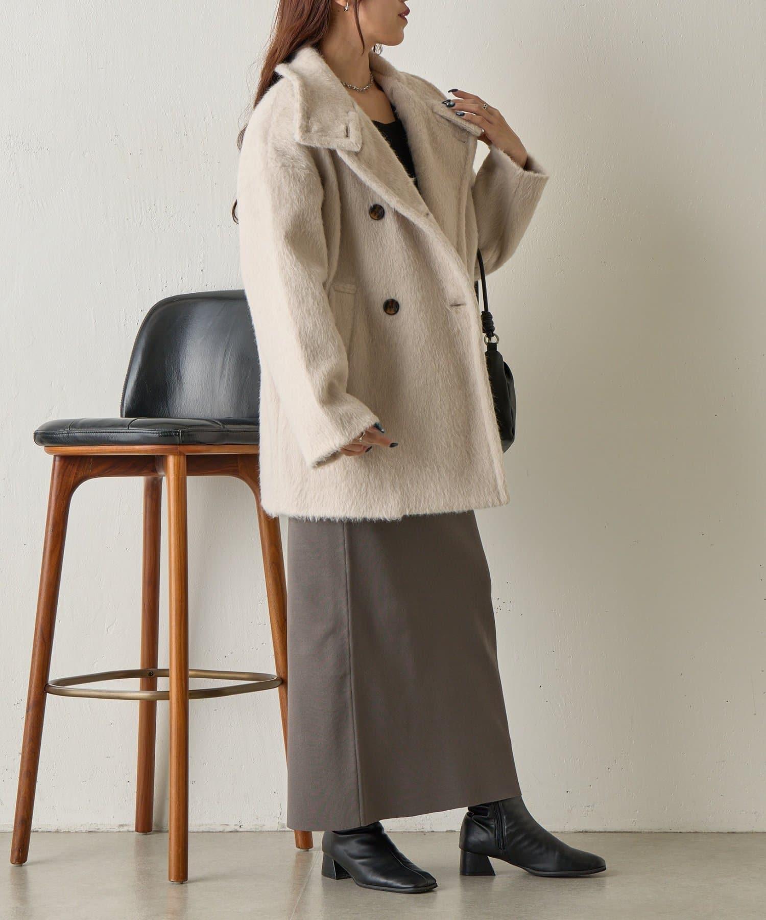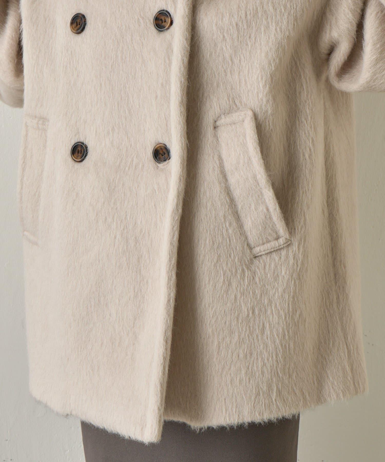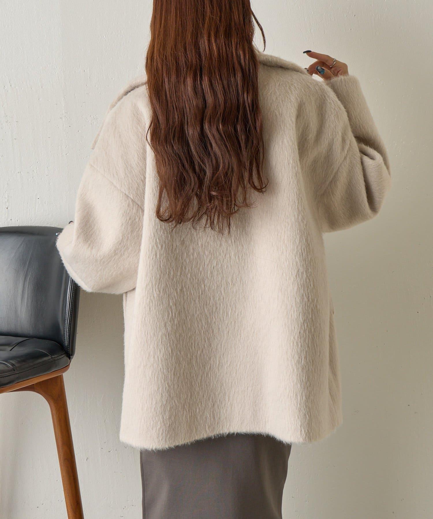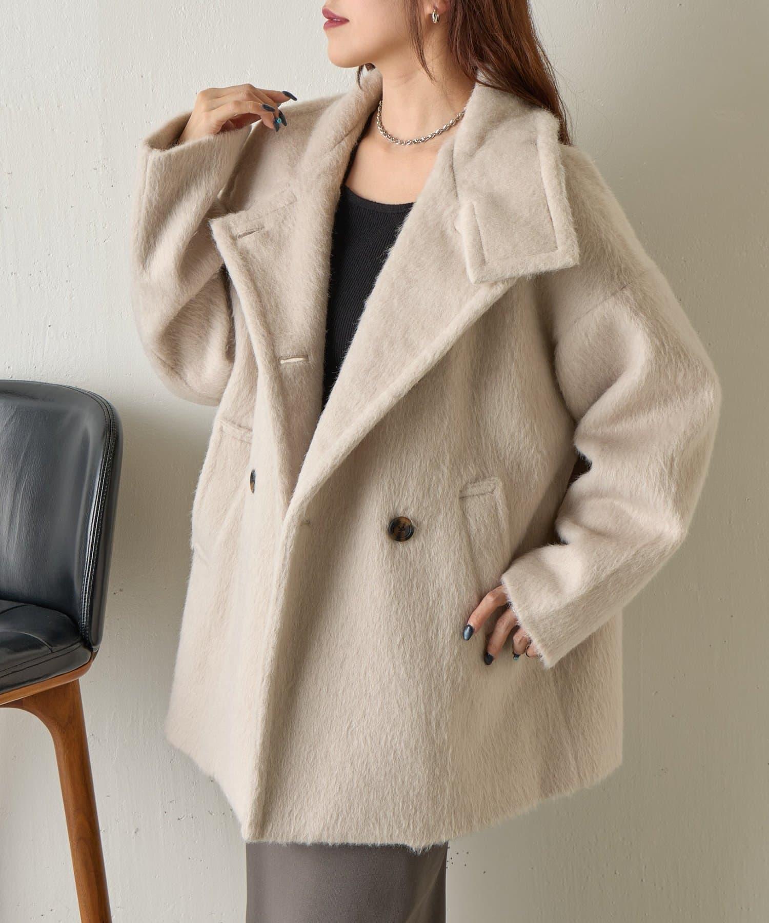 這款立領大衣的蓬鬆絨毛質地更顯女性的柔美和優雅。
