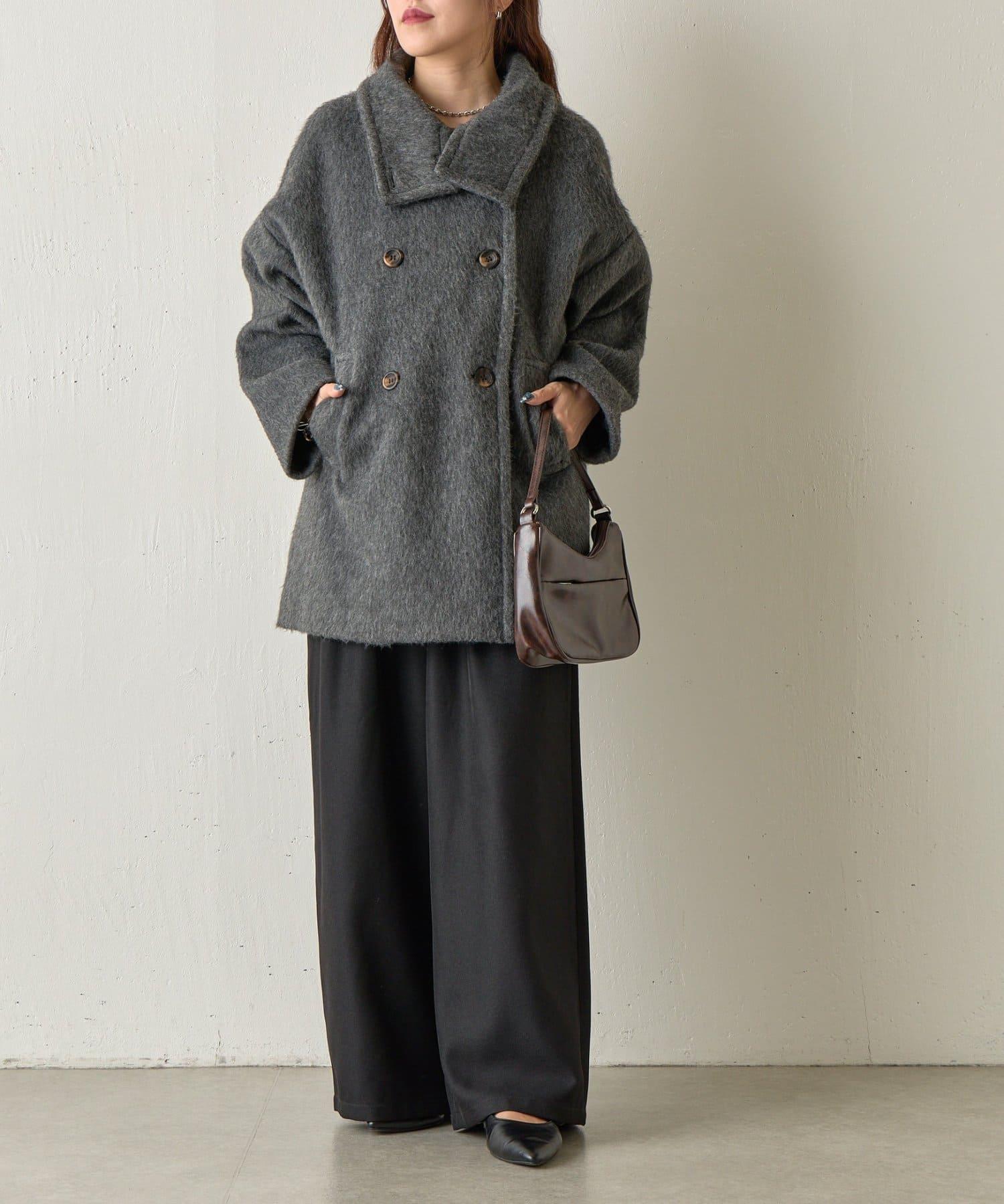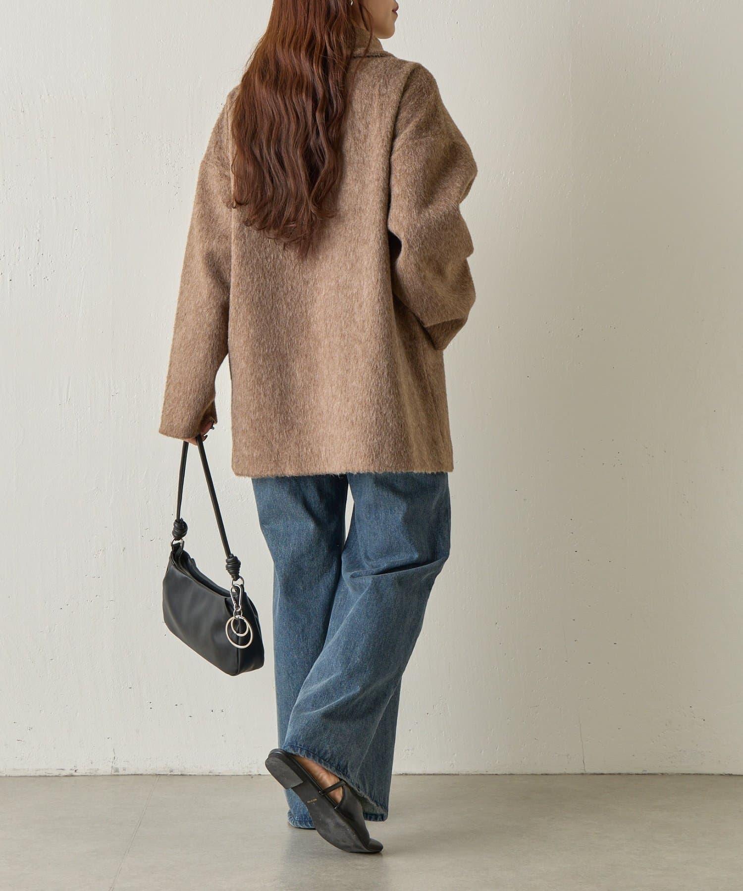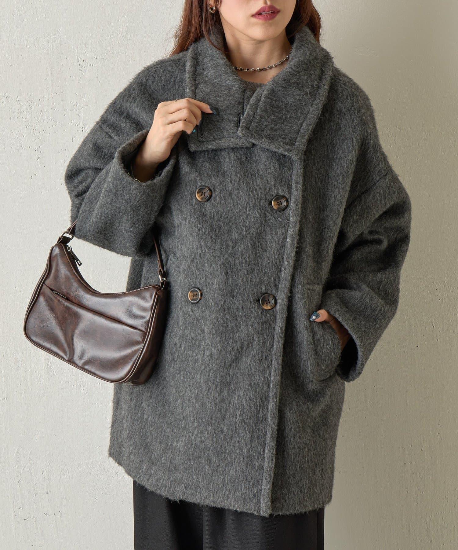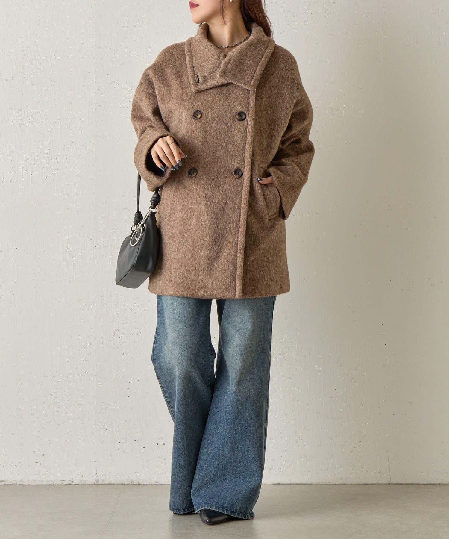 這款立領大衣的蓬鬆絨毛質地更顯女性的柔美和優雅。