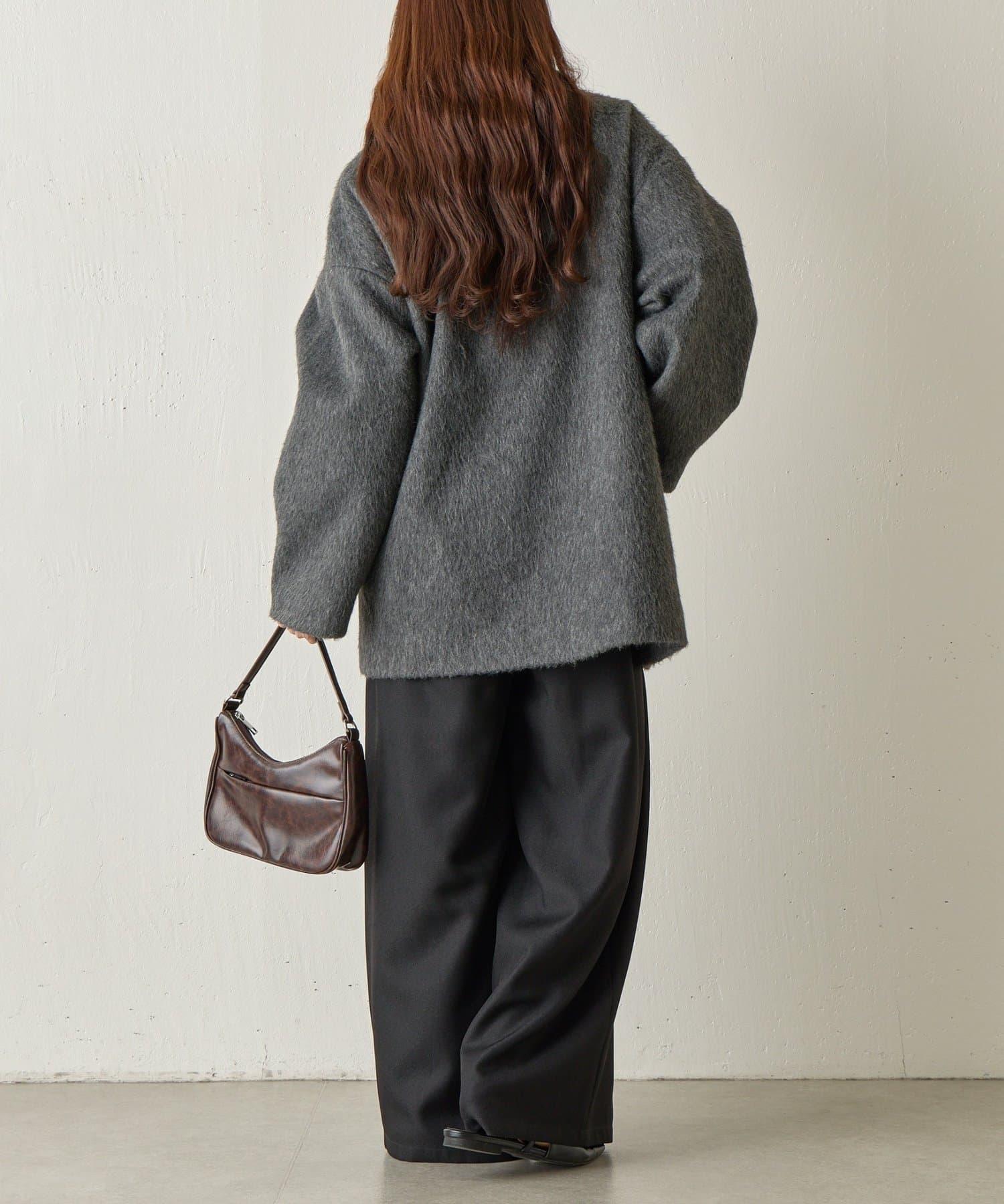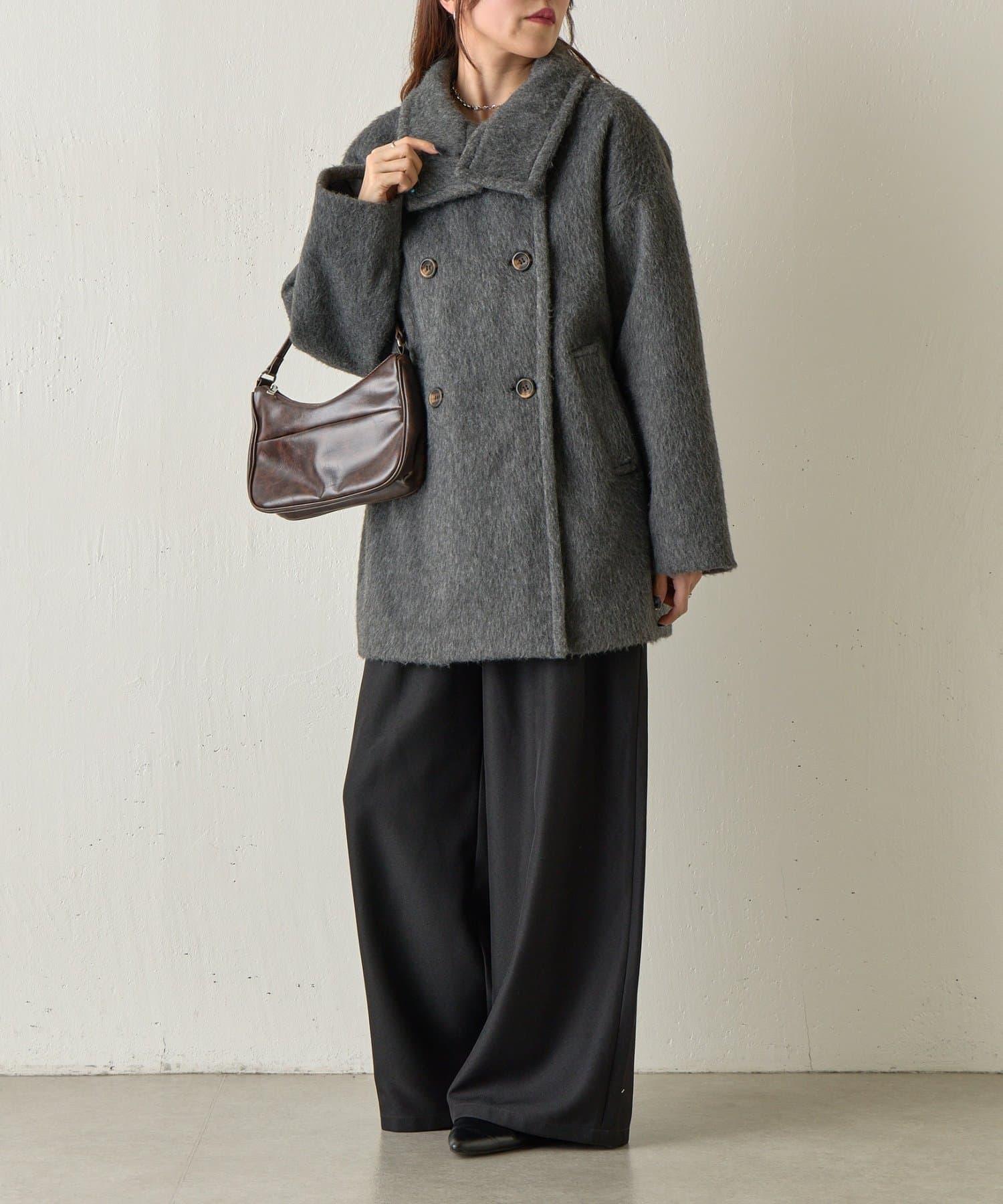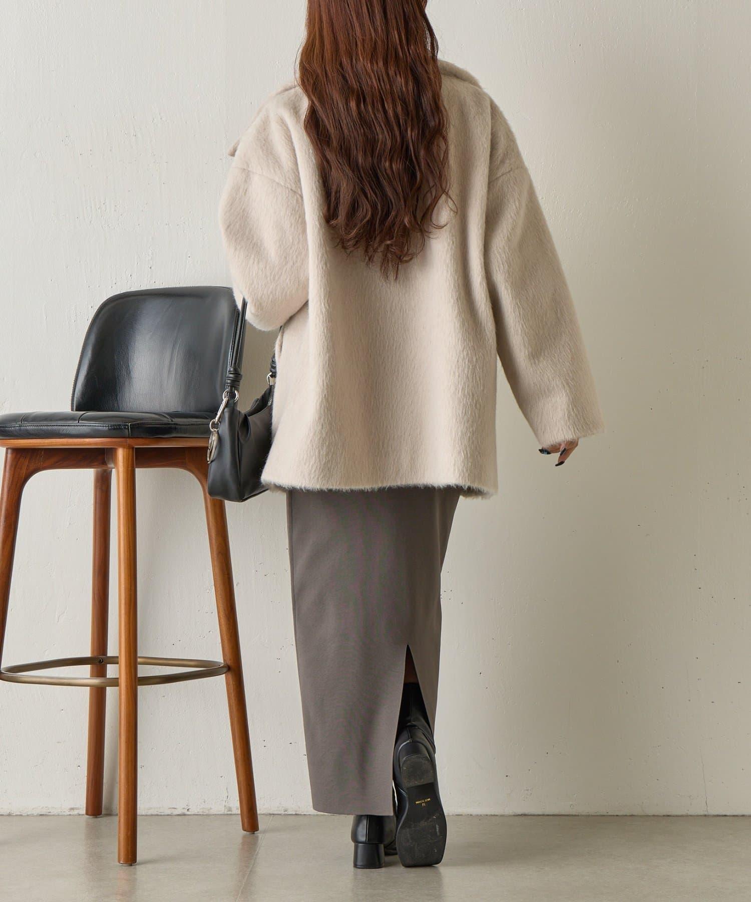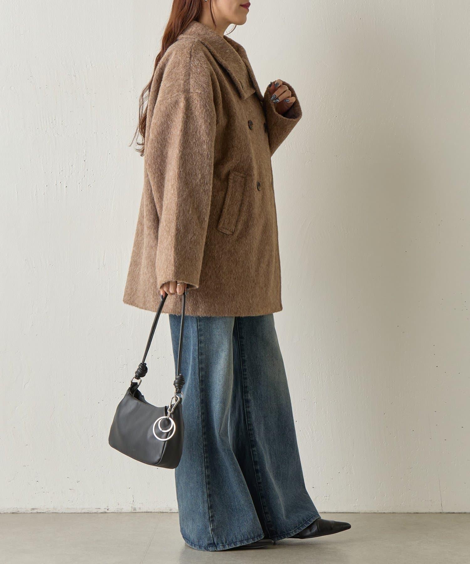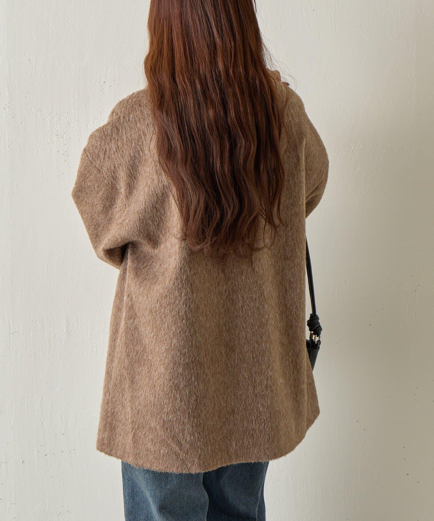 這款立領大衣的蓬鬆絨毛質地更顯女性的柔美和優雅。