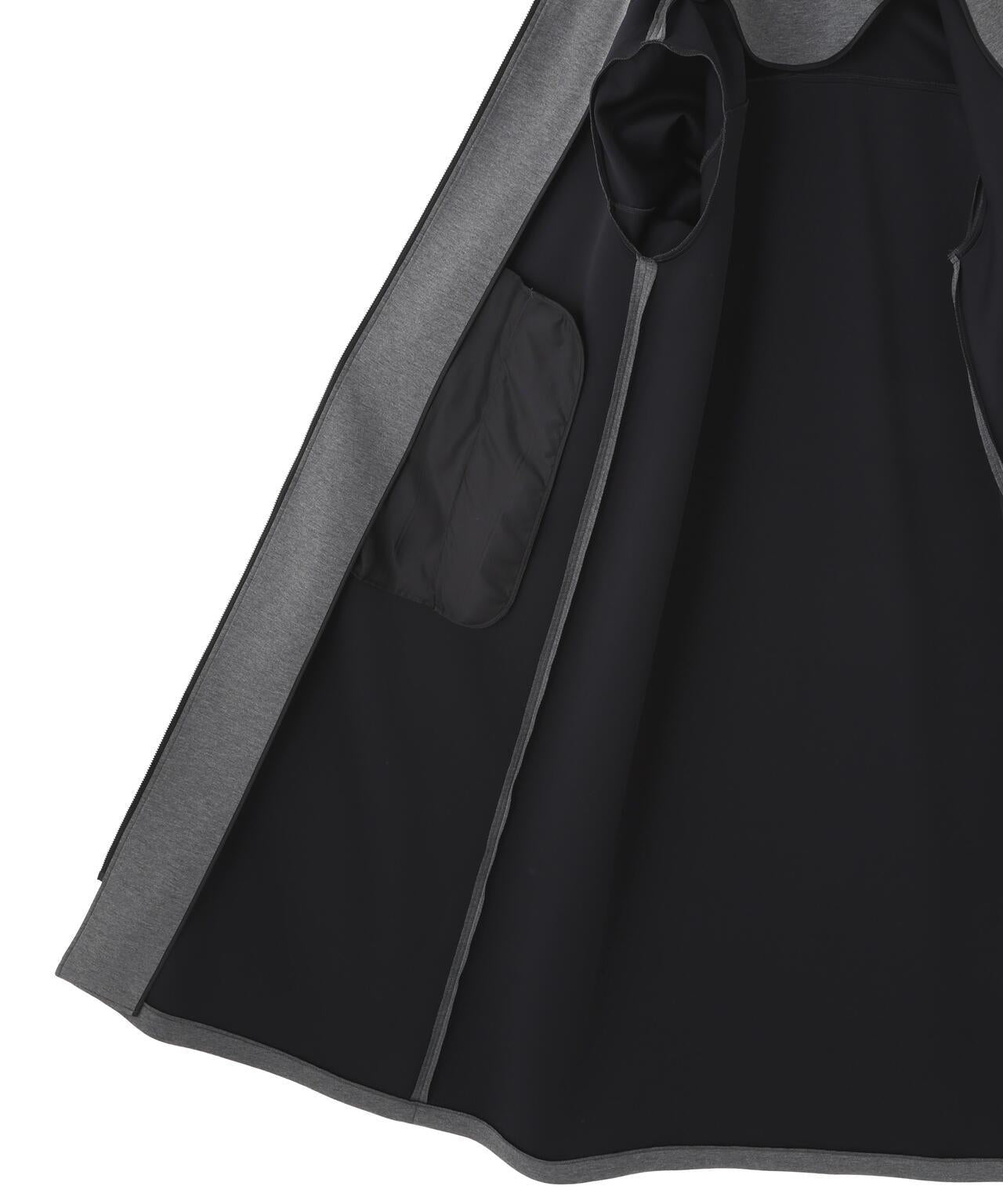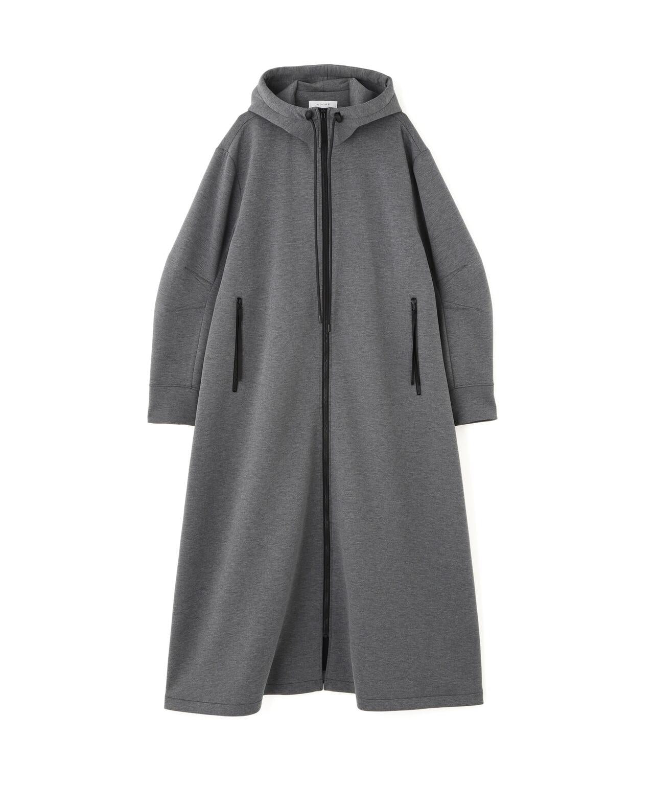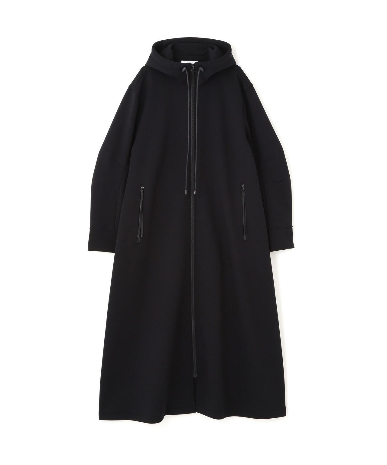 針織面料氣啞彈連帽連衣裙這款連帽連衣裙採用輕質紙板剪裁縫製而成。前面的拉鍊可以拉開,作為梭織上衣穿著。這款紙板針織面料表面採用柔軟的滌綸-氨綸混紡面料,反面採用滌綸紗,手感順滑,具有獨特的回彈感和彈性。