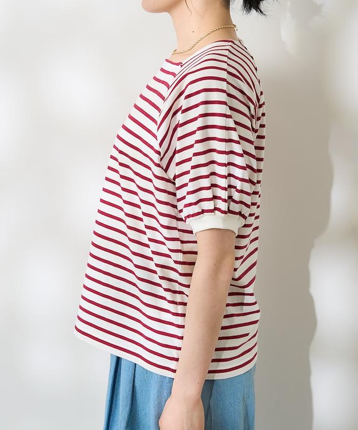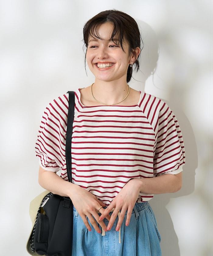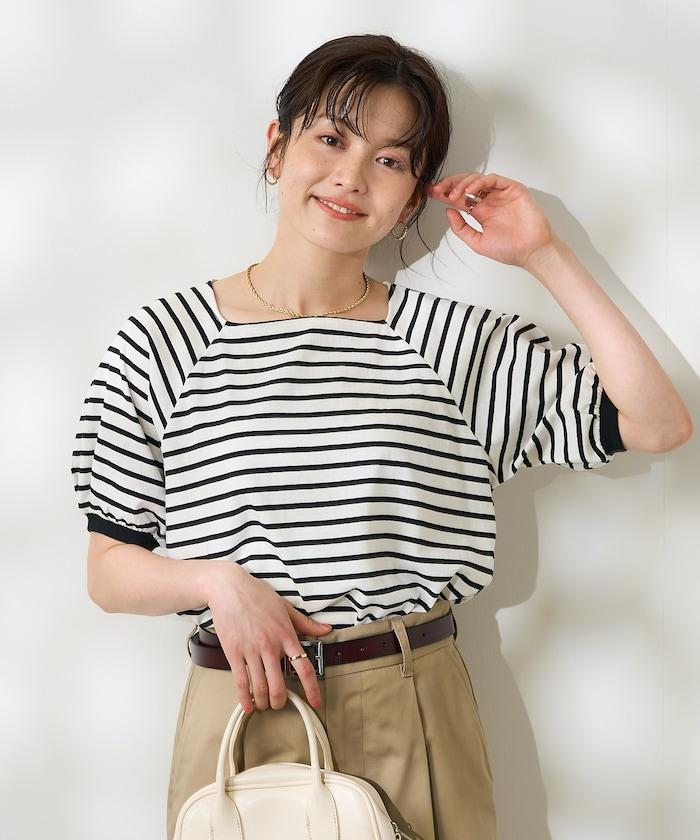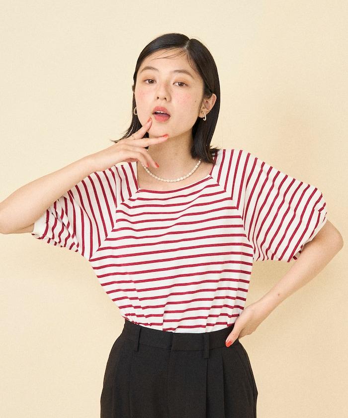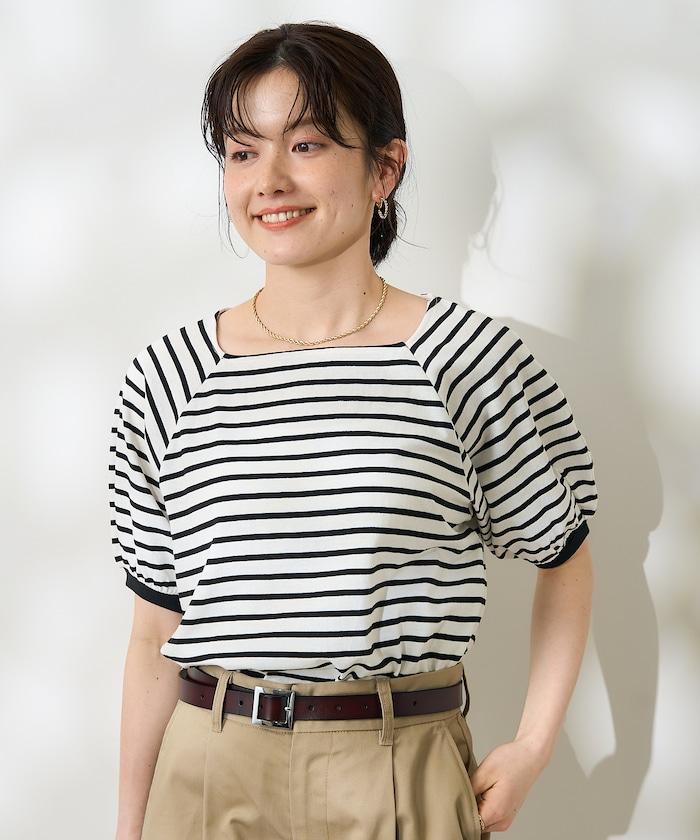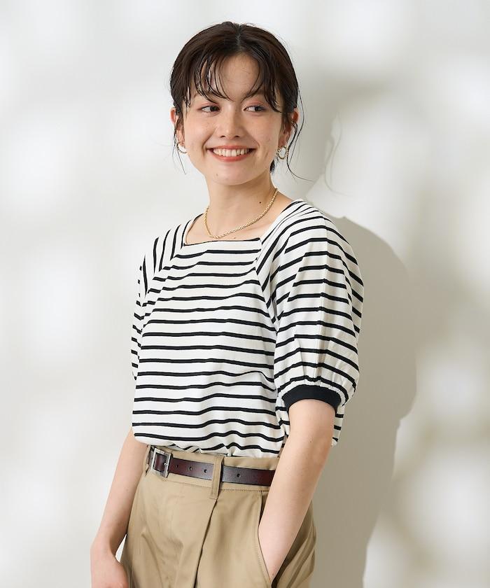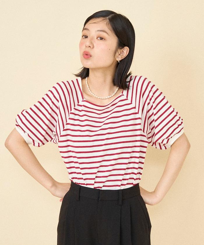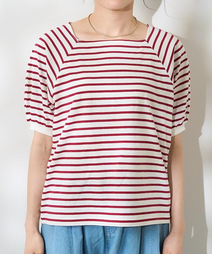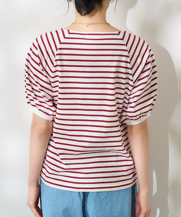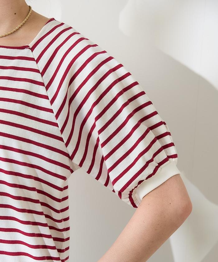 氣球袖 方領 條紋T恤