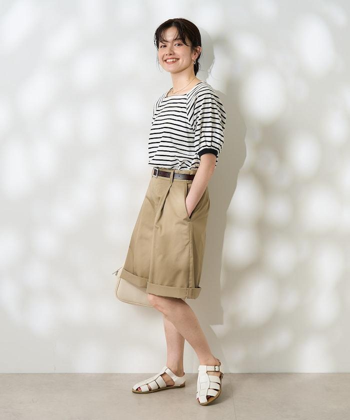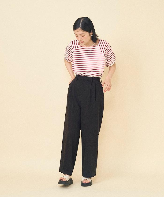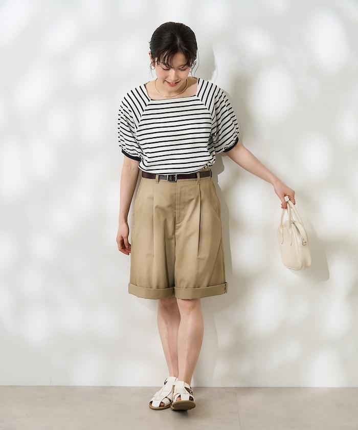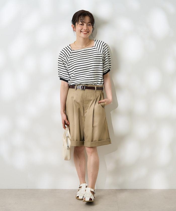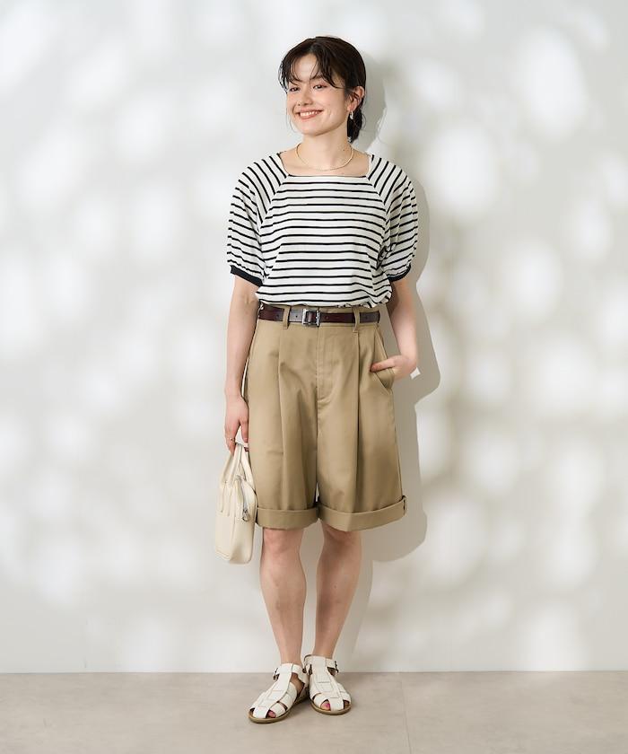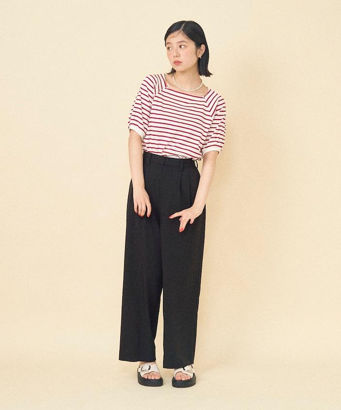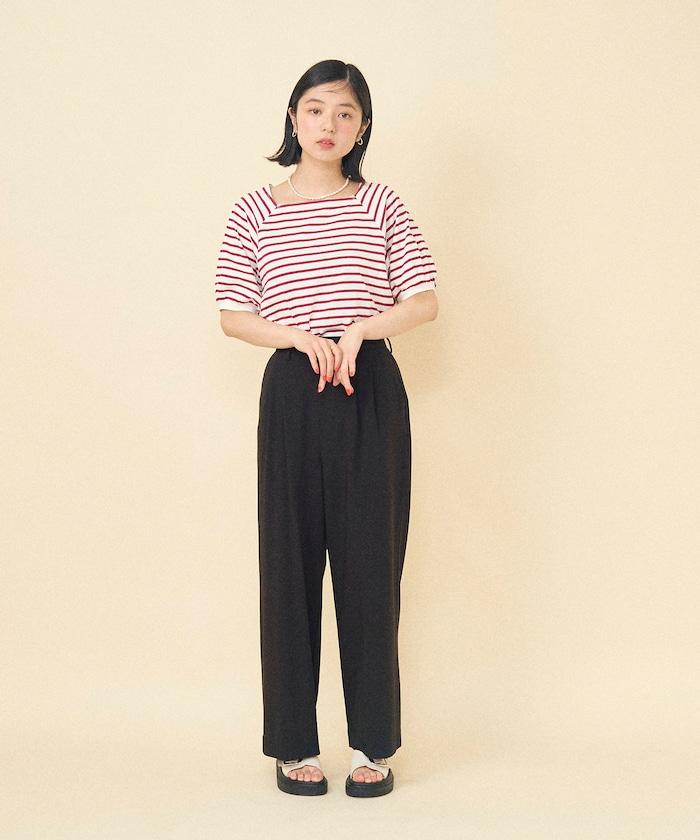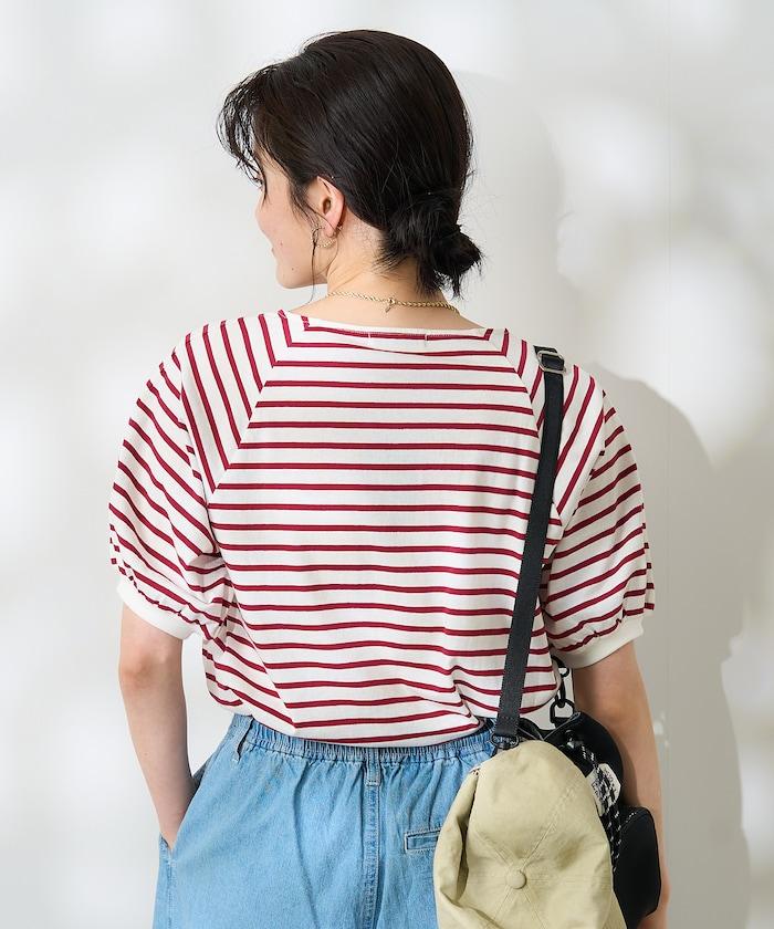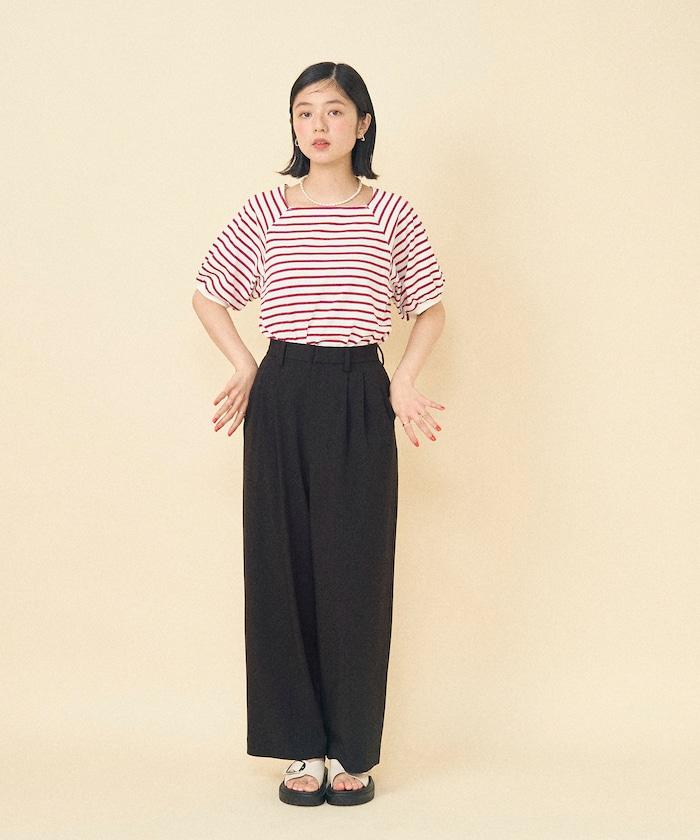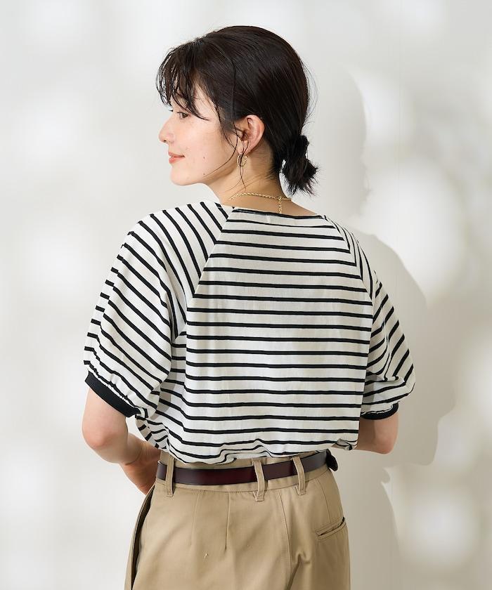 氣球袖 方領 條紋T恤