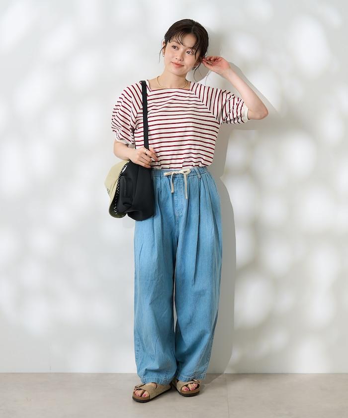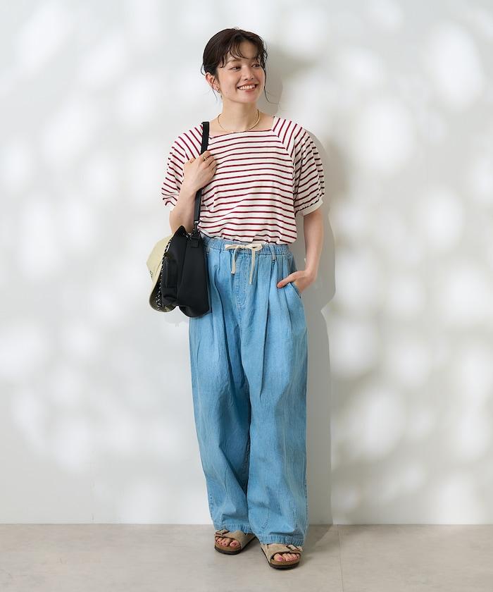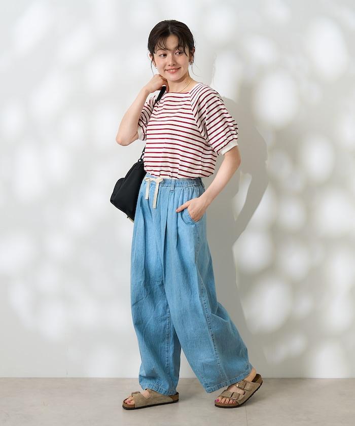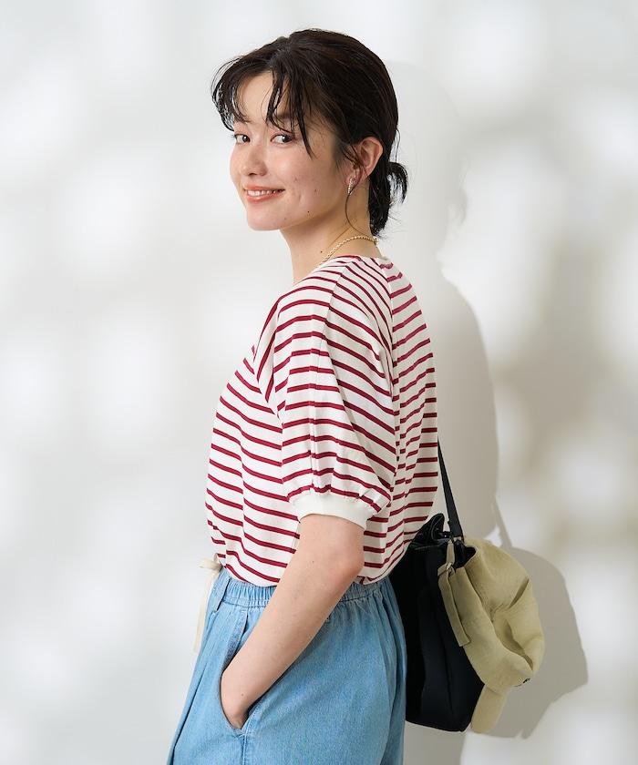 蓬蓬袖 T 恤在女性化設計與條紋圖案之間取得了很好的平衡。