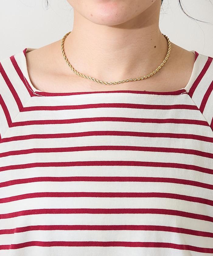 方形領口營造出寬鬆、女性化的印象。