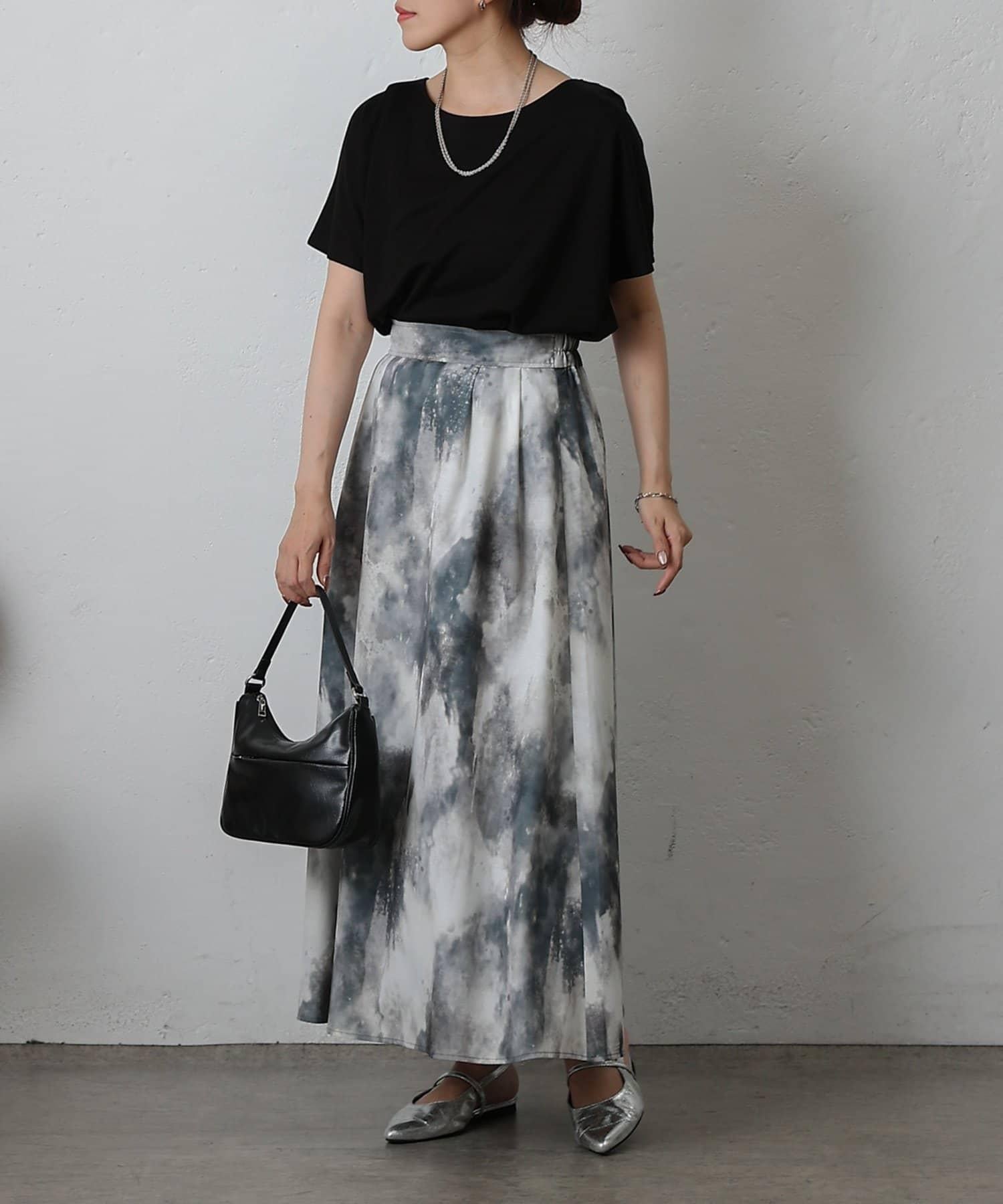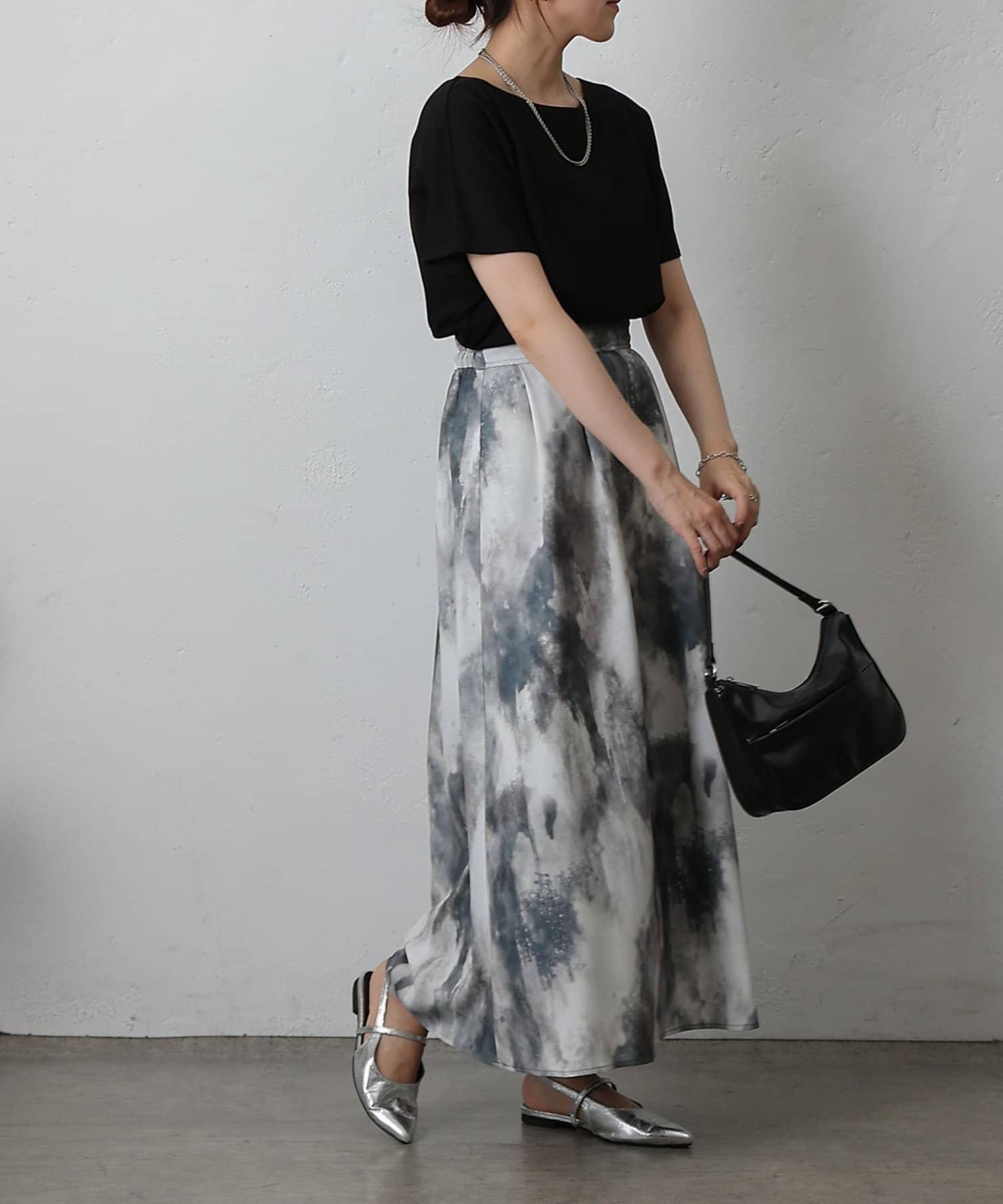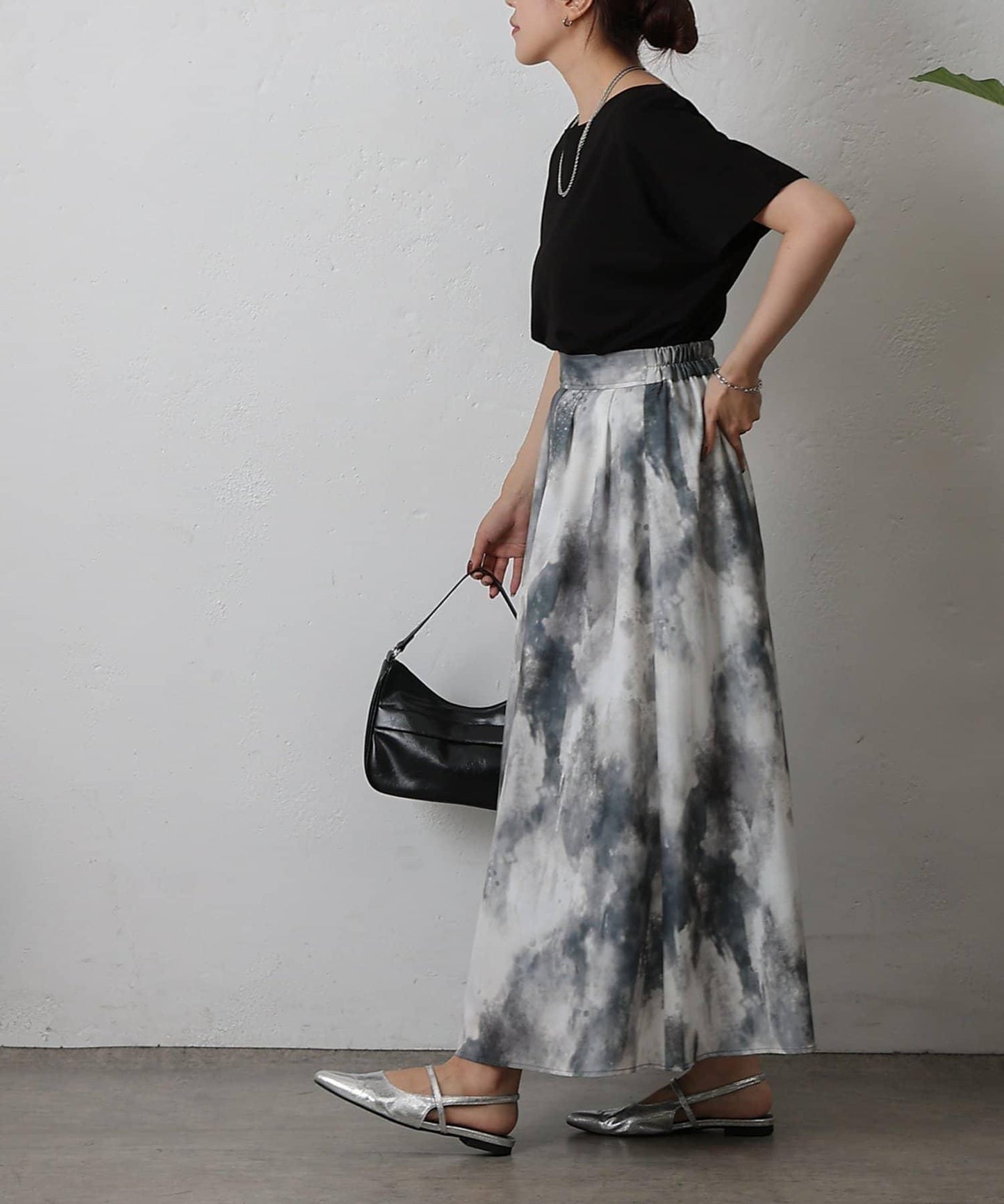 喇叭裙觸感細膩,猶如在畫布上塗抹了水彩畫。走起路來輕輕搖擺的喇叭形輪廓,給人一種清涼的感覺,更顯女性魅力。從腰部延伸開來的垂感非常漂亮,還能起到遮掩身材缺陷的效果。它不僅美觀,而且穿著舒適,輕盈的面料讓人毫無壓力,穿著舒適。只需搭配一件簡單的上衣,就能完成精緻的造型。例如,隨意搭配白色 T 恤和運動鞋,或者優雅搭配襯衫和高跟鞋。從日常使用到小型外出活動,它都是一款值得信賴的單品,一定能活躍在各種場景中。