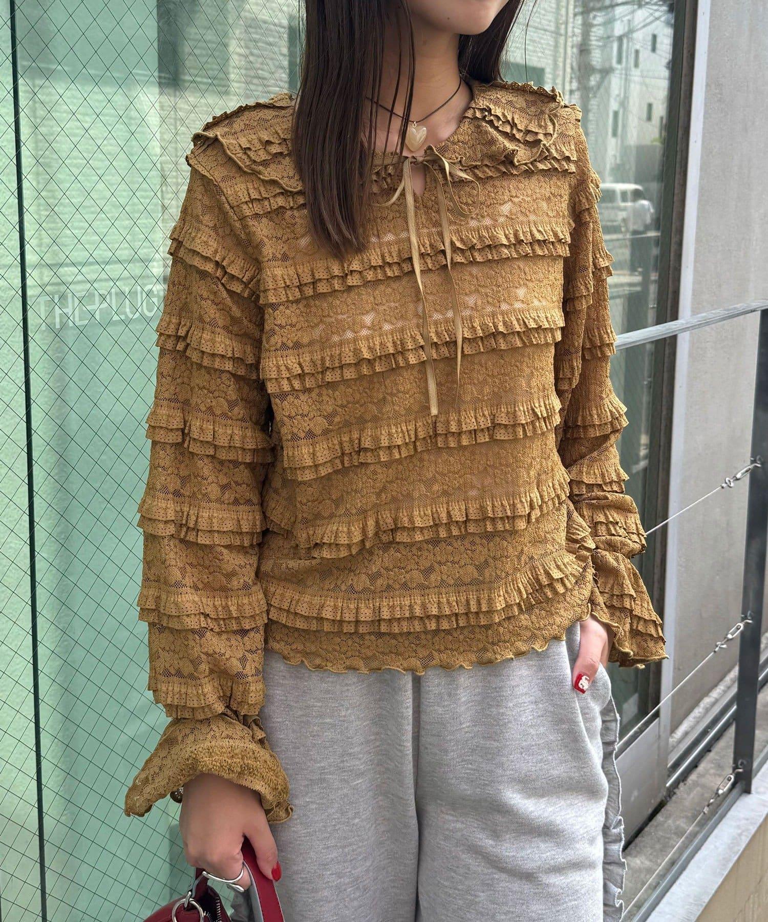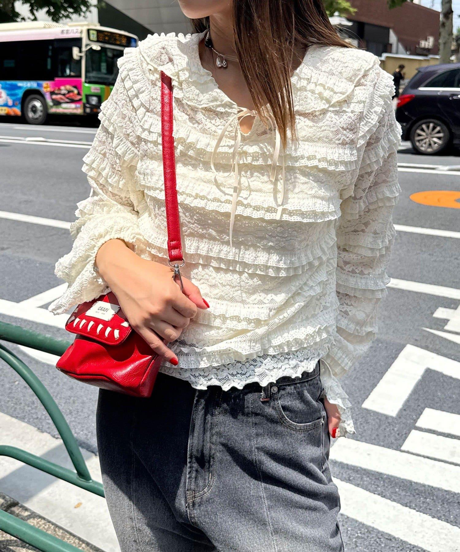 蕾絲上衣褶皺豐富,充滿少女魅力。