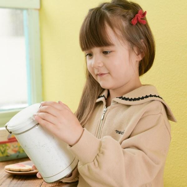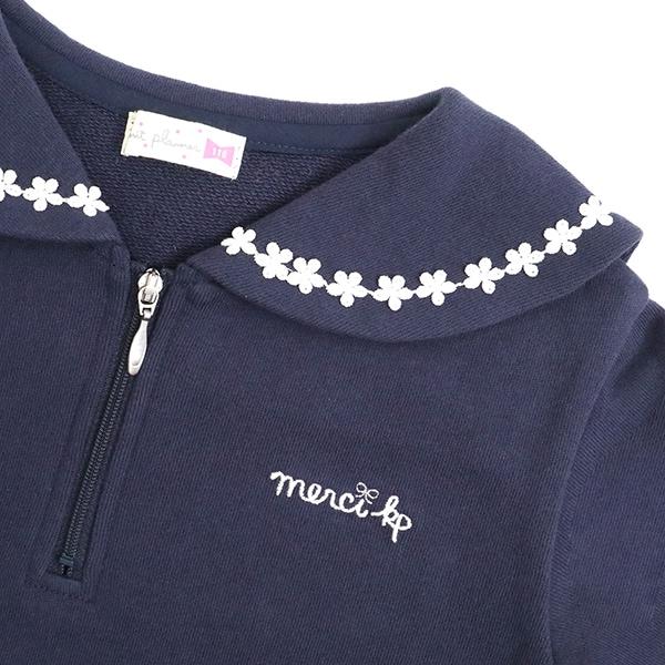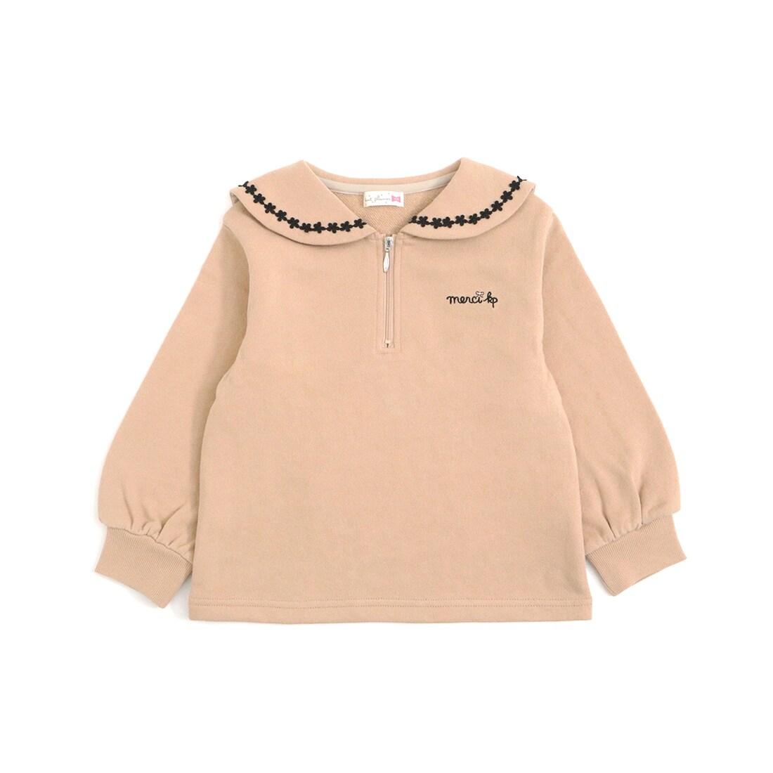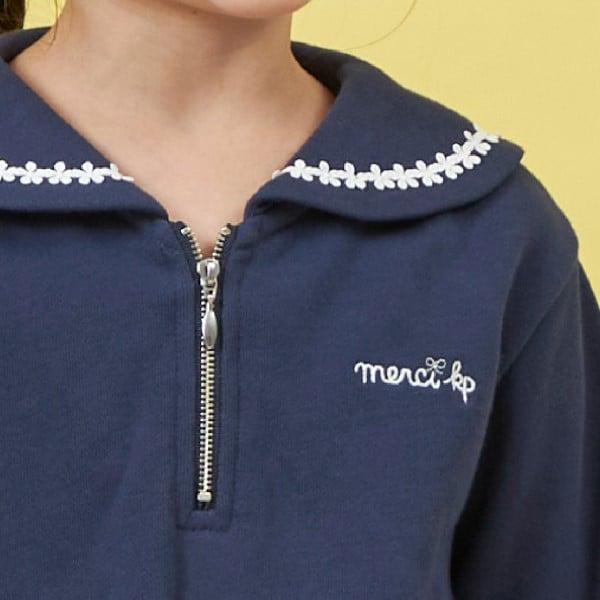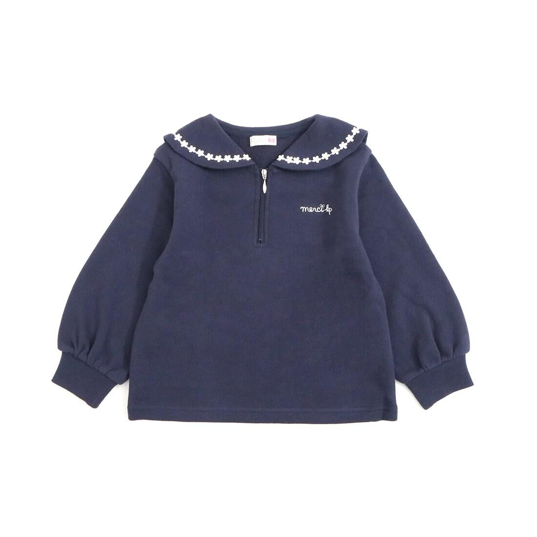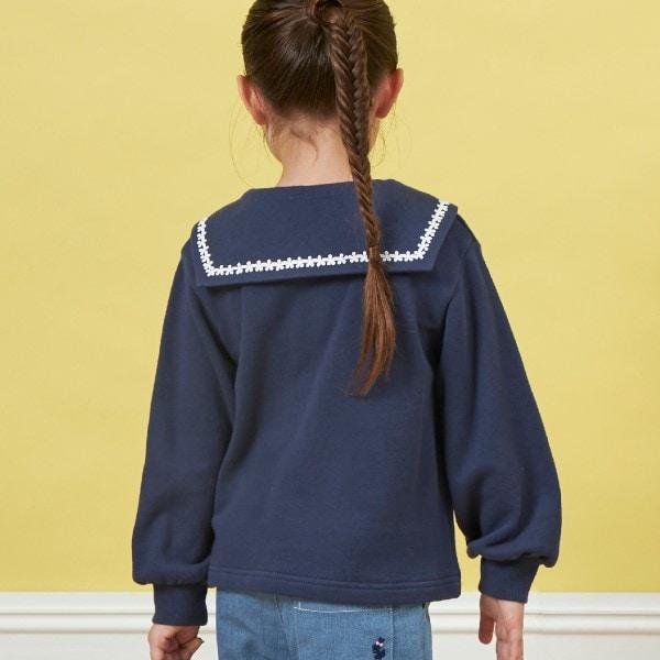 水手領有襯裡的運動衫。領口飾有花朵蕾絲點綴。半拉鍊設計給人與眾不同的時尚印象。