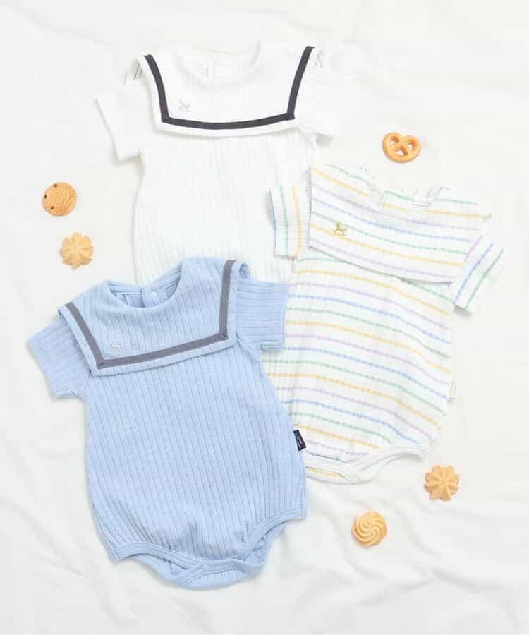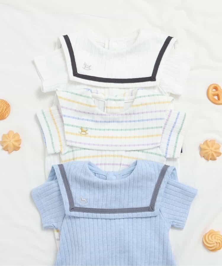 apres les cours coverall 連體衣 "水手領連體衣 "的設計溫和、細緻、自然。嬰兒禮品和嬰兒禮物中的明星