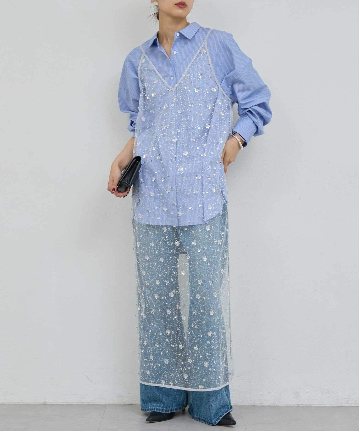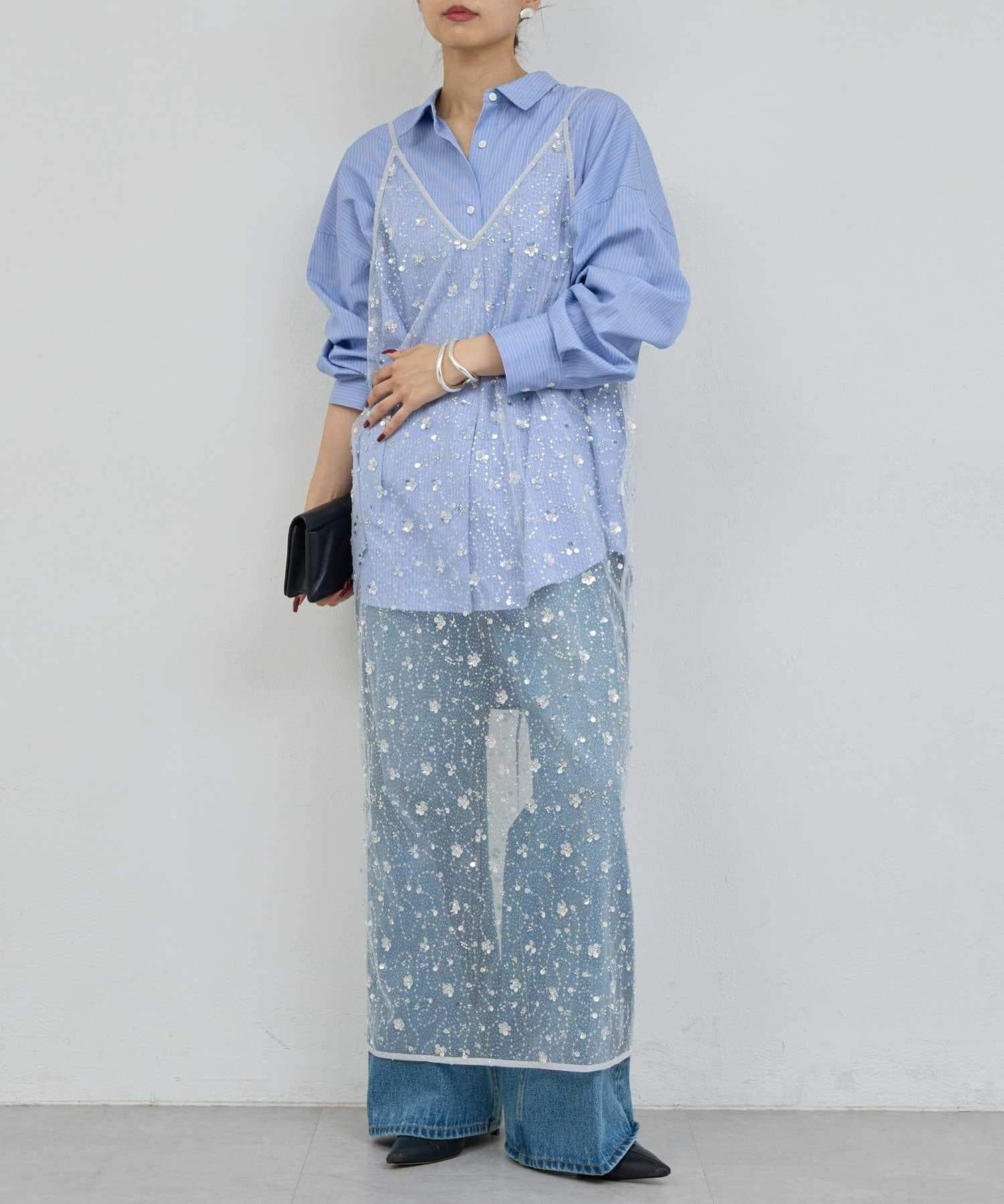 前胸和後背鑲嵌的精緻小飾品讓這款連衣裙魅力四射。