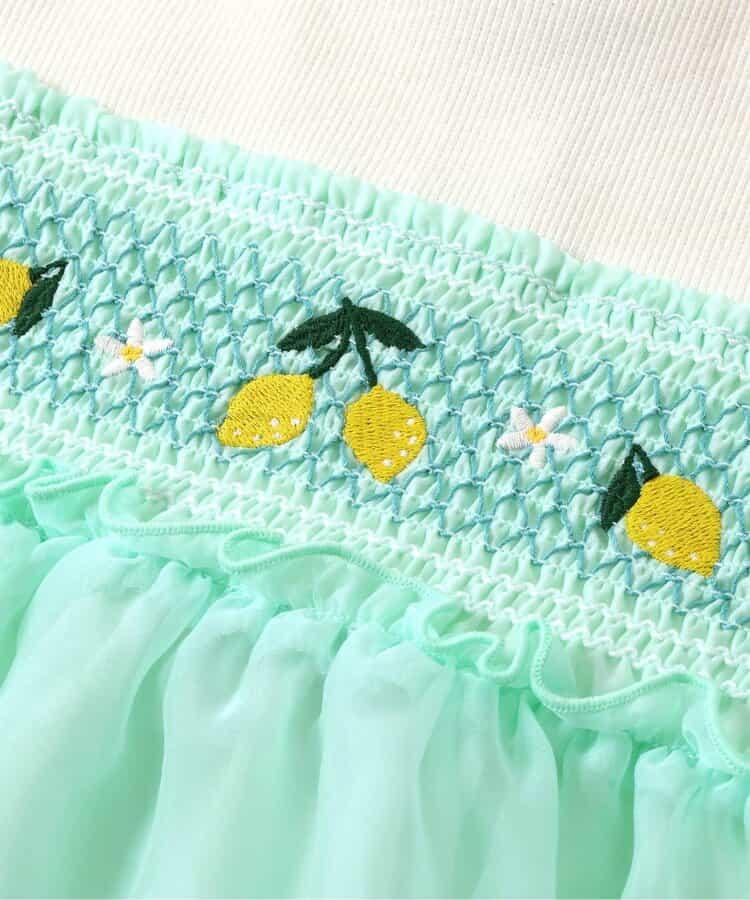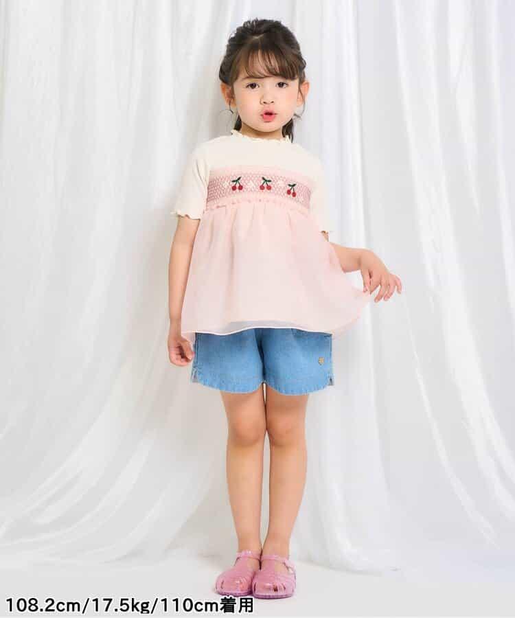apres les cours 的短袖 T 恤 "水果刺繡對接上衣 "是一款時尚單品,在自然風格中加入了精巧的設計*。