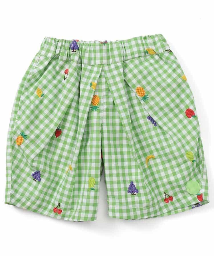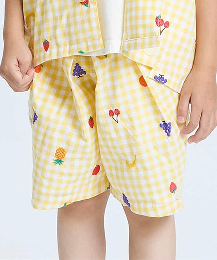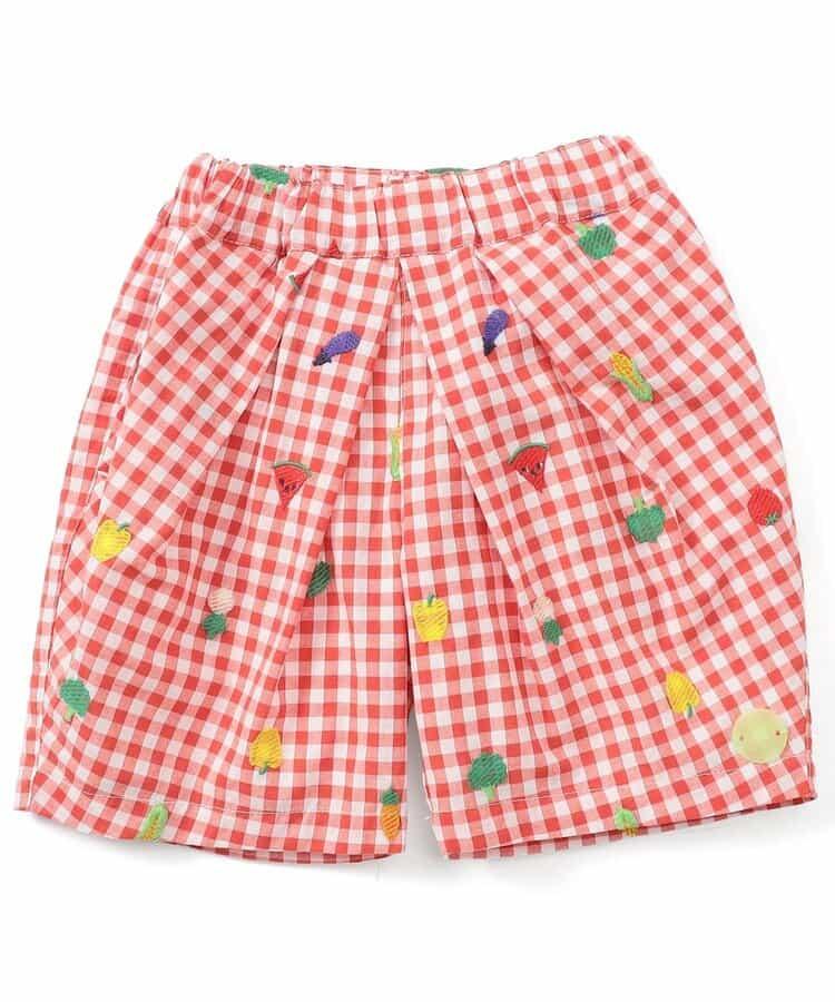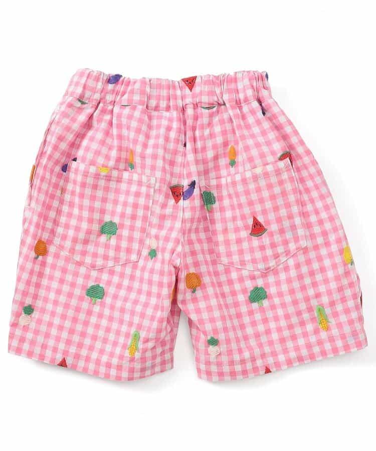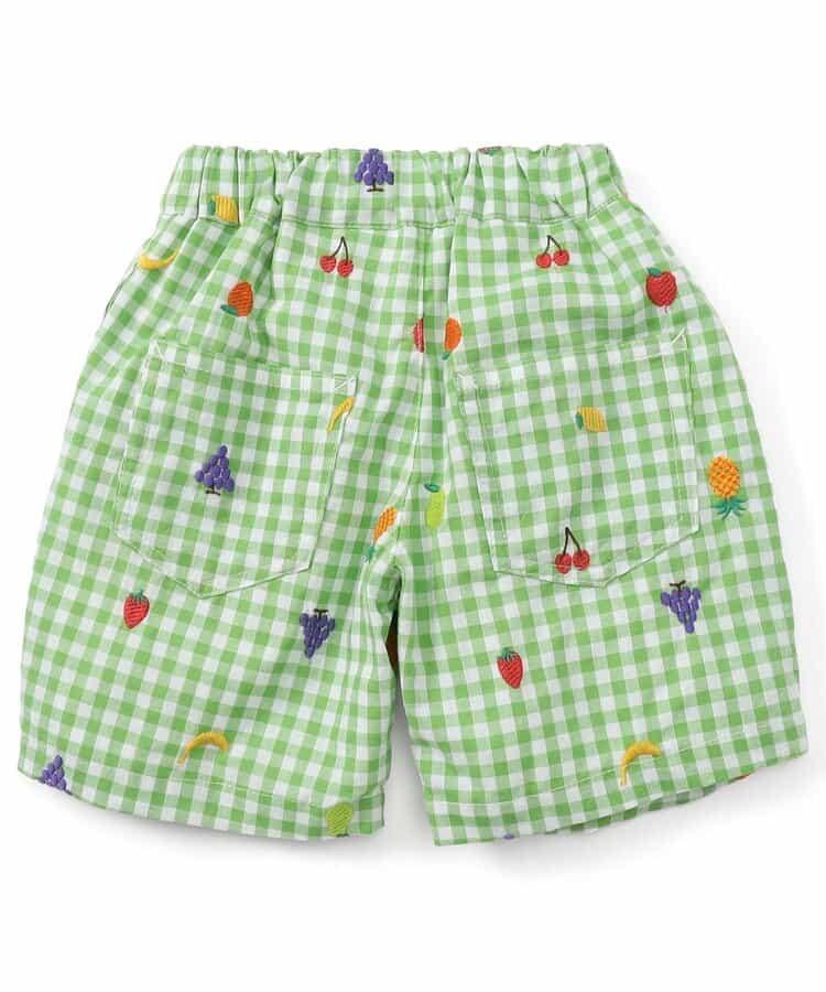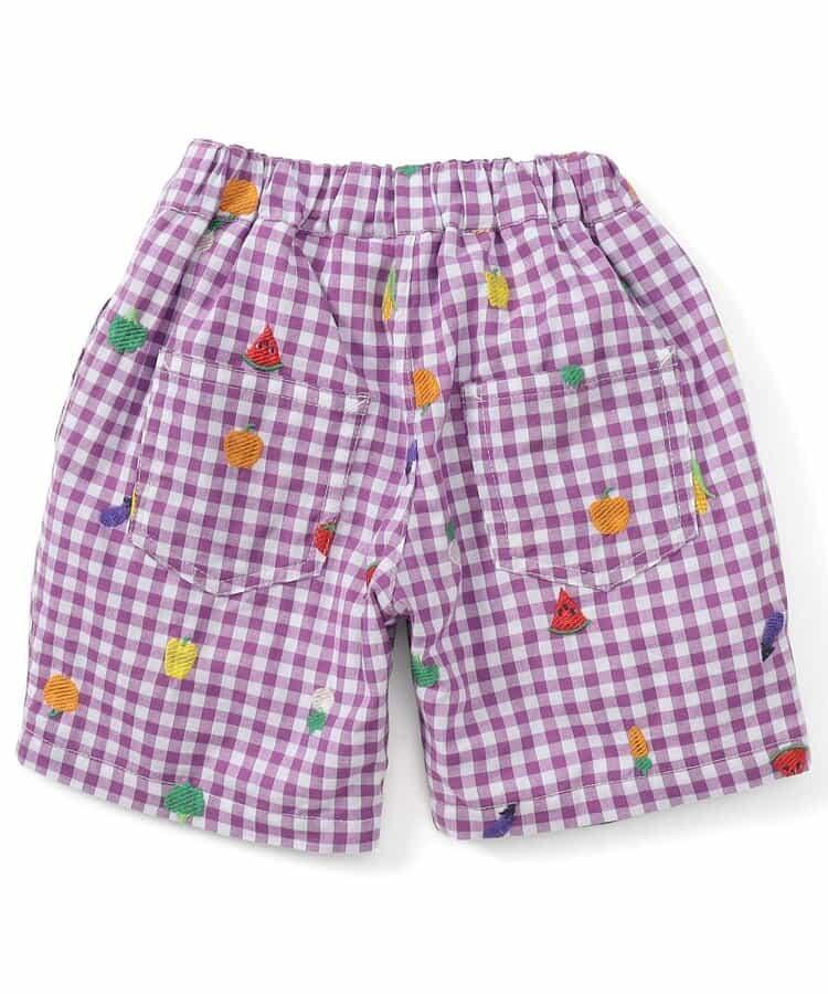 水果和蔬菜刺繡格子褲 5分褲
