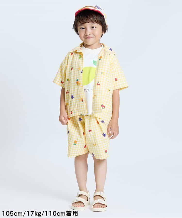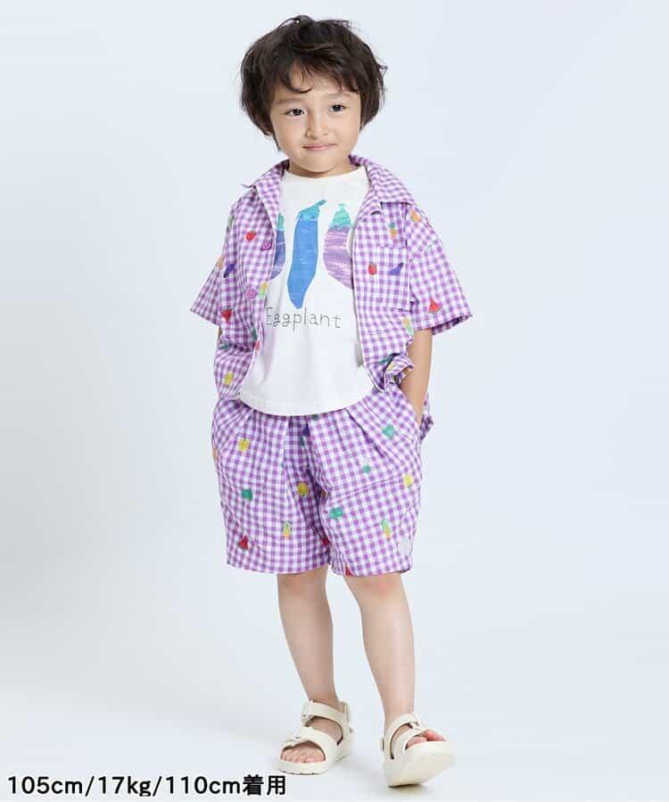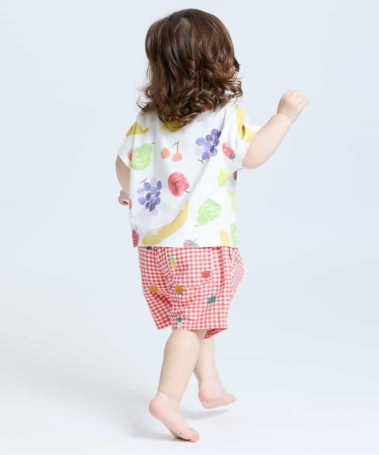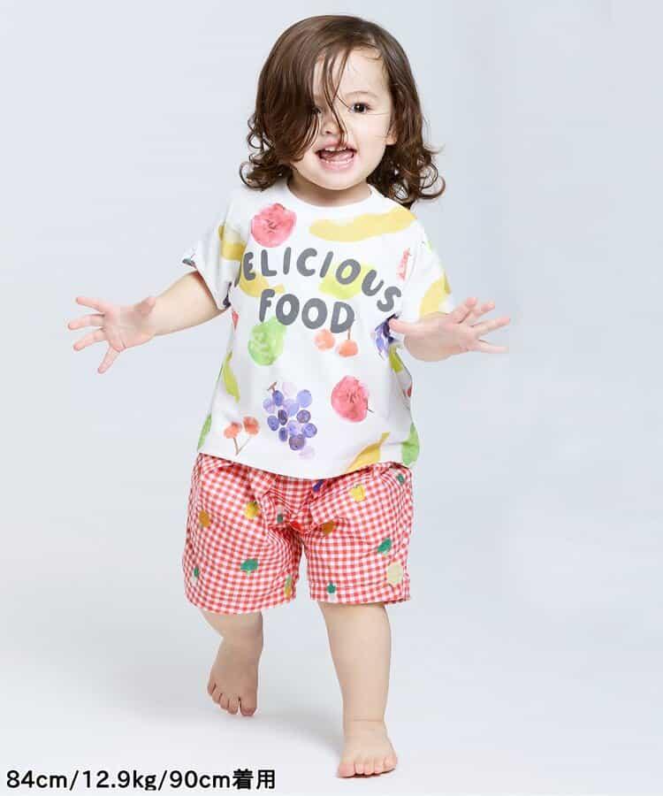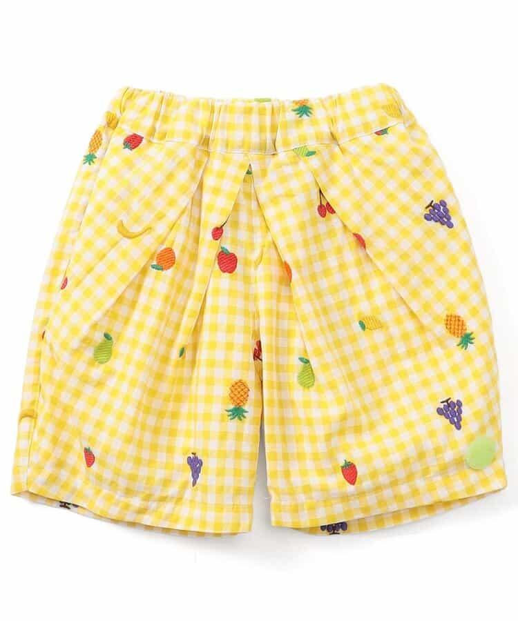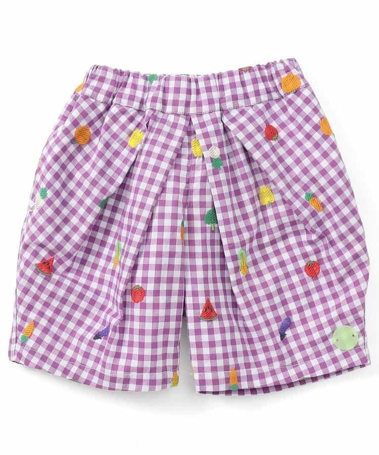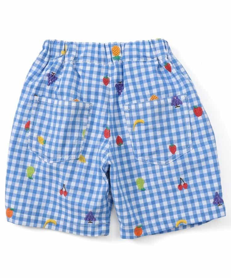 水果和蔬菜刺繡格子褲 5分褲
