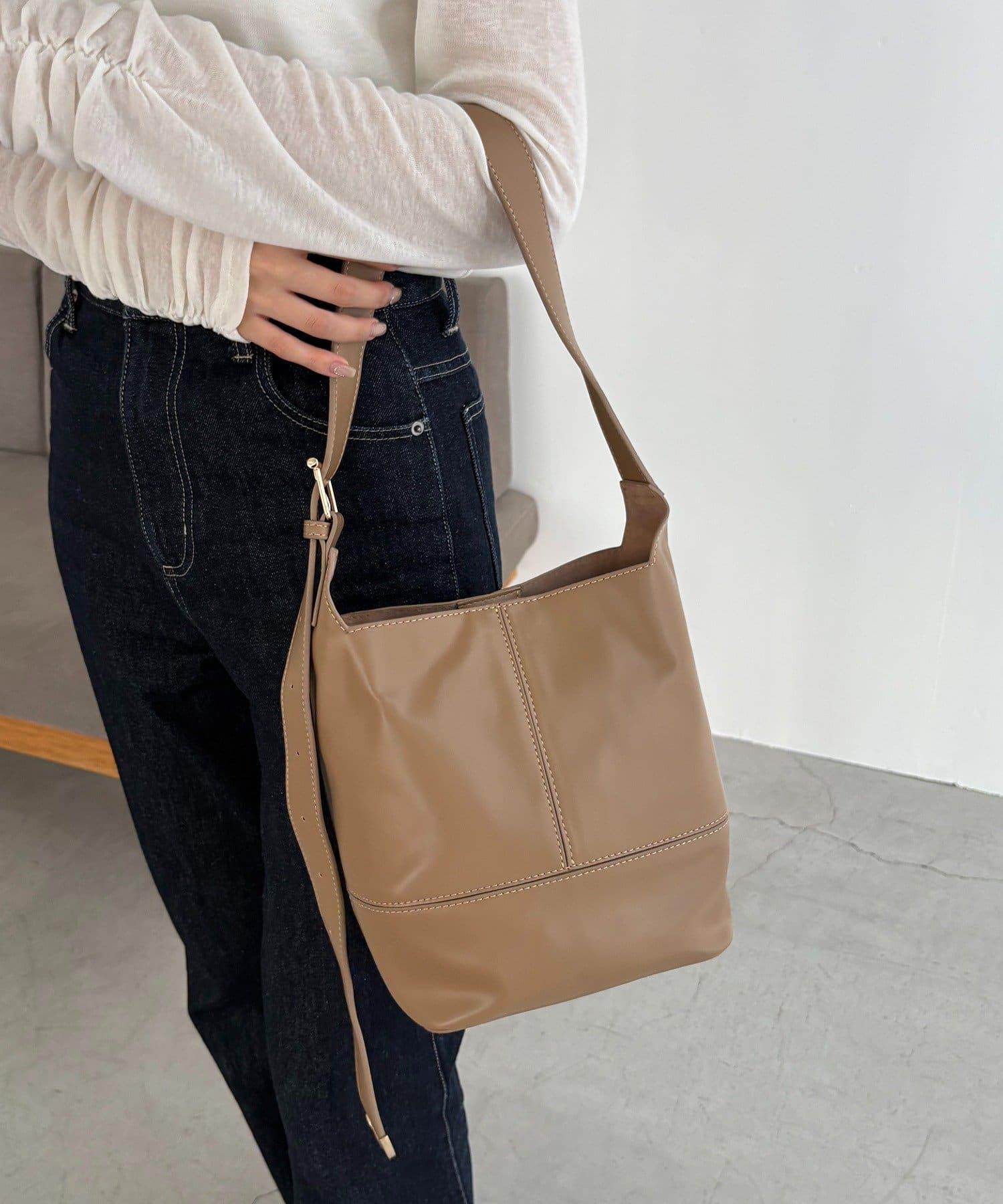 手柄的長度可通過腰帶調節,因此既可用作手提包,也可用作單肩包。