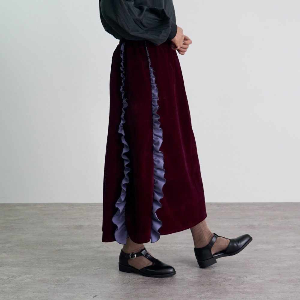 這款裙子大膽採用了流行的波爾多絲絨面料,獨特而又優雅協調。