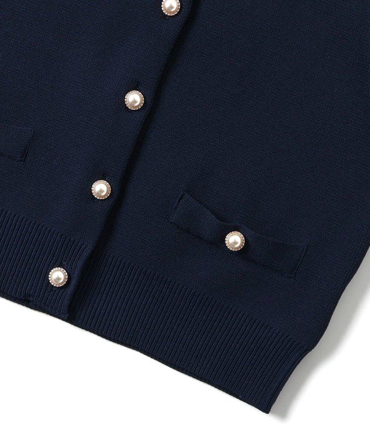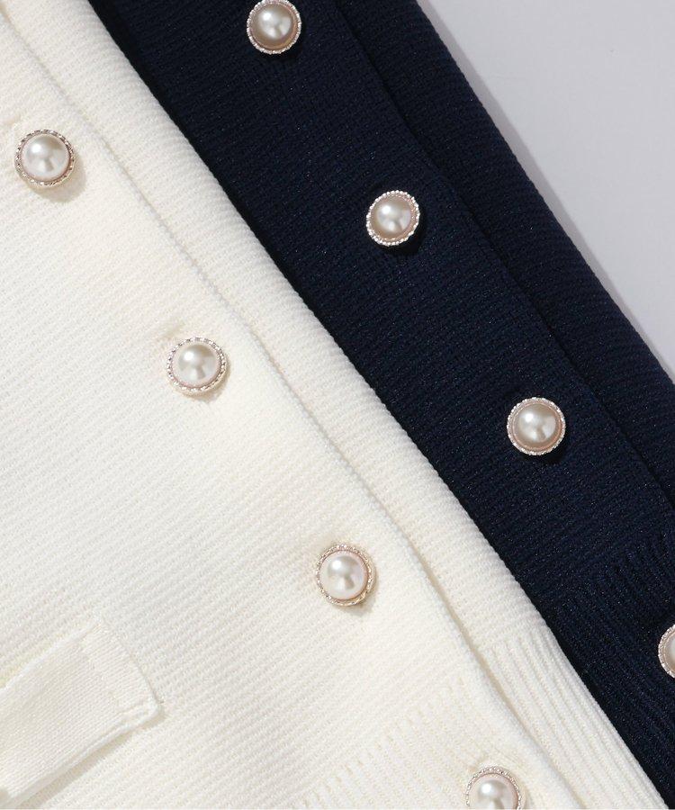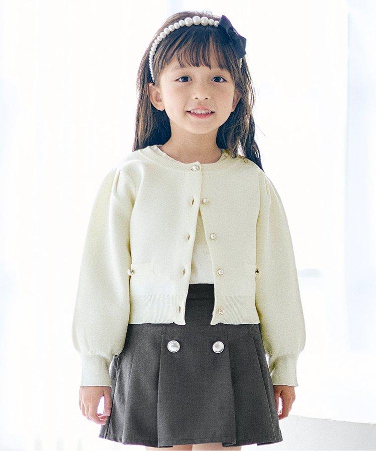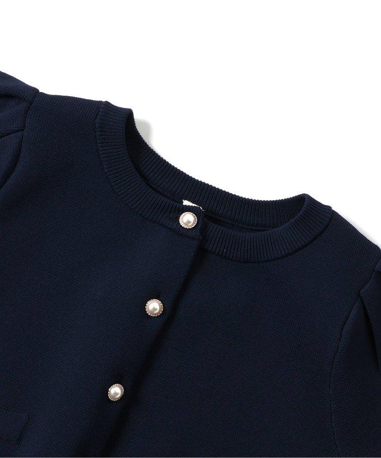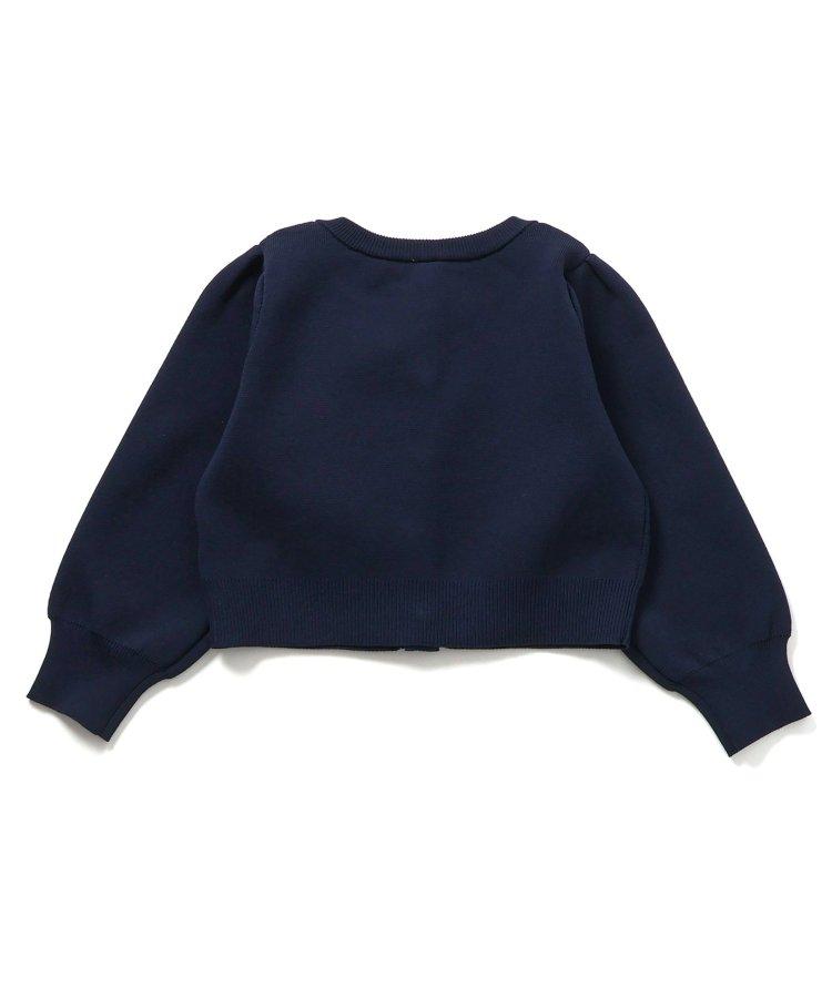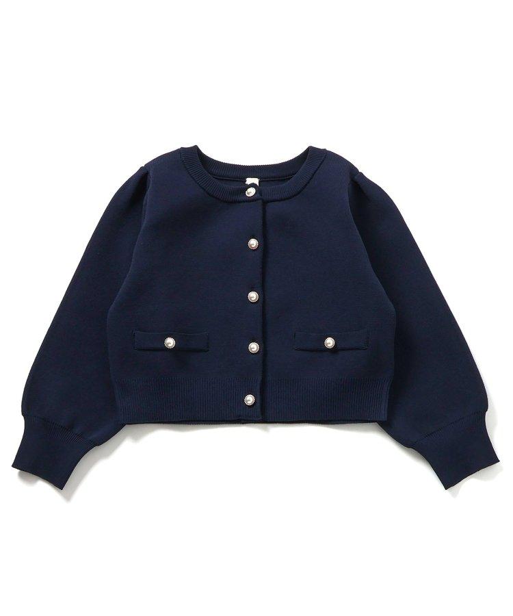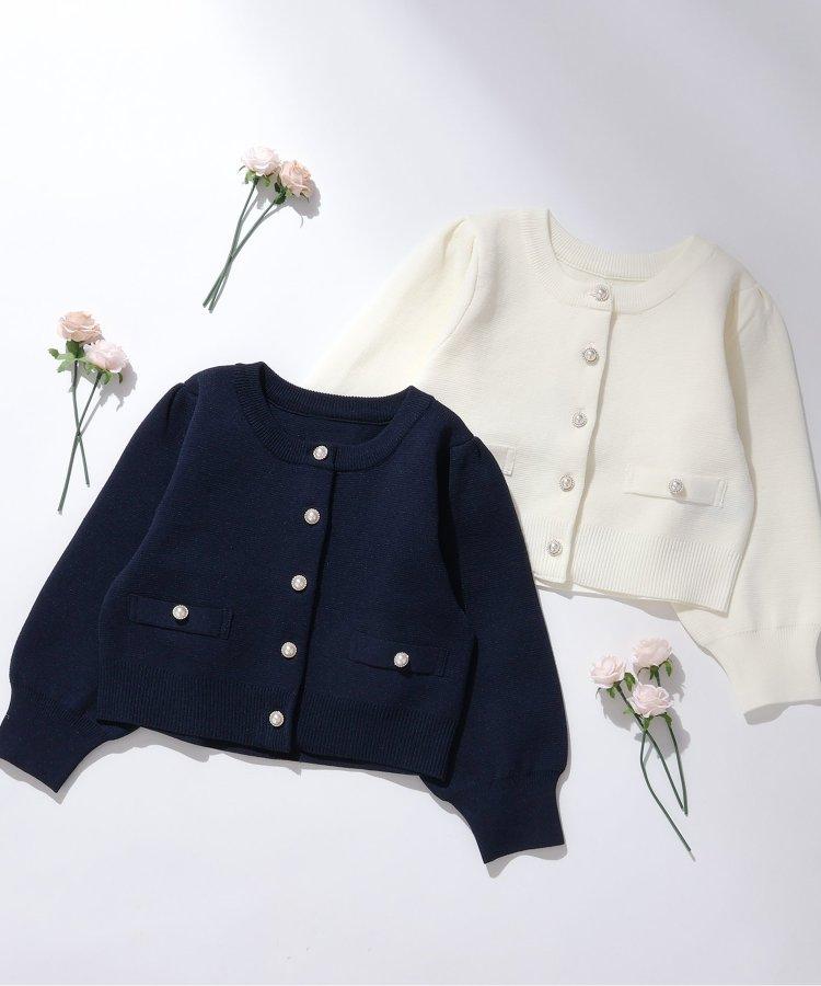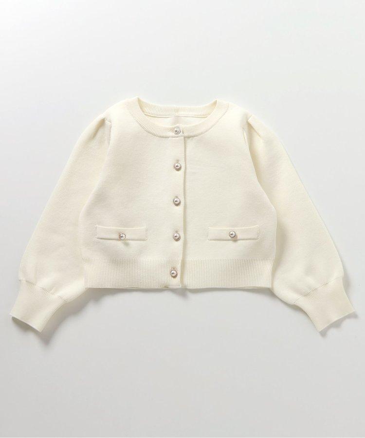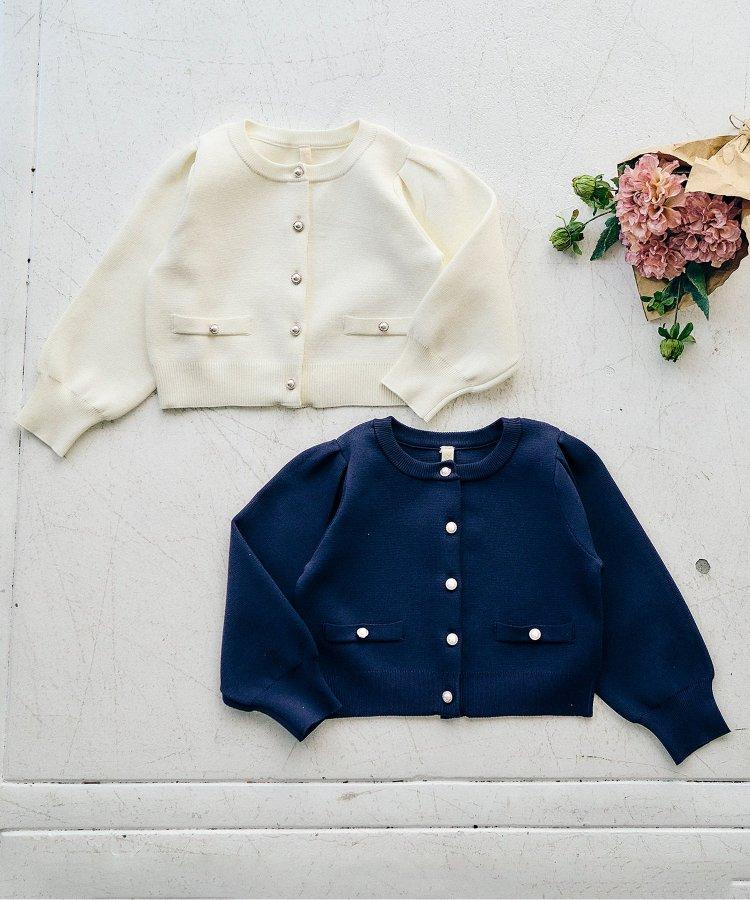 這款帶有珍珠鈕釦的淑女開襟羊毛衫袖子蓬鬆飄逸。