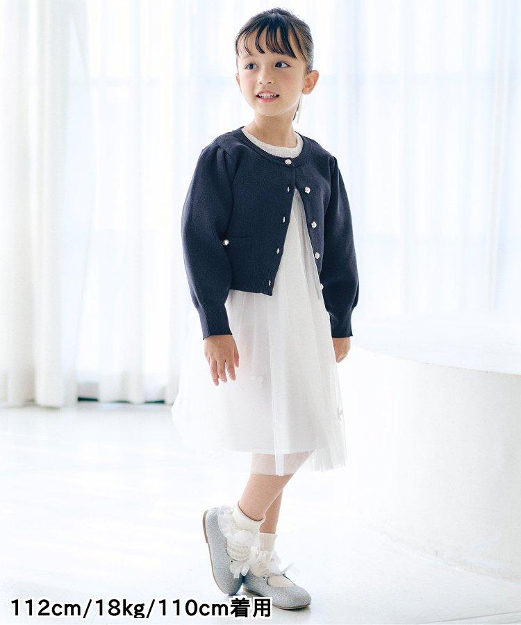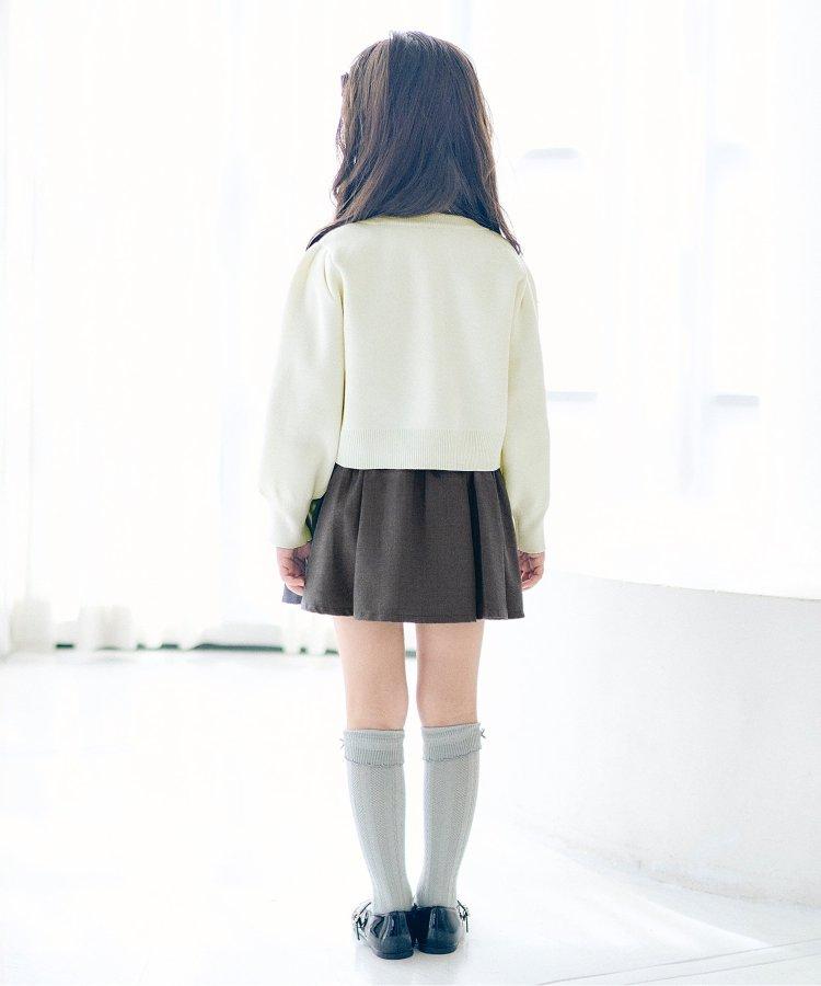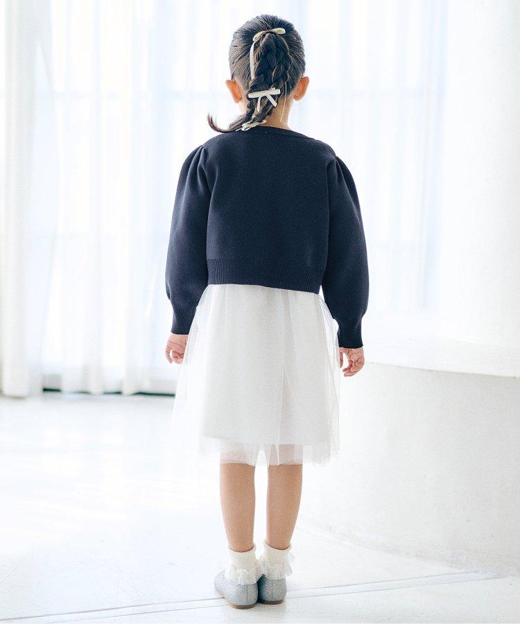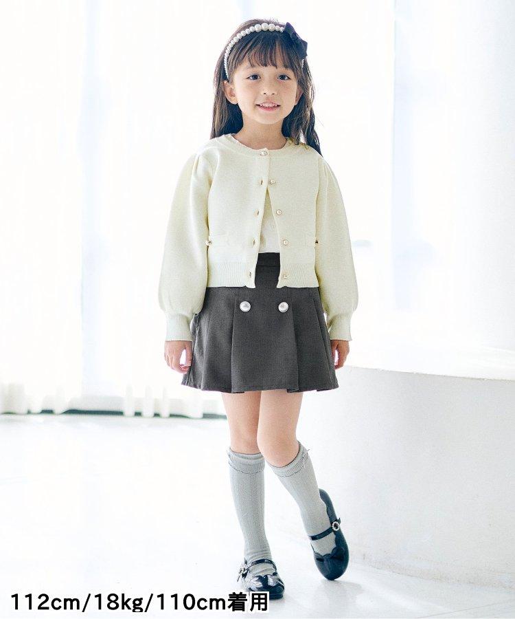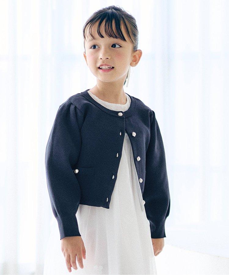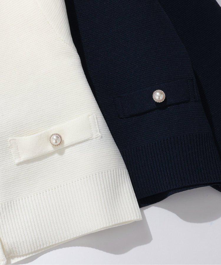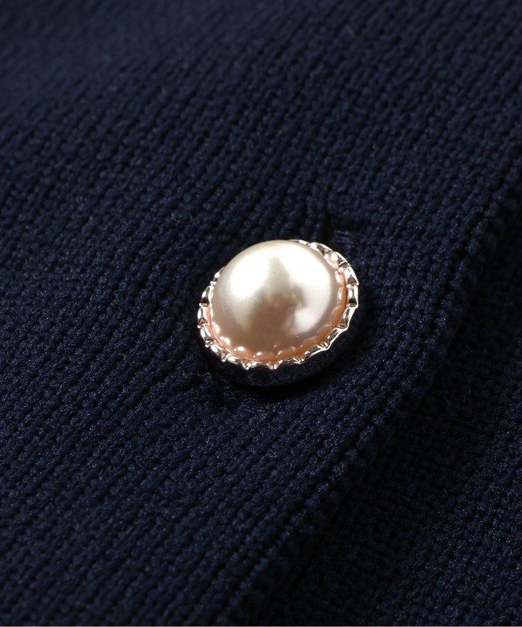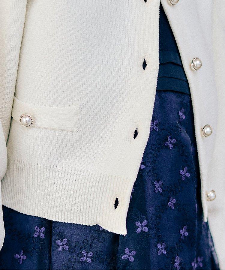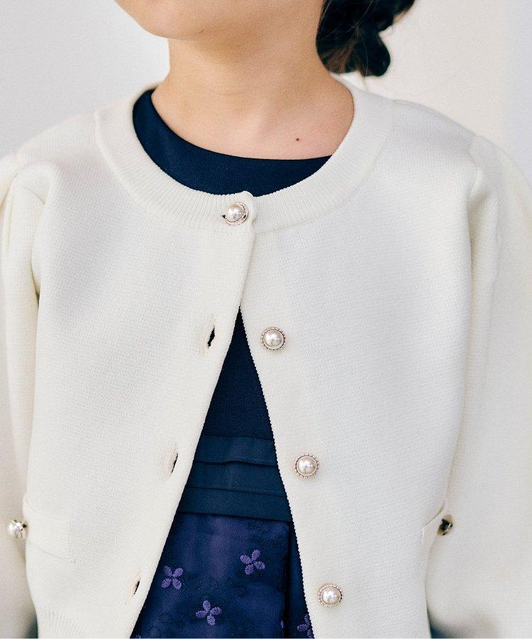 這款帶有珍珠鈕釦的淑女開襟羊毛衫袖子蓬鬆飄逸。