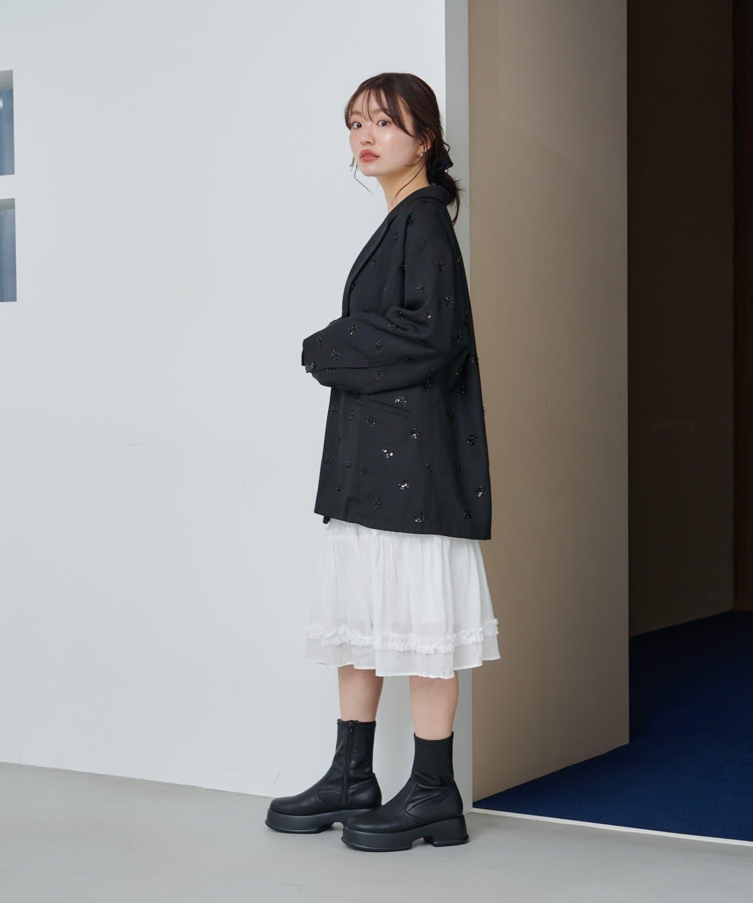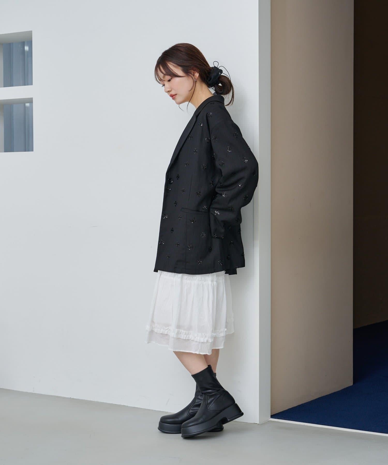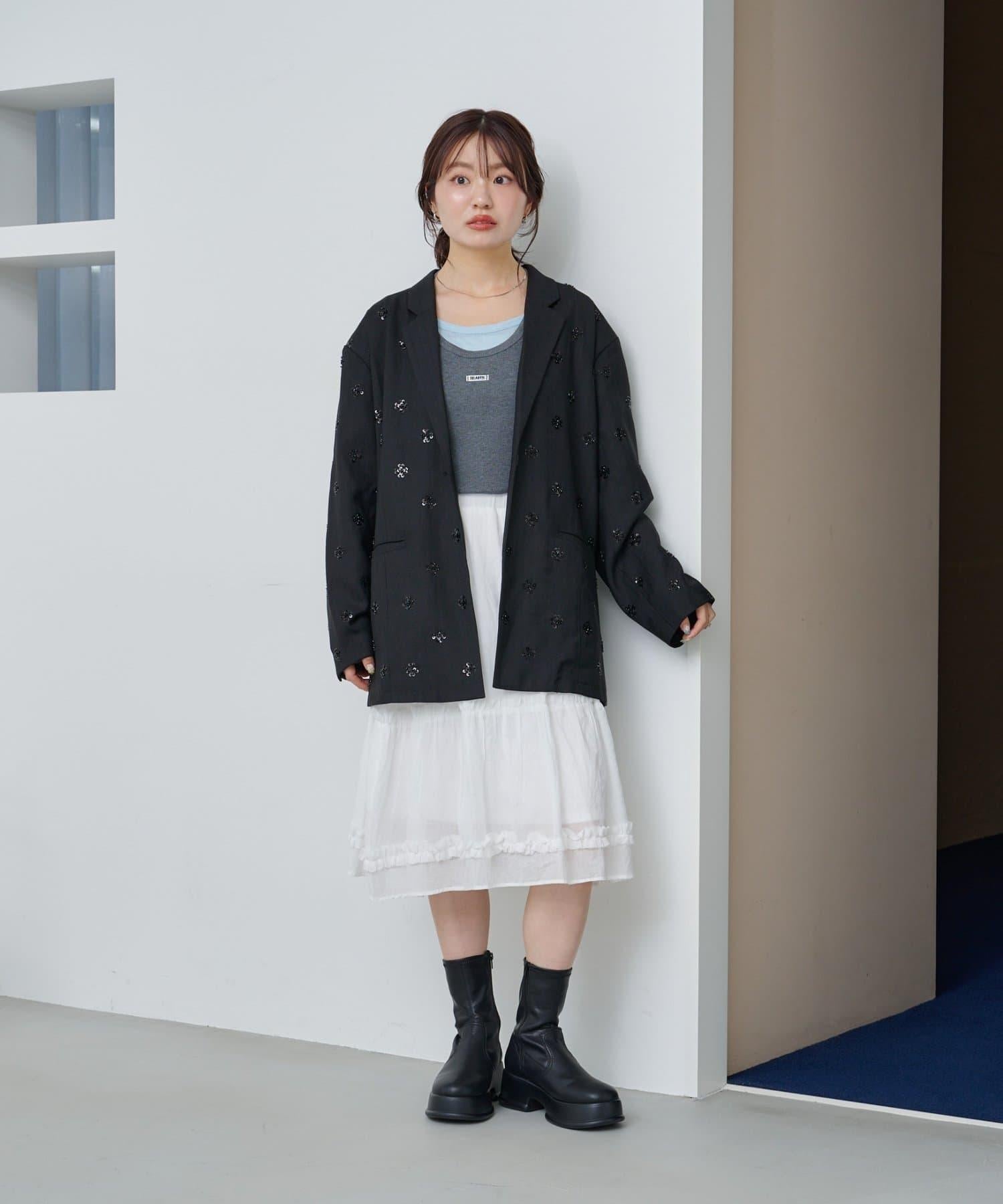 將它套在連衣裙外面,就能穿出連衣裙的感覺,因此也可用於偶爾場合。