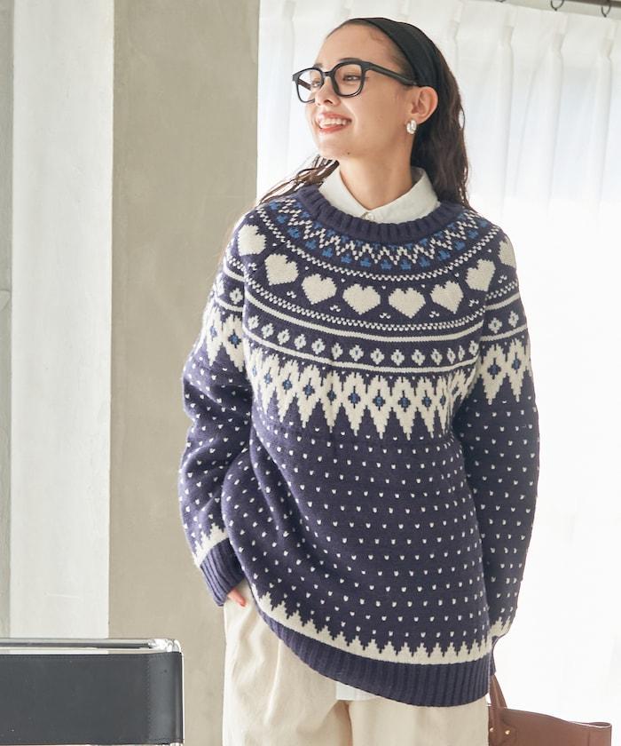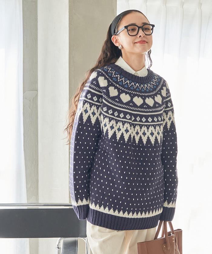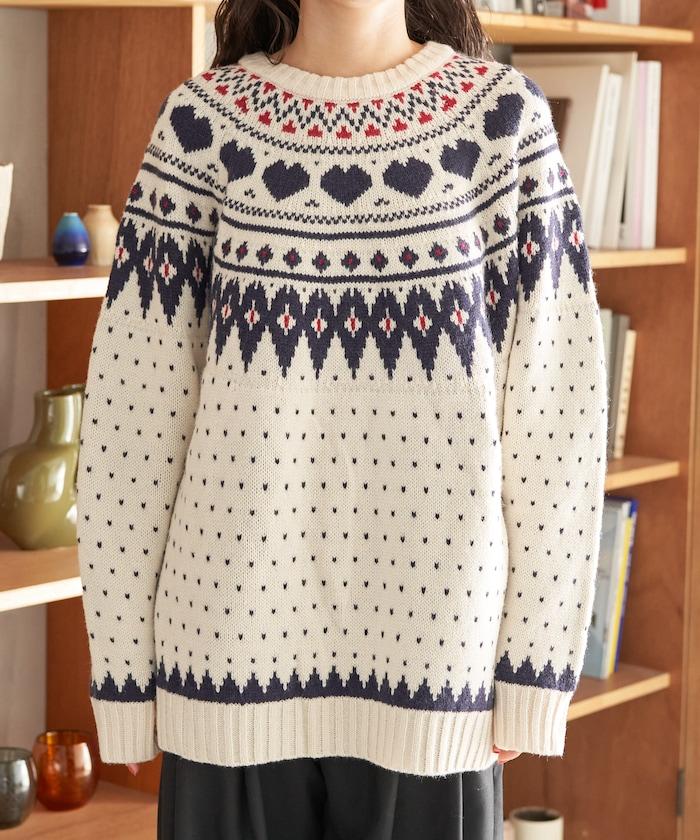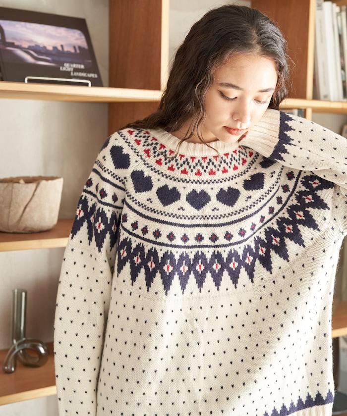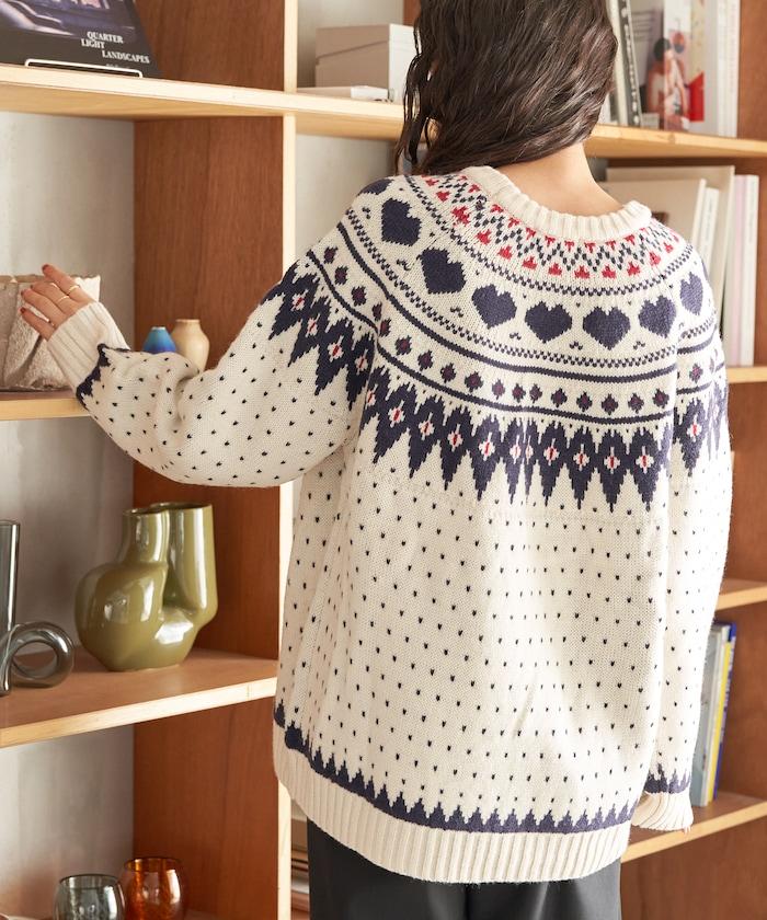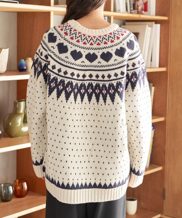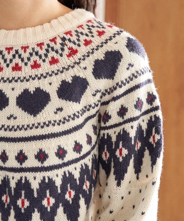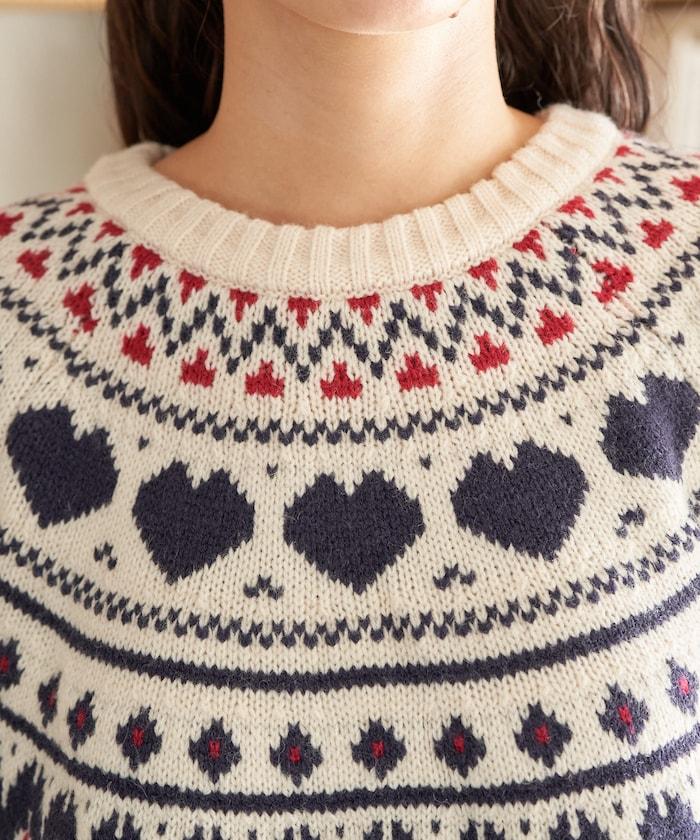 套頭針織衫採用經典設計 [費爾島] 心形圖案。