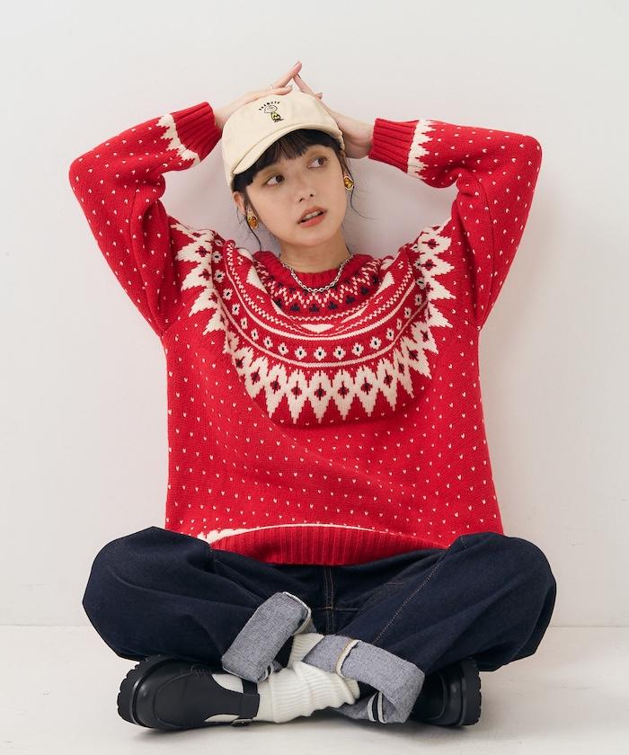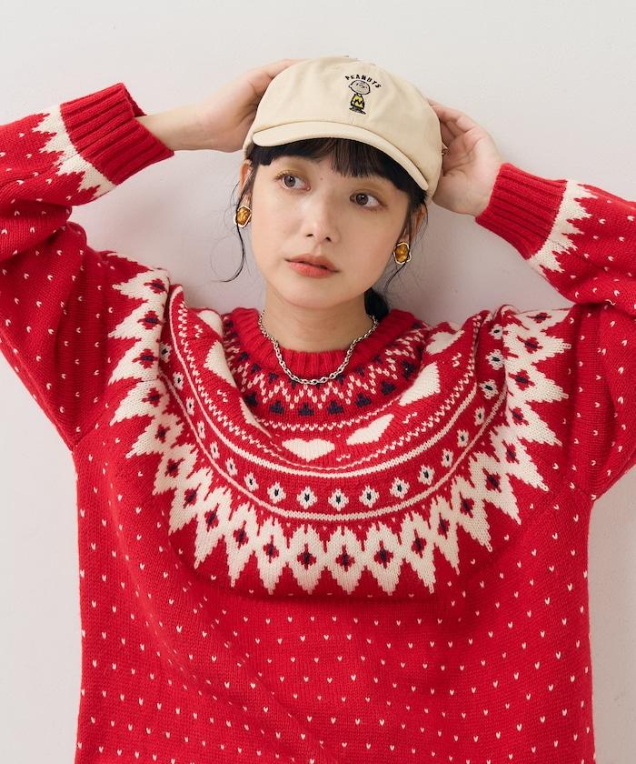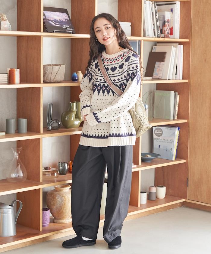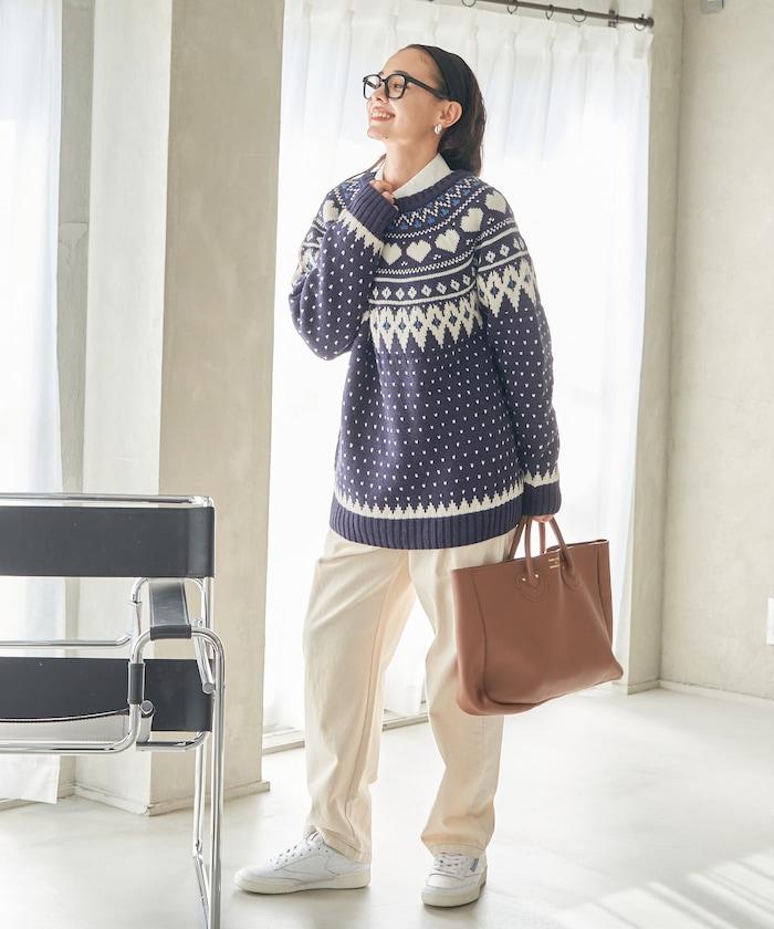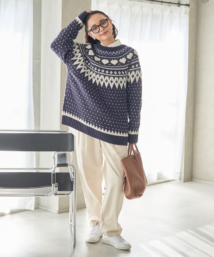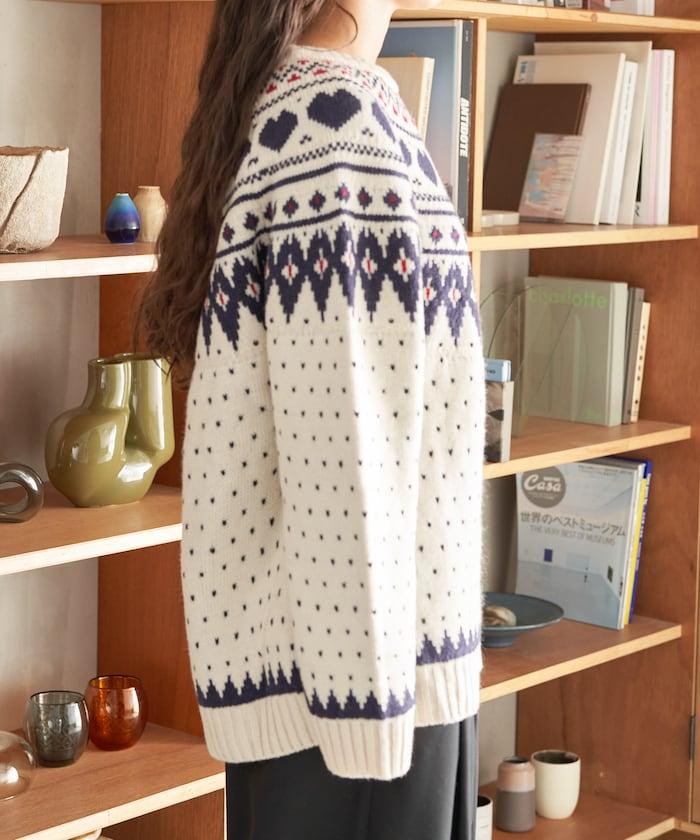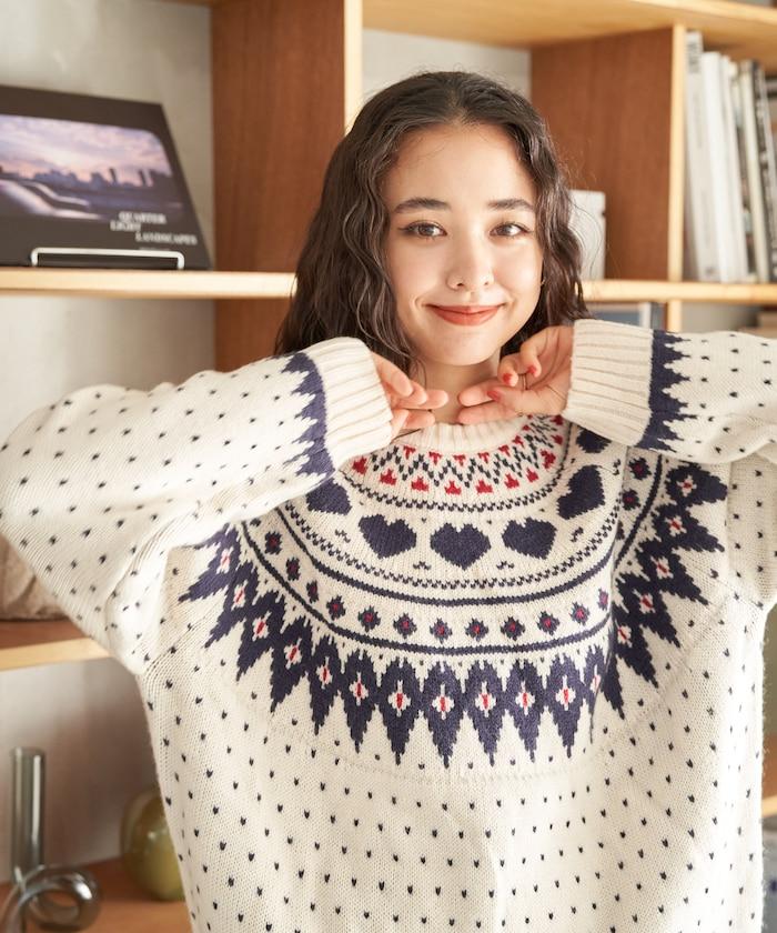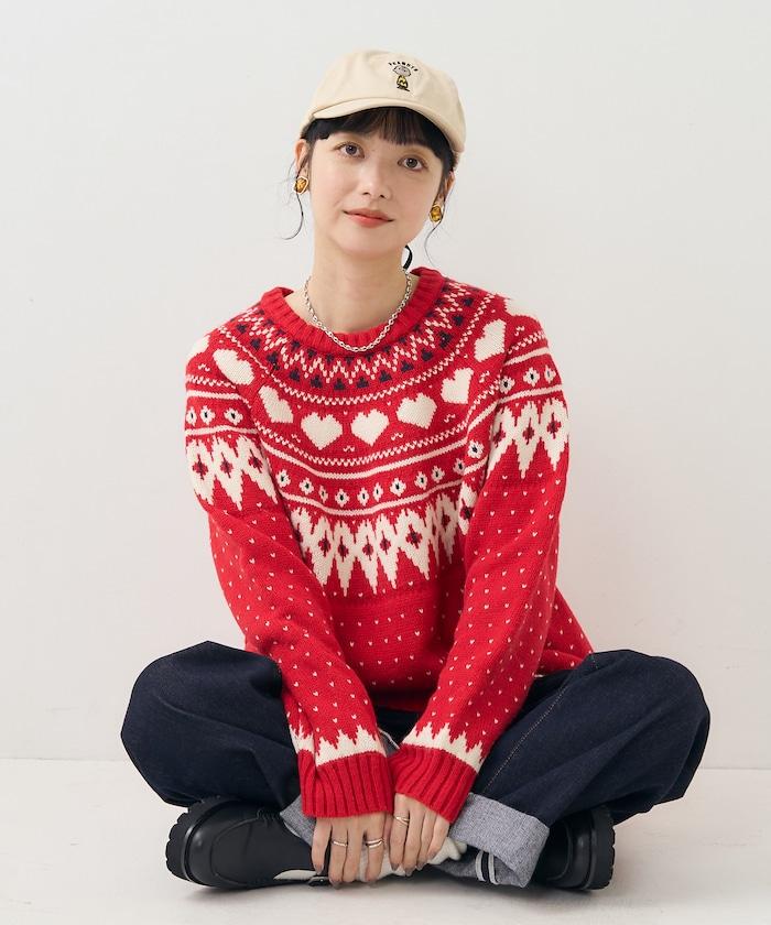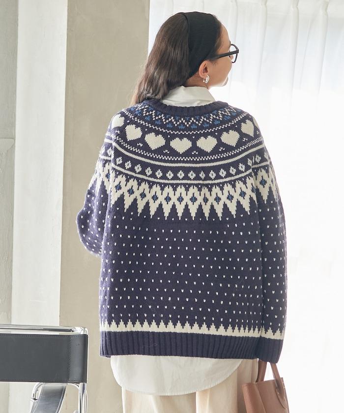 套頭針織衫採用經典設計 [費爾島] 心形圖案。