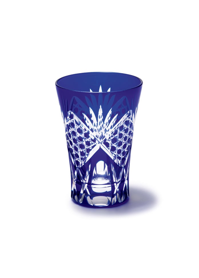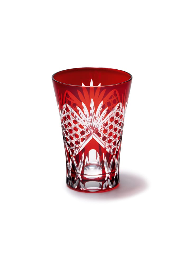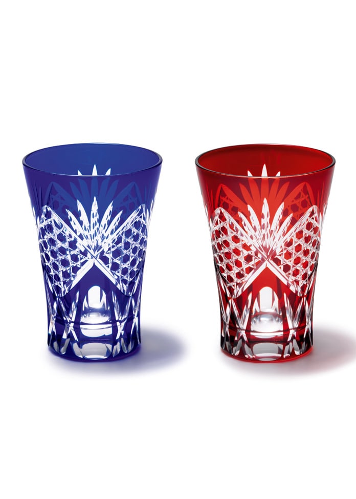 江戶刻面的製作方法是在透明玻璃上覆蓋一層薄薄的彩色玻璃,然後進行大膽的深度切割。通過切割這兩層玻璃,美麗的日本圖案,如麻葉、菊花和景泰藍就出現了。它有著悠久的歷史,自江戶時代早期以來,作為普通人的餐具一直很受歡迎。 六角形的籃子圖案起源於竹籃的編織。它是一種傳統的設計,保留了江戶時代的強烈痕跡。