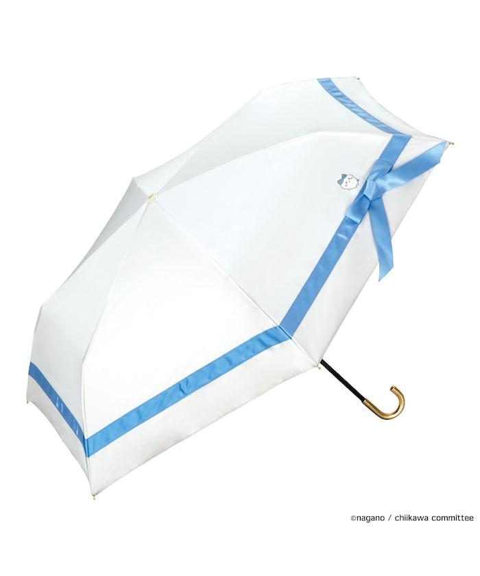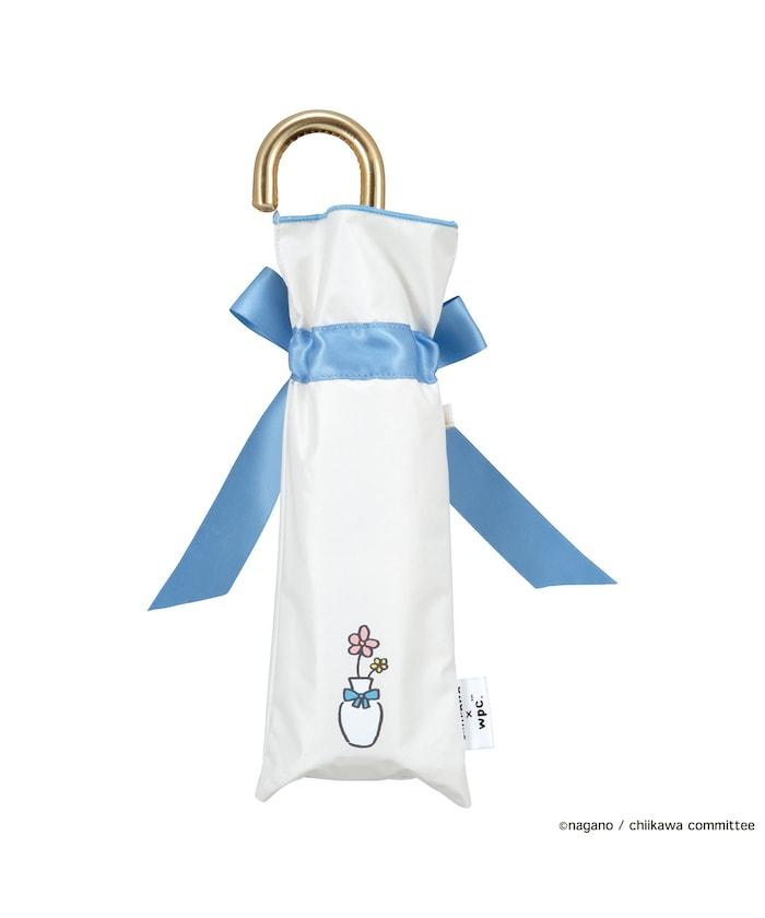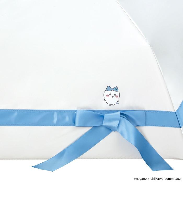 陽傘本身的插圖是耳朵上繫著絲帶的小八,而收納袋上的絲帶上又繫著兩條絲帶。