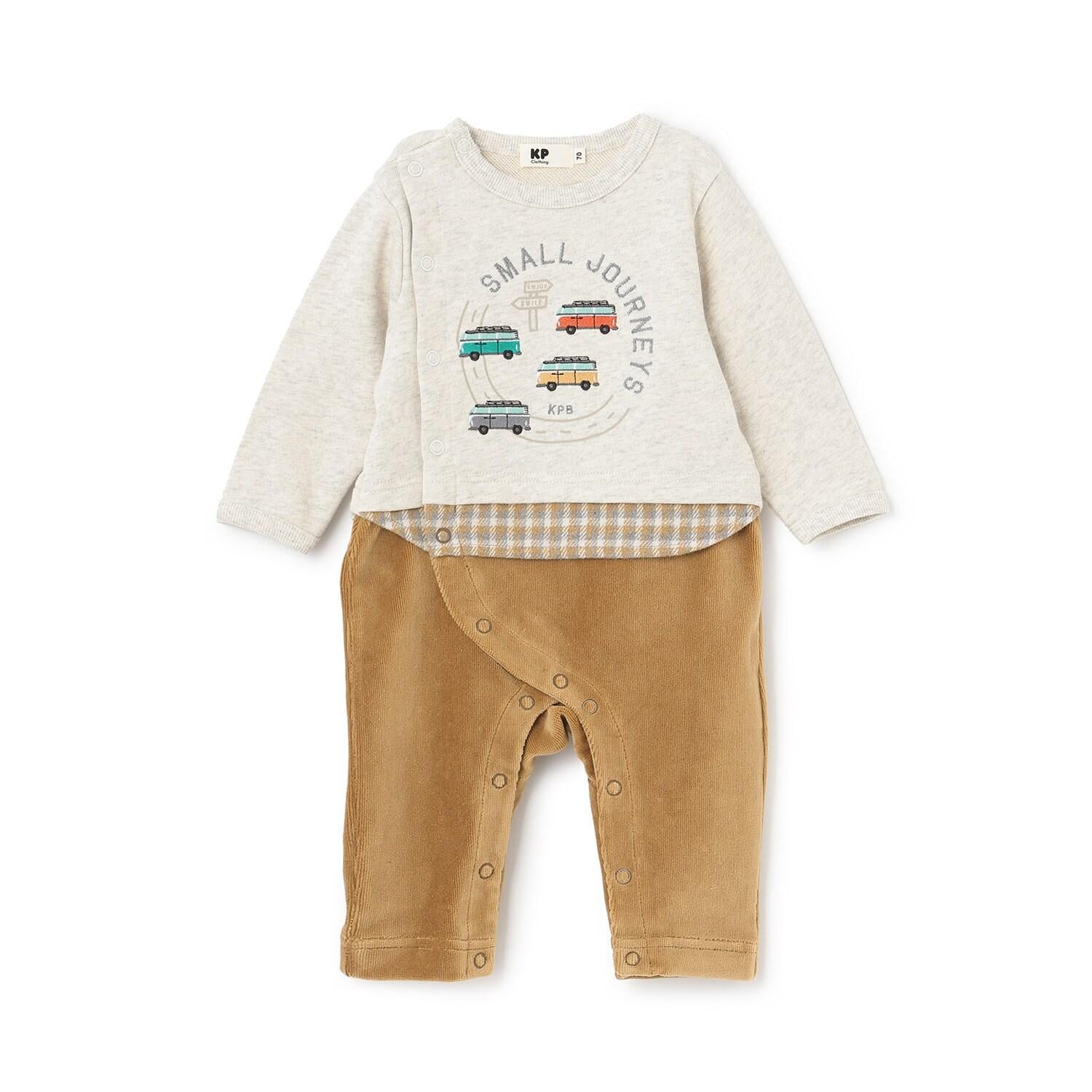 汽車刺繡衛衣布拼接燈芯絨連體衣