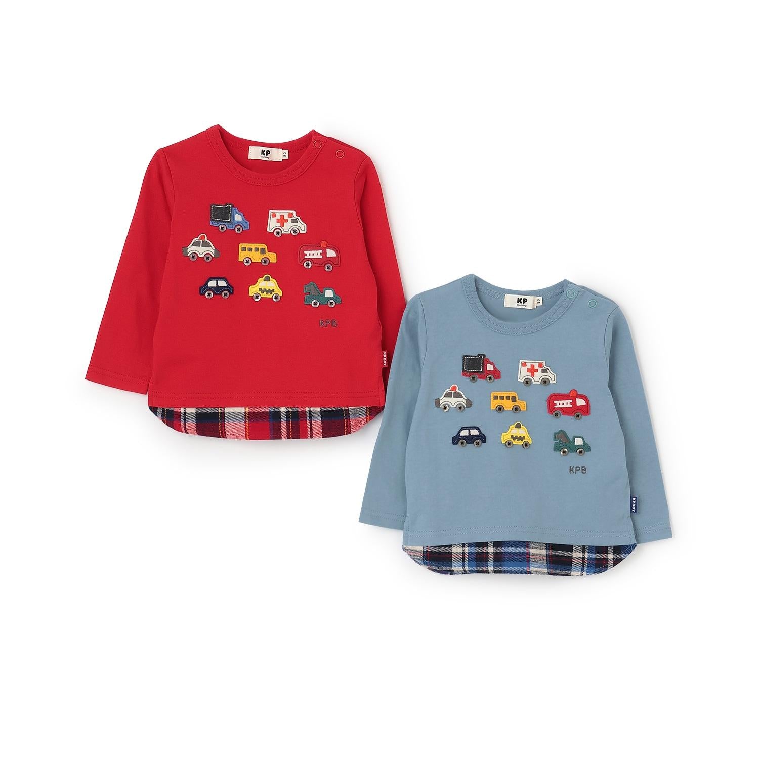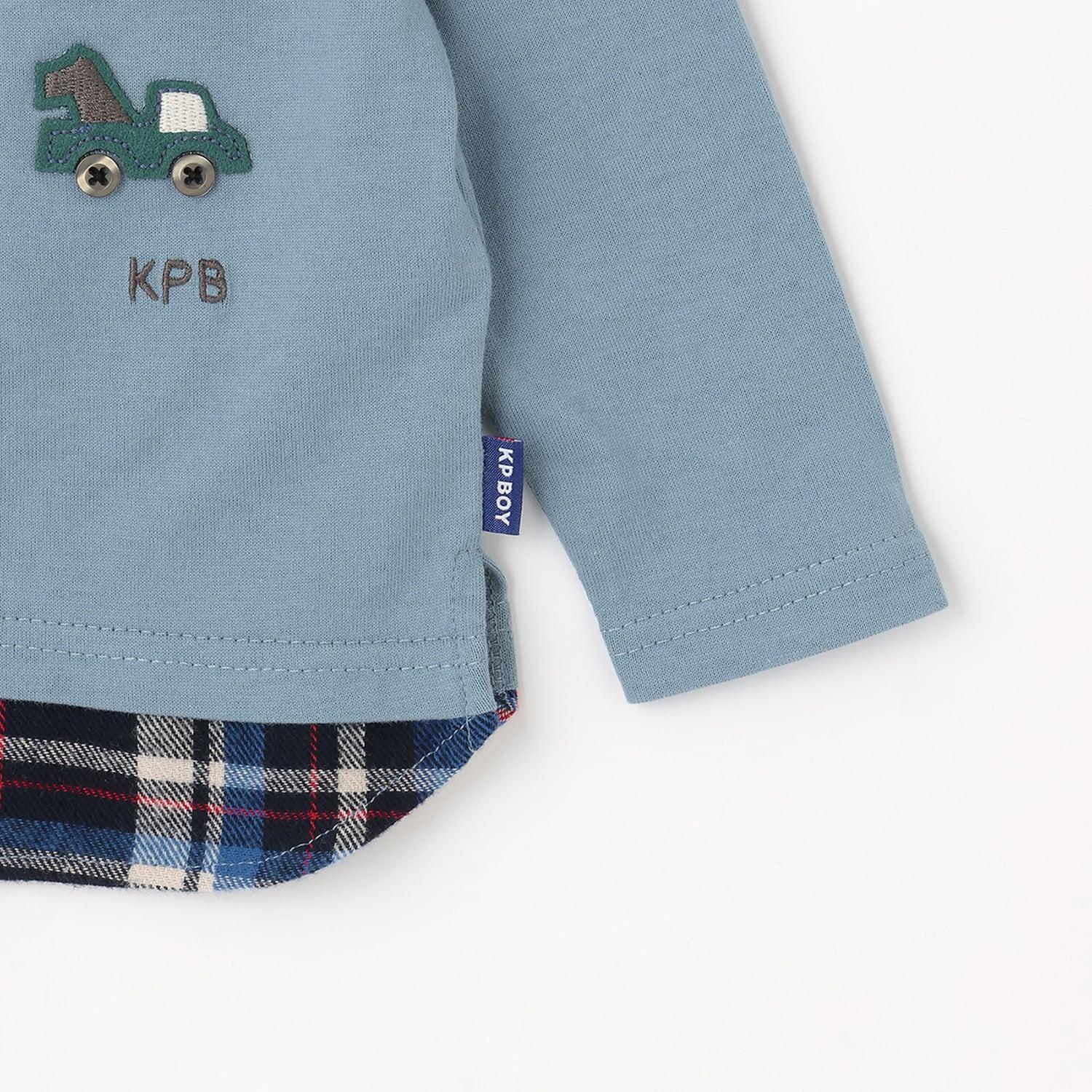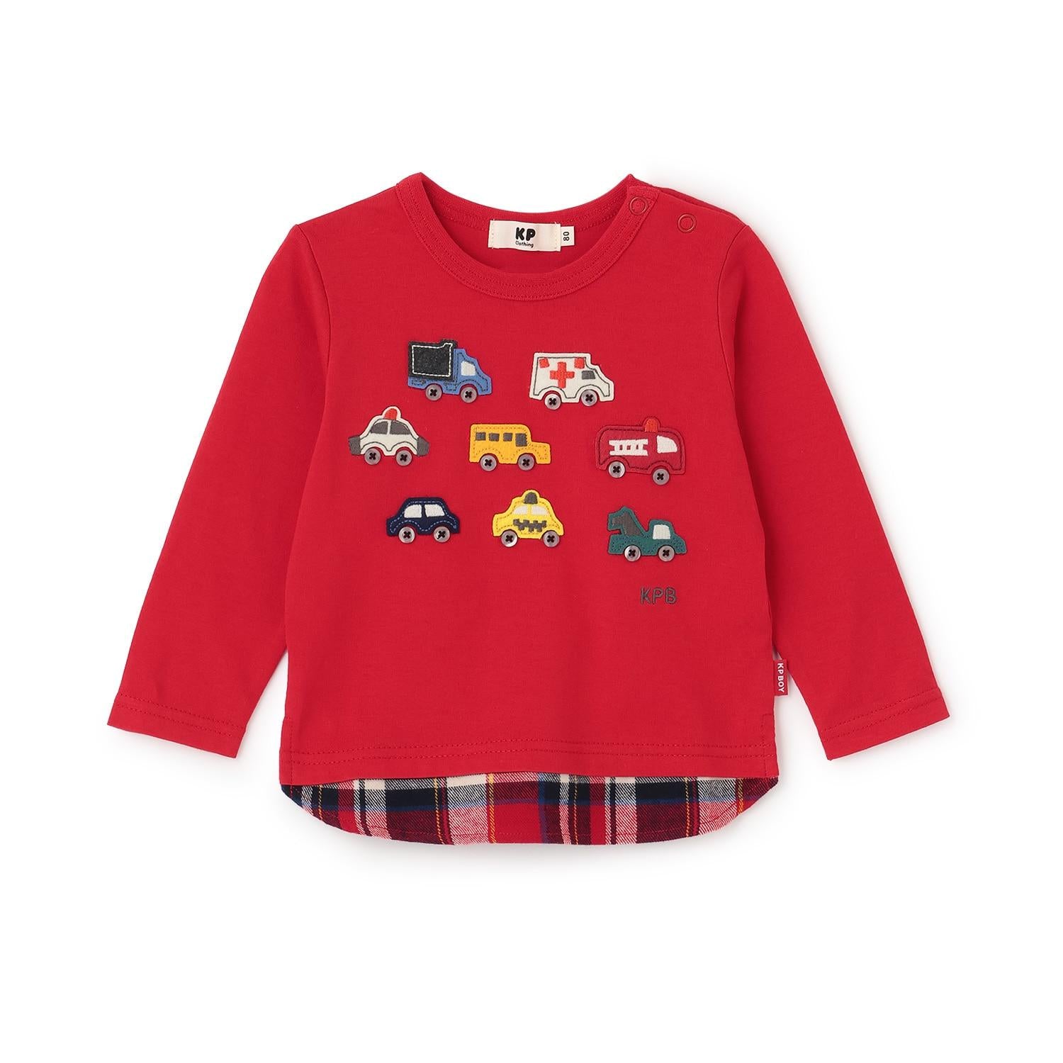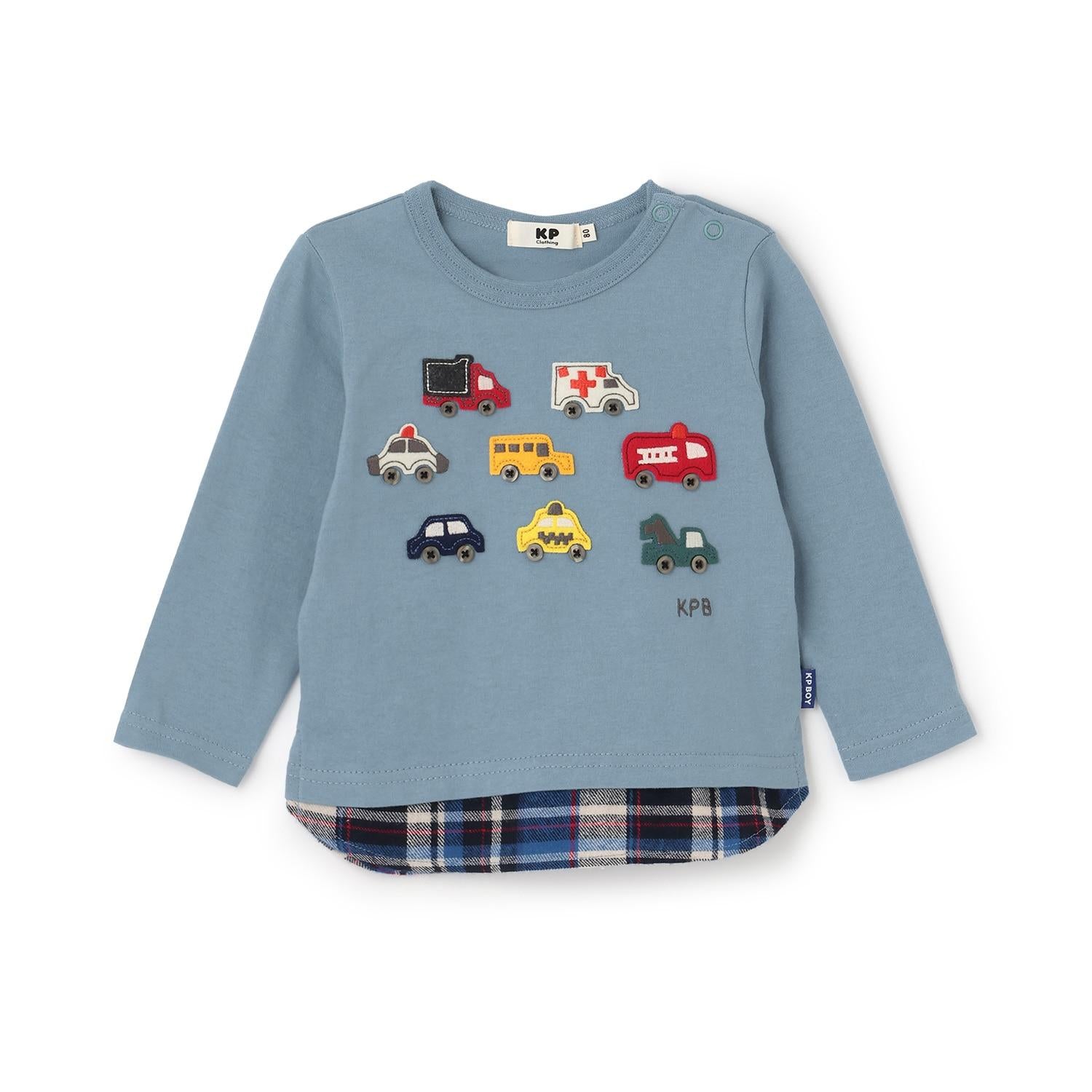 汽車貼布繡×下襬格紋長袖T恤