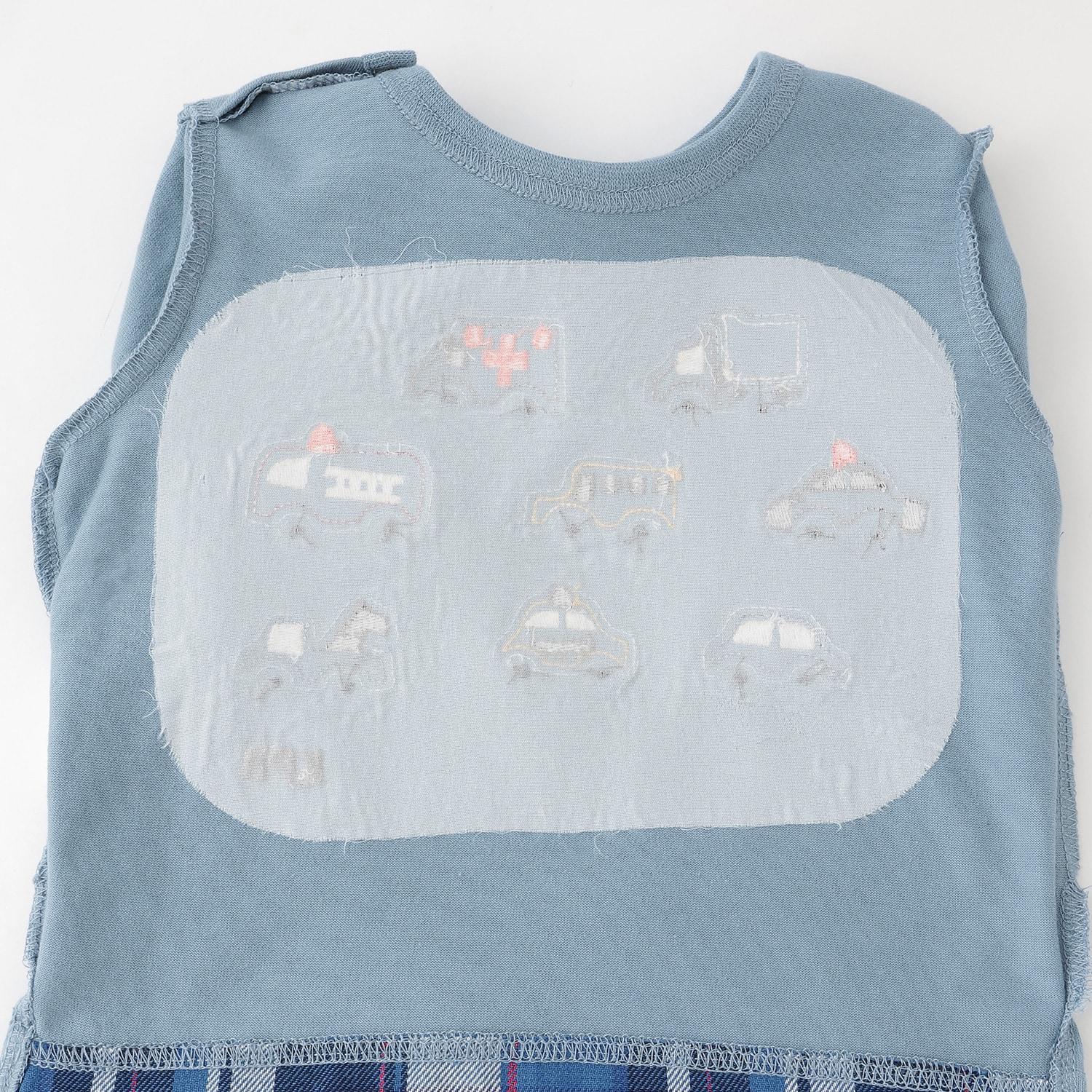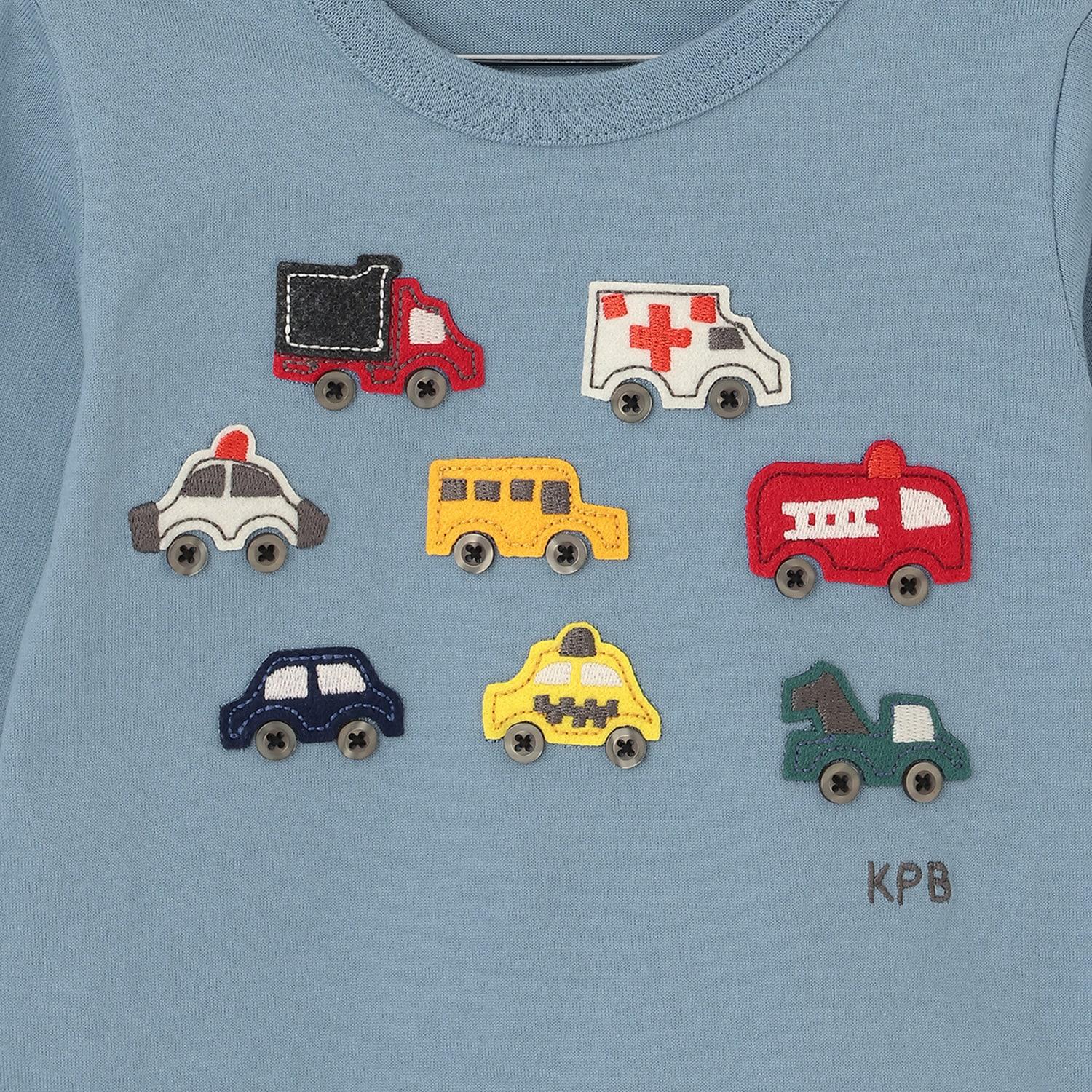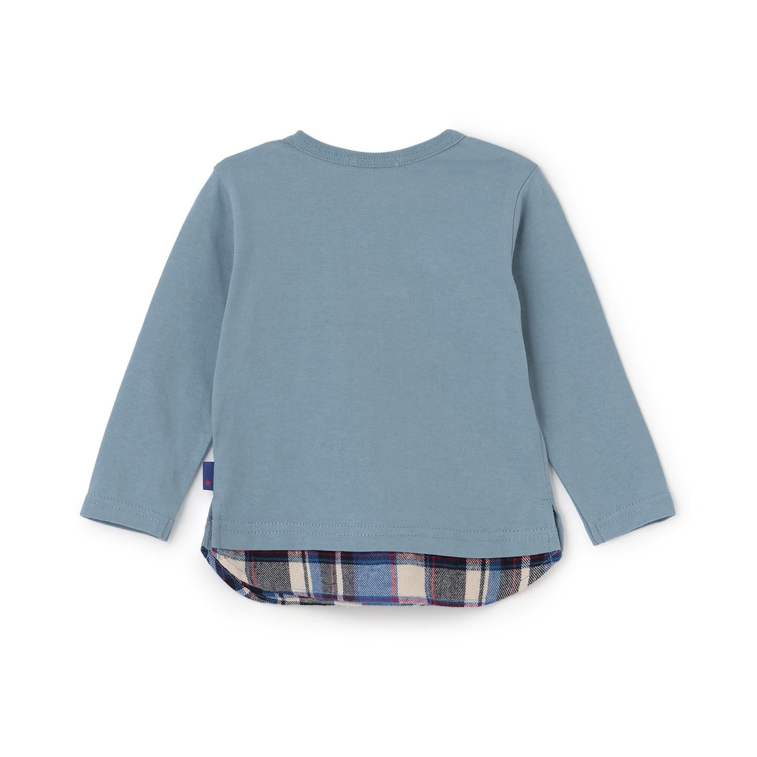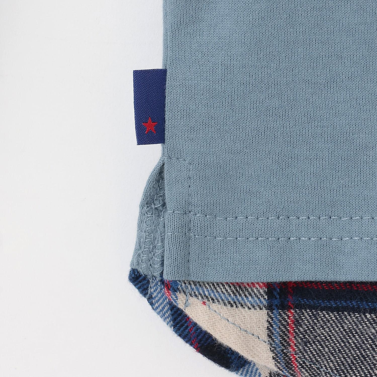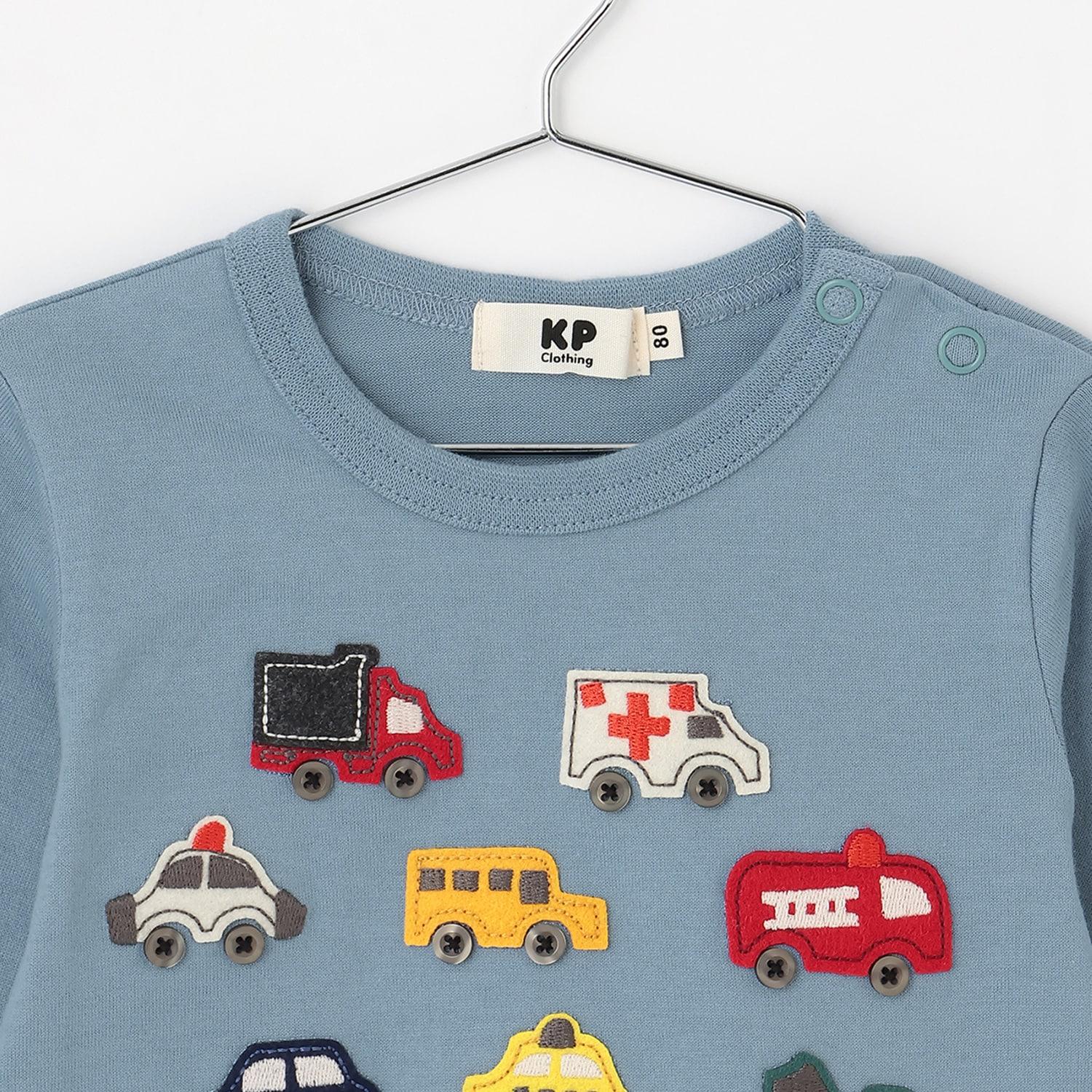 汽車貼布繡×下襬格紋長袖T恤
