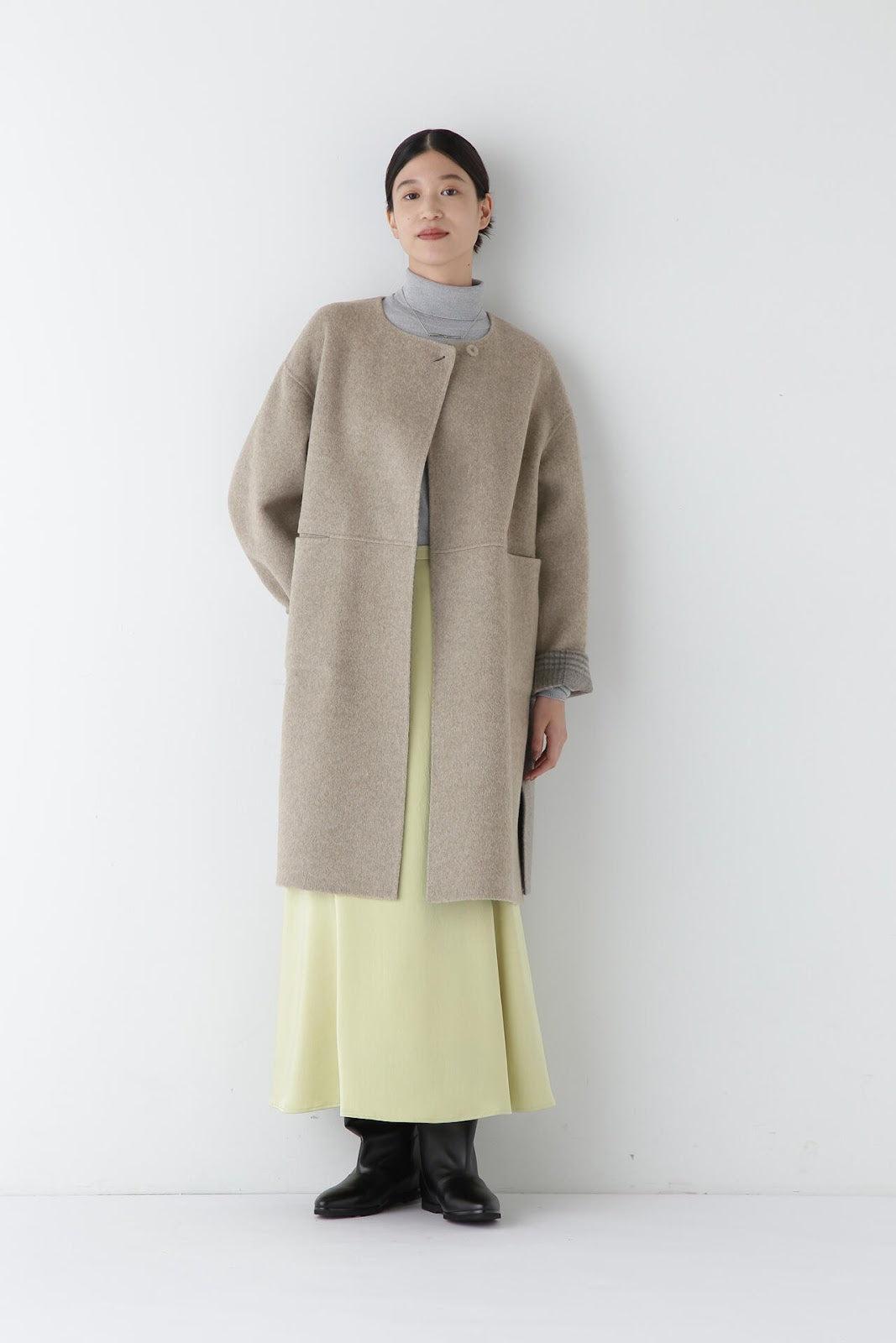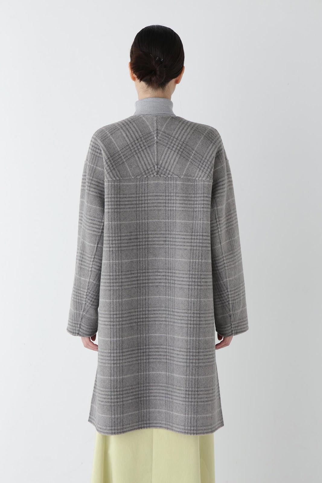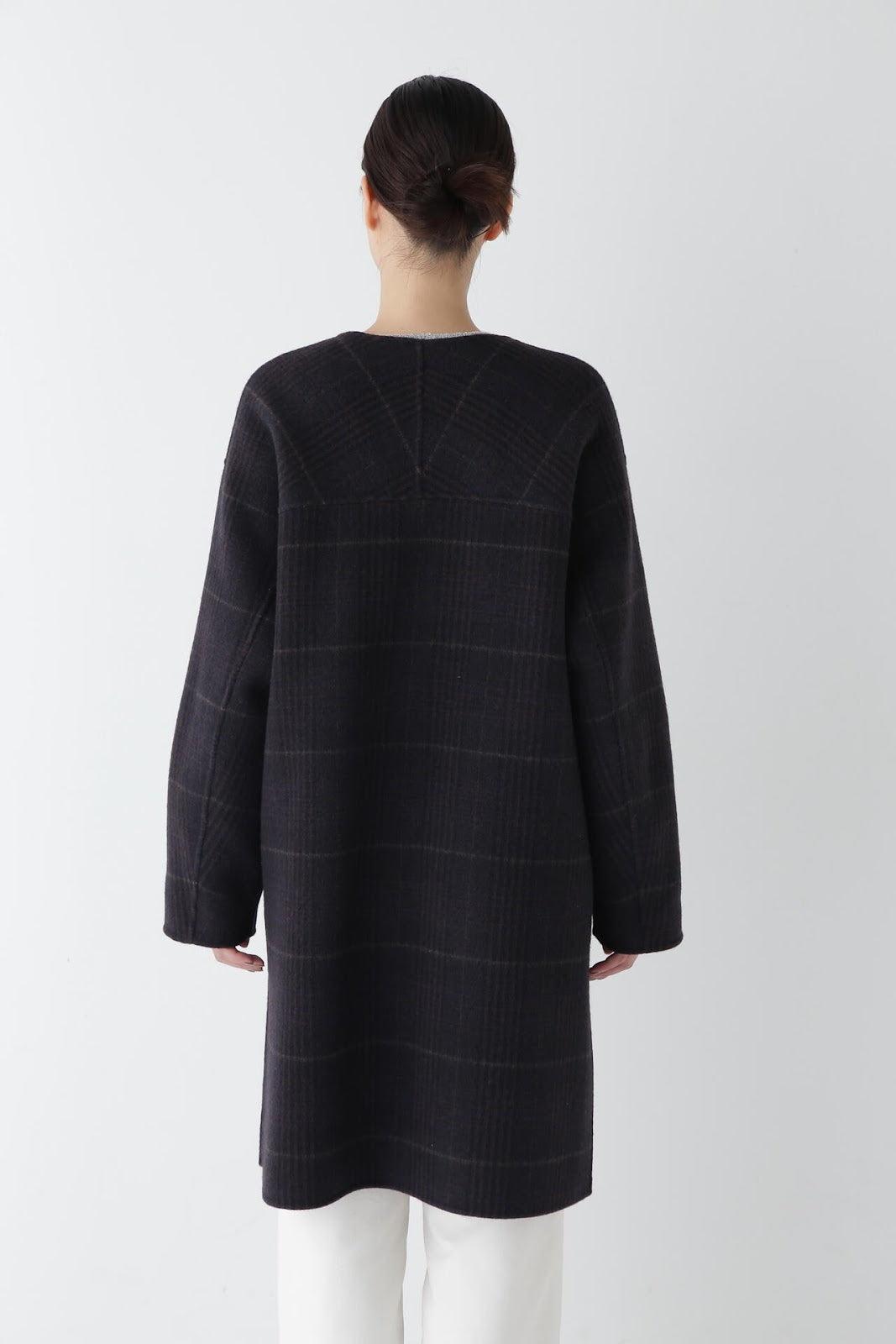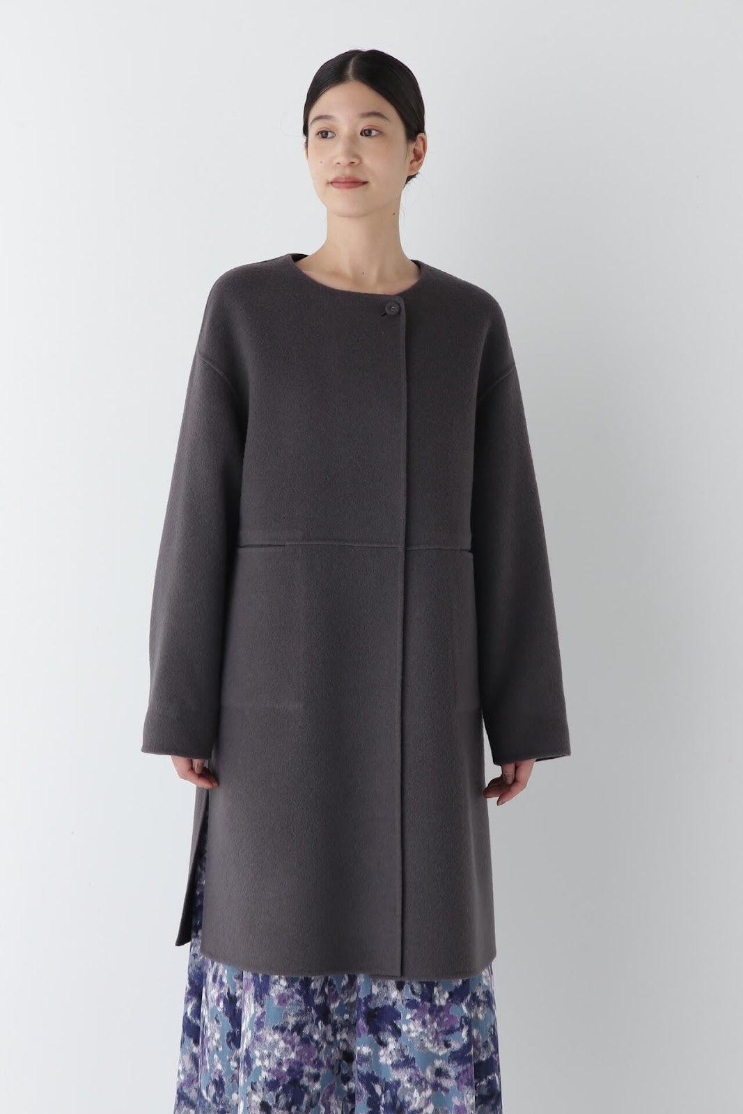 用標準優質材料量身定製的河邊大衣 [設計特色] 這是一款人類女性標準優質河邊大衣。本季採用方領無領款式,前緣寬大。由於採用了完全可翻轉的縫製和可翻轉的規格,因此可以將兩側朝外穿著。重點還在於通過剝離塔夫綢加工而成的鴿子孔胡桃木紐扣。面料由雙面凸起的梅爾頓製成,帶有優雅的毛皮。本季增加了紋路,以延長穿著時間。一面為原色格倫格子。推薦座標】奢華的反縫剪裁,只需穿上它,就能彰顯高貴氣質。無論在線上還是線下,它都能活躍起來。雙面設計可讓您根據心情享受不同的印象。