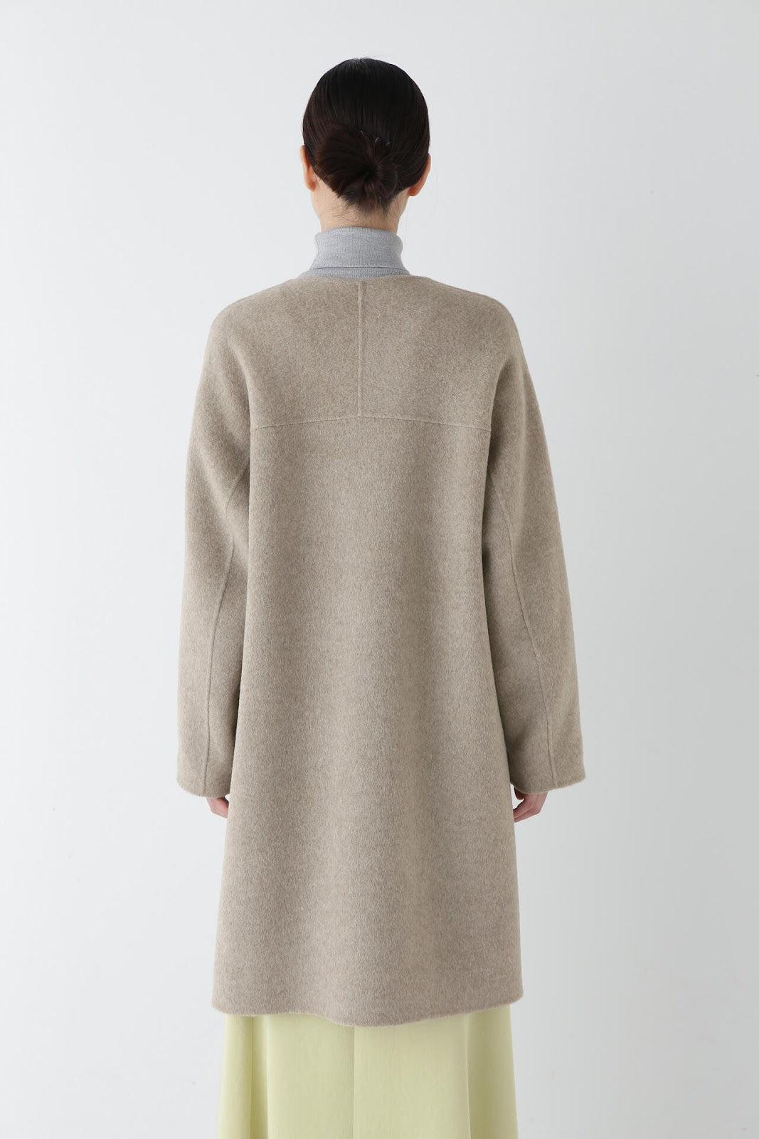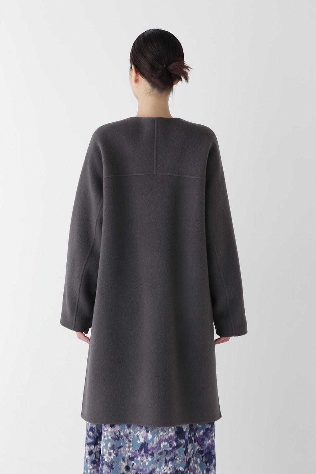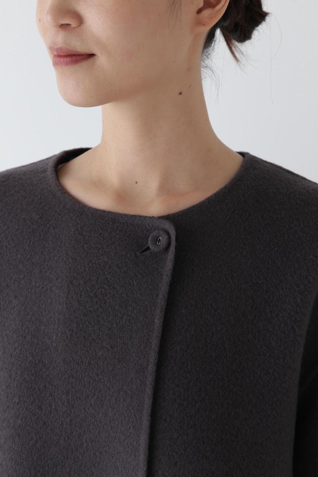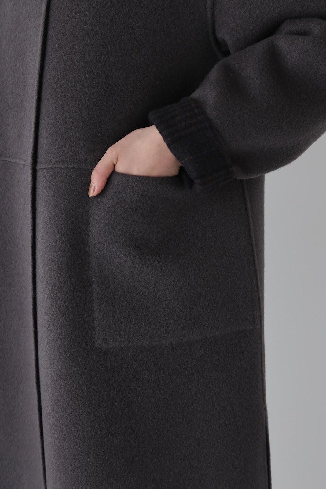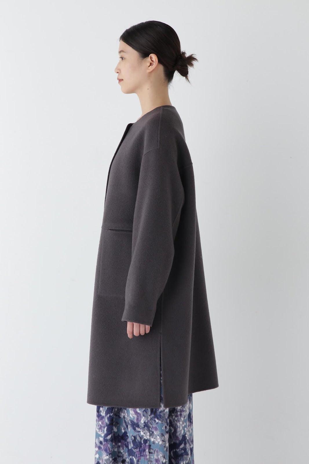 用標準優質材料量身定製的河邊大衣 [設計特色] 這是一款人類女性標準優質河邊大衣。本季採用方領無領款式,前緣寬大。由於採用了完全可翻轉的縫製和可翻轉的規格,因此可以將兩側朝外穿著。重點還在於通過剝離塔夫綢加工而成的鴿子孔胡桃木紐扣。面料由雙面凸起的梅爾頓製成,帶有優雅的毛皮。本季增加了紋路,以延長穿著時間。一面為原色格倫格子。推薦座標】奢華的反縫剪裁,只需穿上它,就能彰顯高貴氣質。無論在線上還是線下,它都能活躍起來。雙面設計可讓您根據心情享受不同的印象。