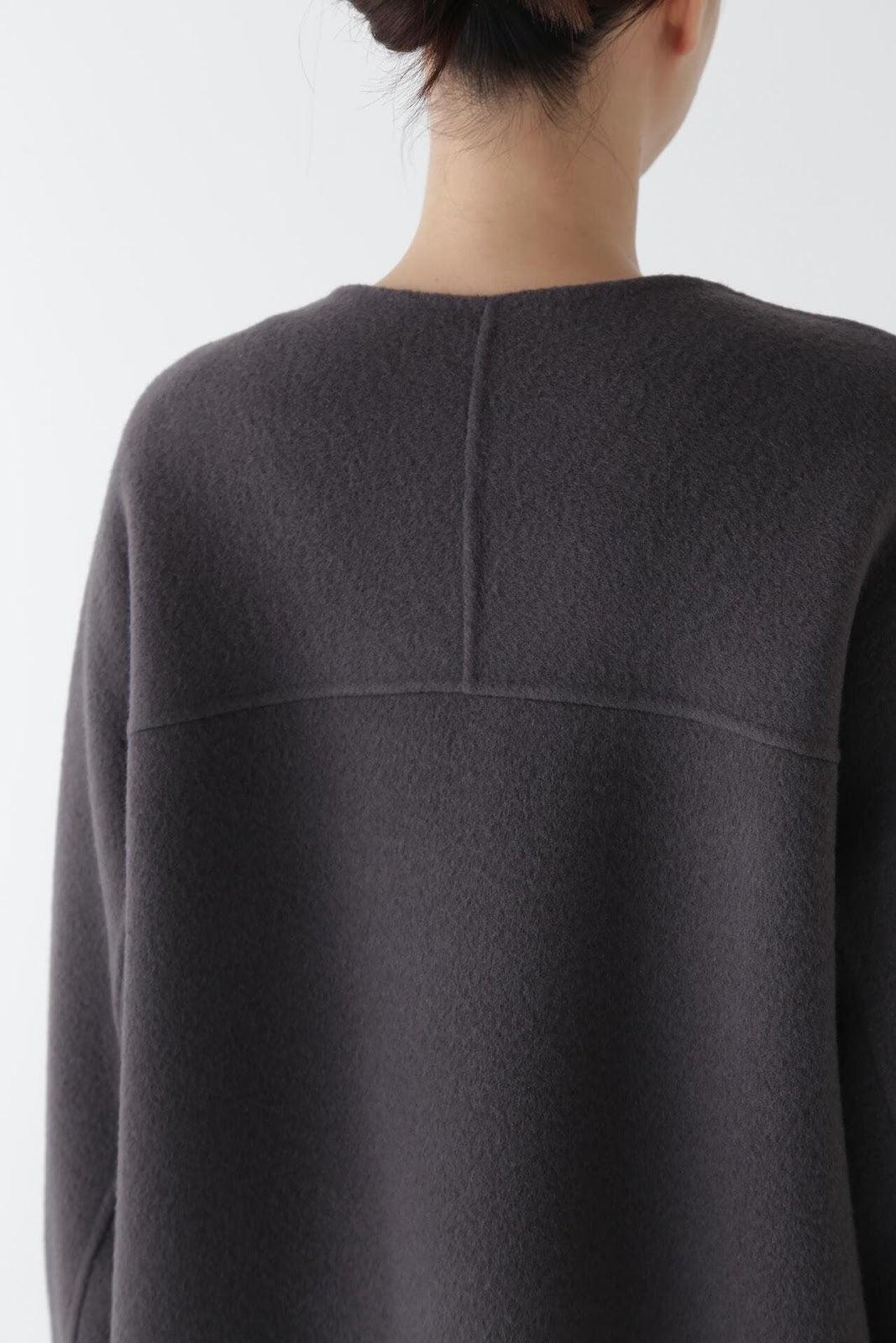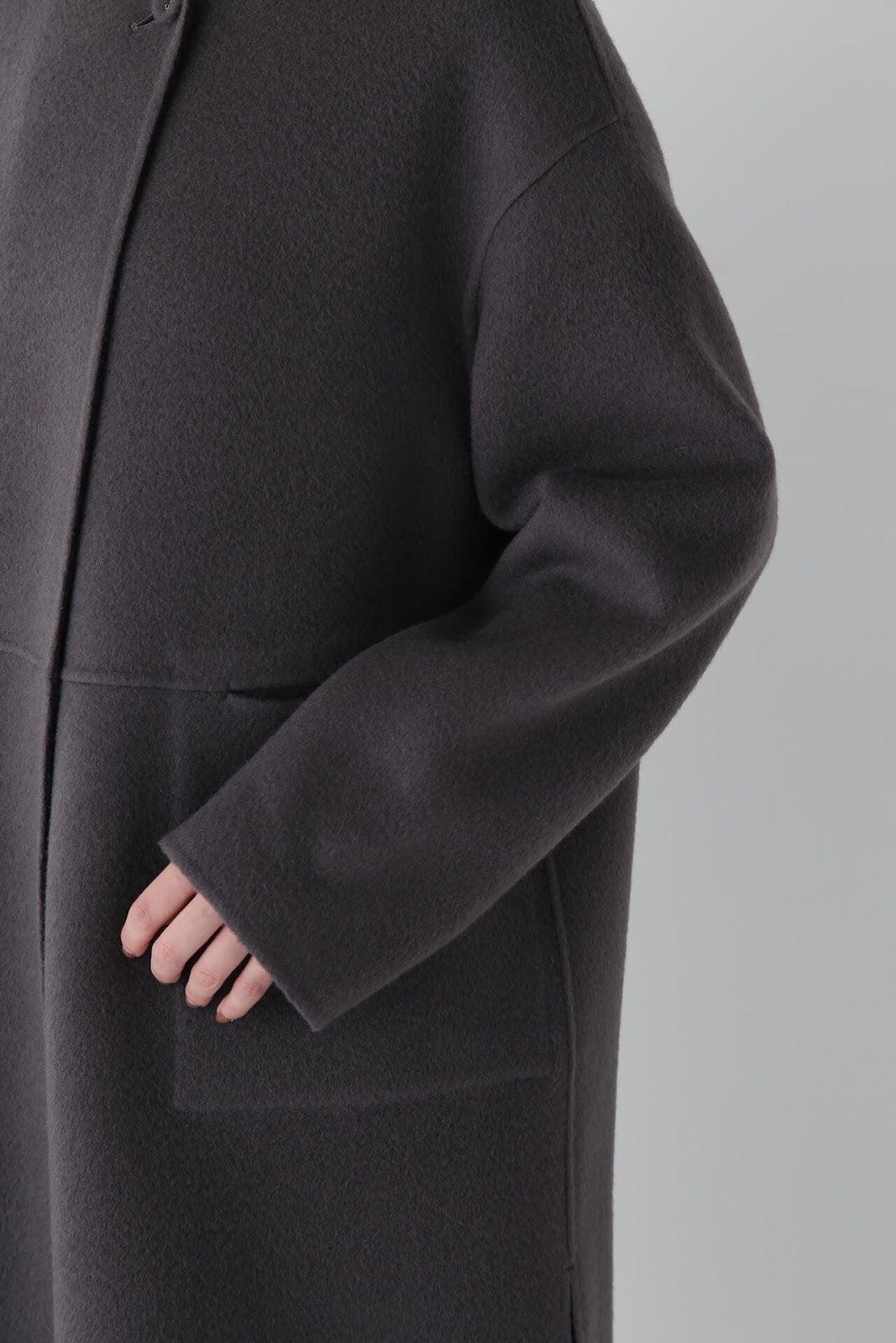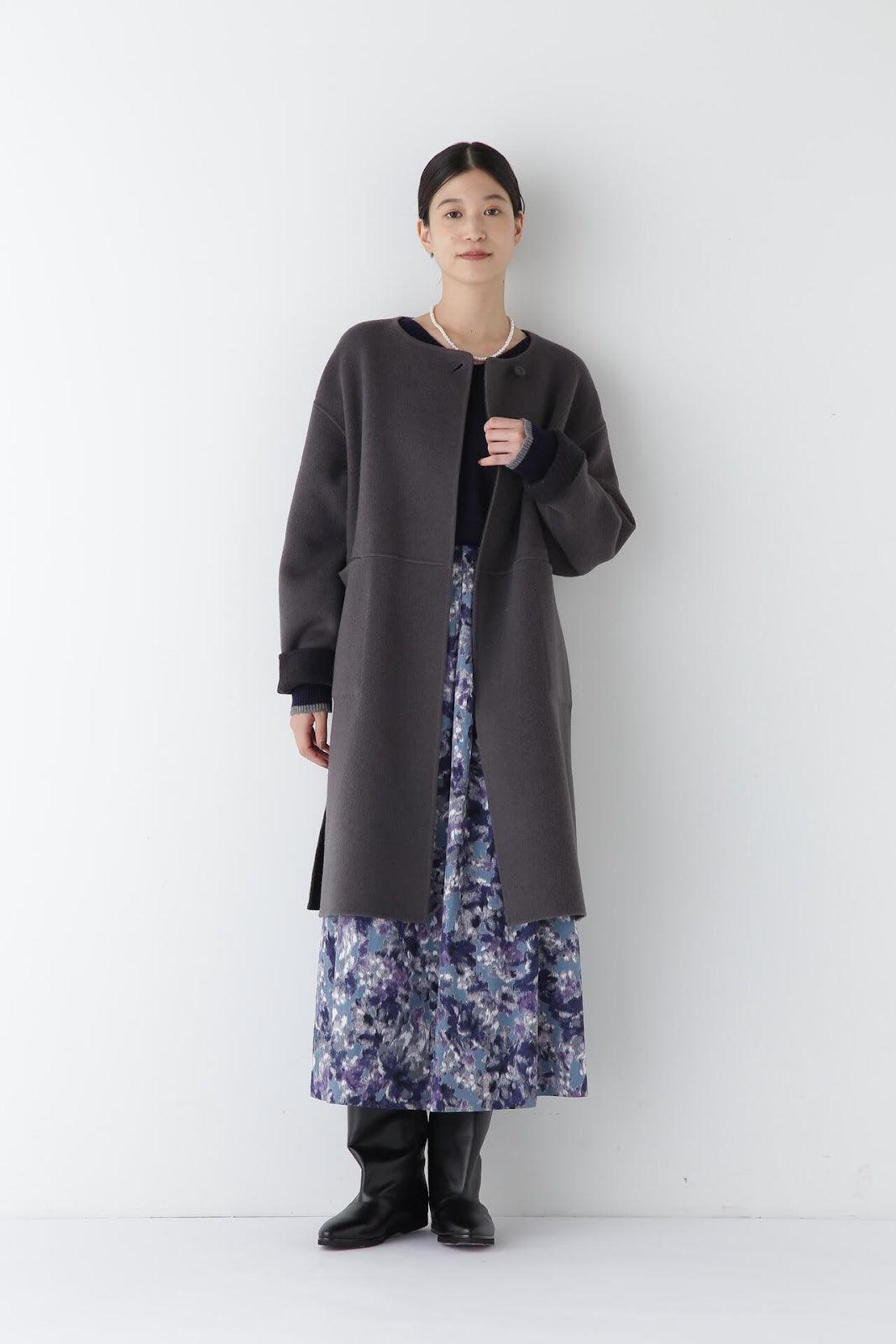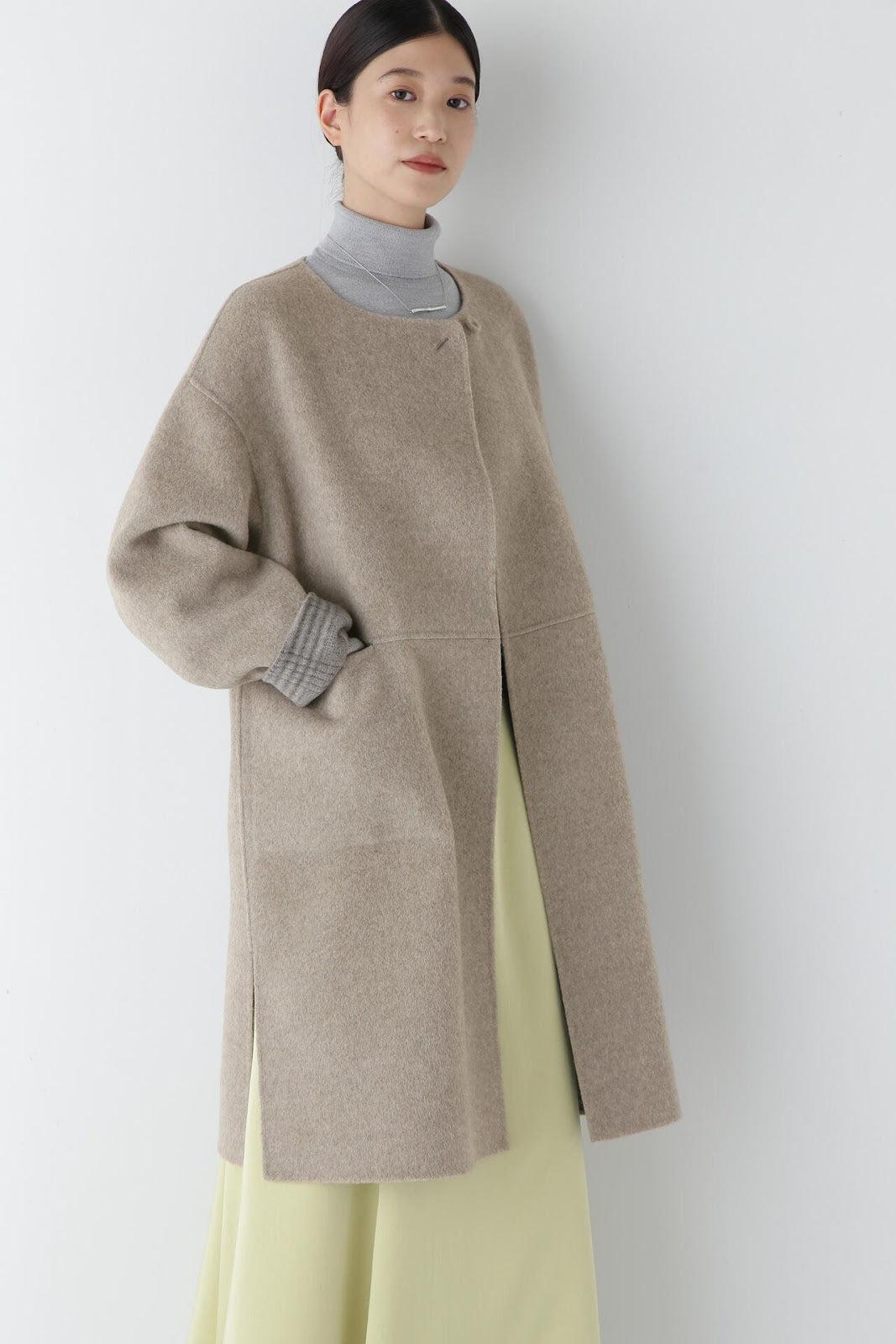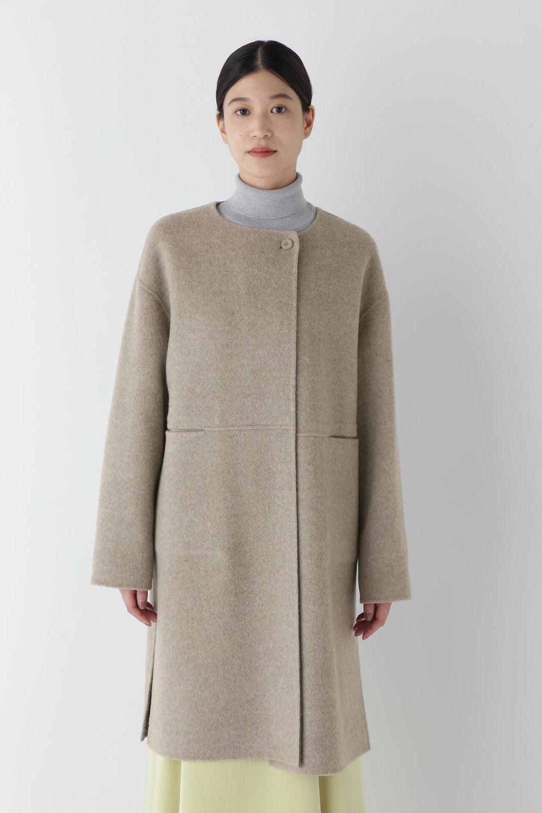 用標準優質材料量身定製的河邊大衣 [設計特色] 這是一款人類女性標準優質河邊大衣。本季採用方領無領款式,前緣寬大。由於採用了完全可翻轉的縫製和可翻轉的規格,因此可以將兩側朝外穿著。重點還在於通過剝離塔夫綢加工而成的鴿子孔胡桃木紐扣。面料由雙面凸起的梅爾頓製成,帶有優雅的毛皮。本季增加了紋路,以延長穿著時間。一面為原色格倫格子。推薦座標】奢華的反縫剪裁,只需穿上它,就能彰顯高貴氣質。無論在線上還是線下,它都能活躍起來。雙面設計可讓您根據心情享受不同的印象。