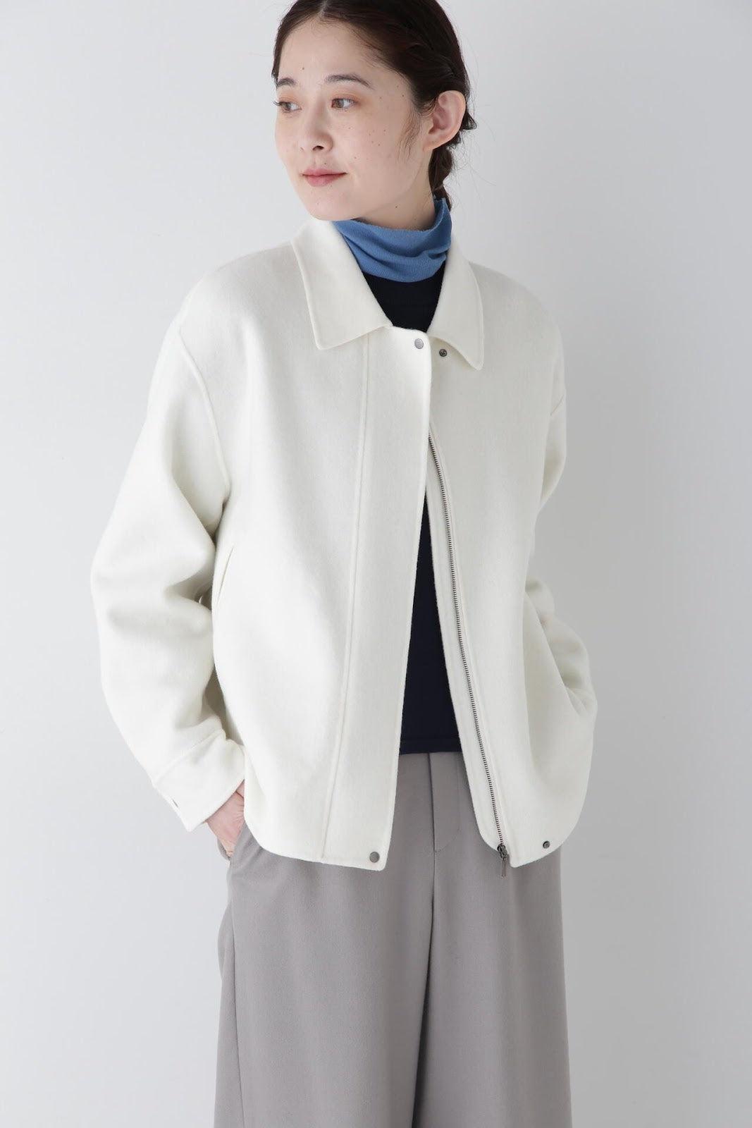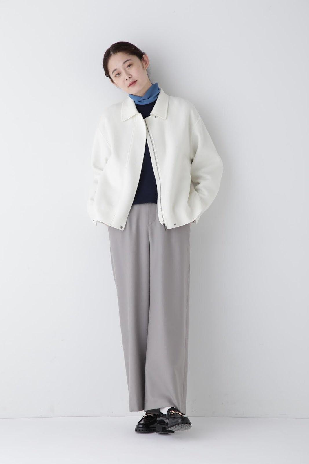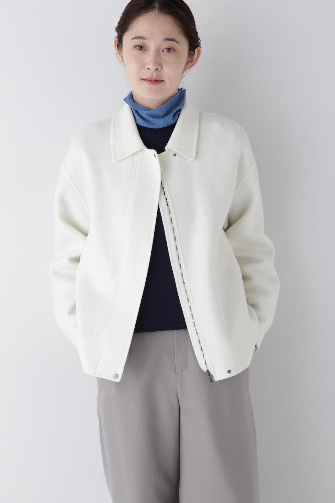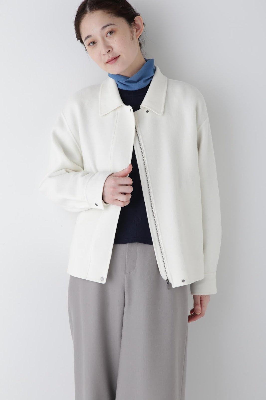 採用優質反面縫製工藝的短款罩衫 [設計要點] 這款方形拉鍊短款罩衫採用反面縫製工藝。口袋反面採用條紋袼褙。面料採用雙織海狸面料,質地輕盈,表面光潔,即使沒有襯裡,也能給人以安全感。這是一款著裝能力很強的罩衫,無論在工作中還是在工作外都很活躍,既美觀又隨意,不會因為長度而選擇容易掌握平衡的下裝。