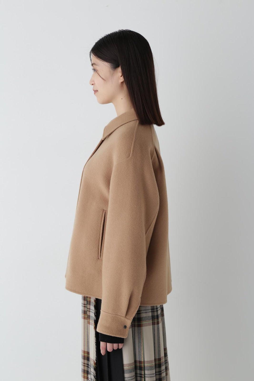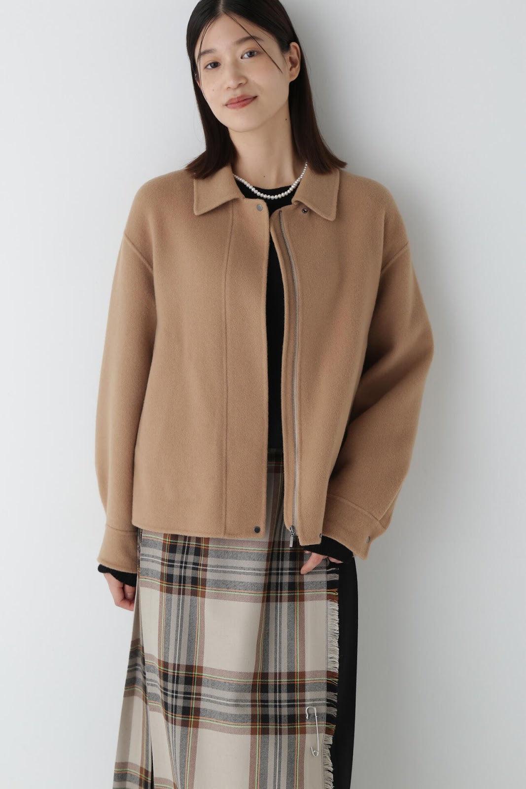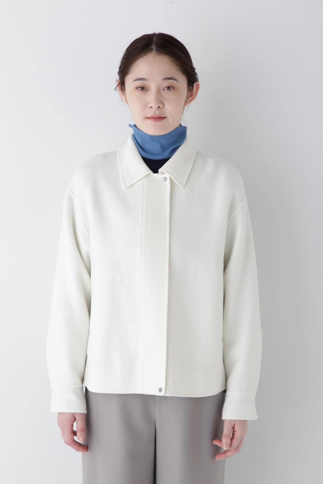 採用優質反面縫製工藝的短款罩衫 [設計要點] 這款方形拉鍊短款罩衫採用反面縫製工藝。口袋反面採用條紋袼褙。面料採用雙織海狸面料,質地輕盈,表面光潔,即使沒有襯裡,也能給人以安全感。這是一款著裝能力很強的罩衫,無論在工作中還是在工作外都很活躍,既美觀又隨意,不會因為長度而選擇容易掌握平衡的下裝。