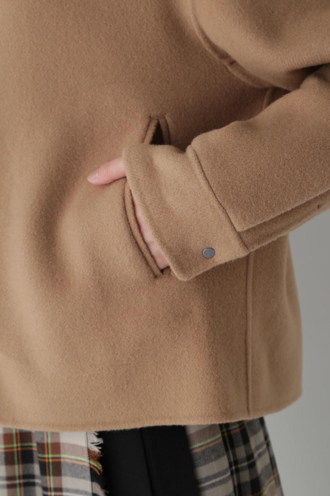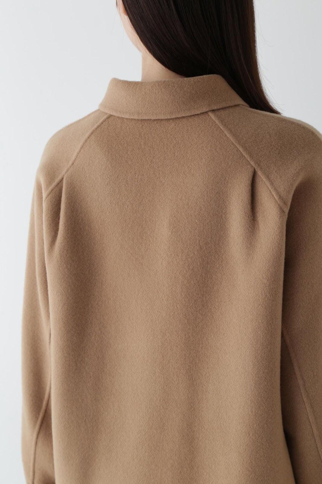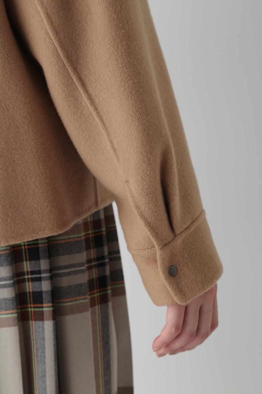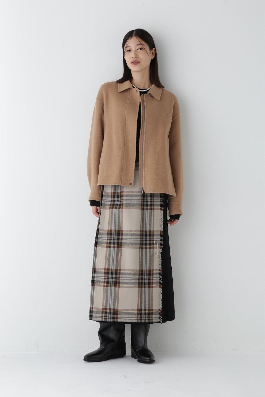 採用優質反面縫製工藝的短款罩衫 [設計要點] 這款方形拉鍊短款罩衫採用反面縫製工藝。口袋反面採用條紋袼褙。面料採用雙織海狸面料,質地輕盈,表面光潔,即使沒有襯裡,也能給人以安全感。這是一款著裝能力很強的罩衫,無論在工作中還是在工作外都很活躍,既美觀又隨意,不會因為長度而選擇容易掌握平衡的下裝。