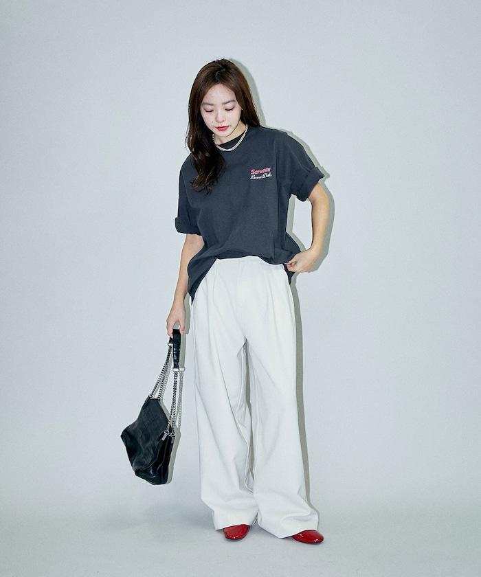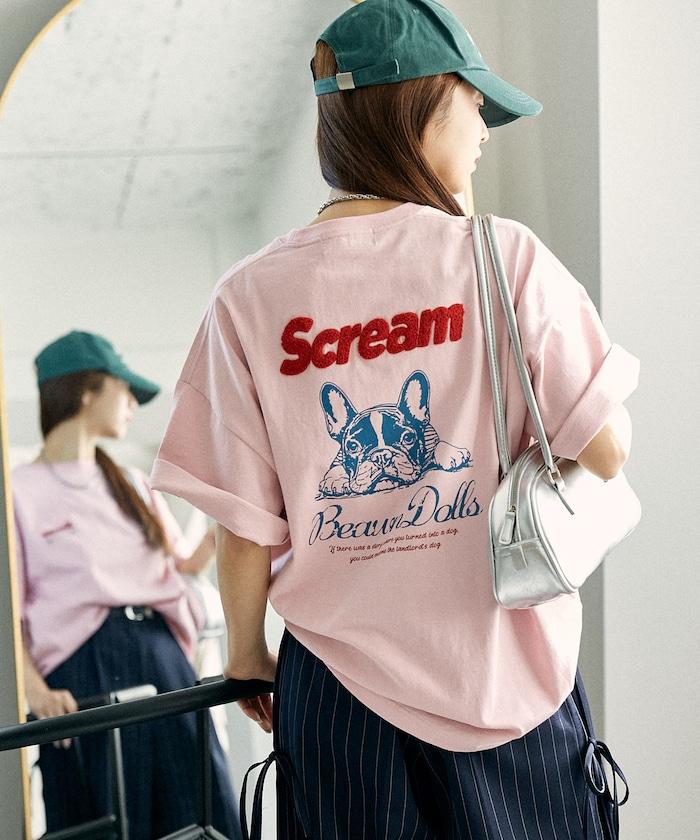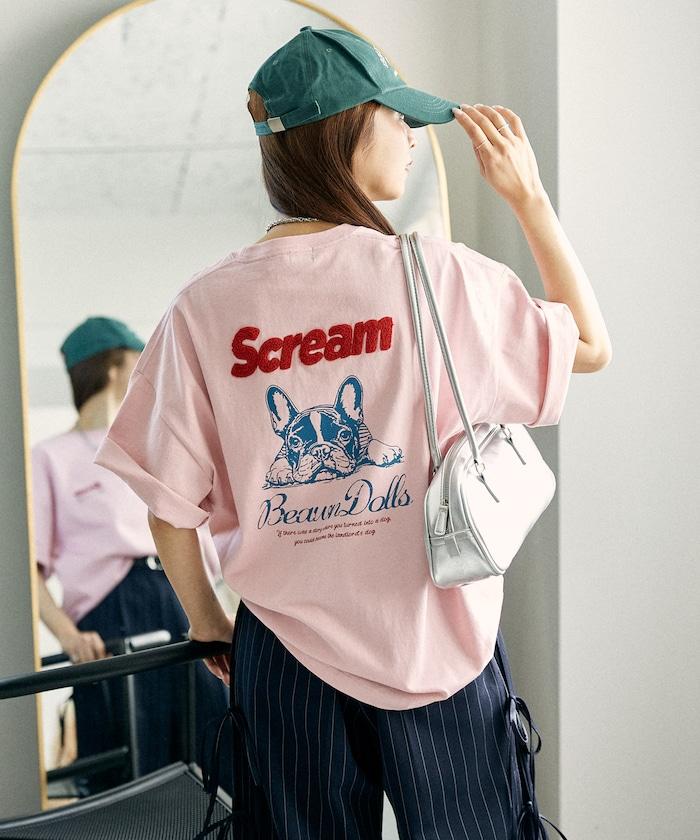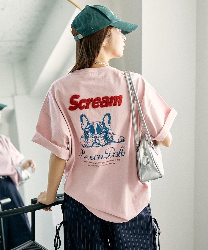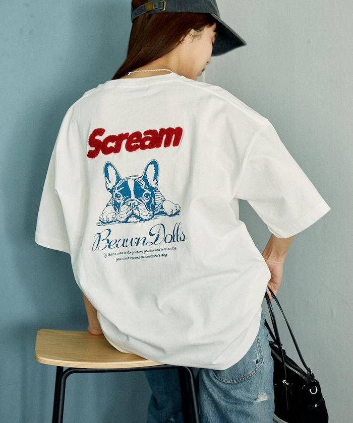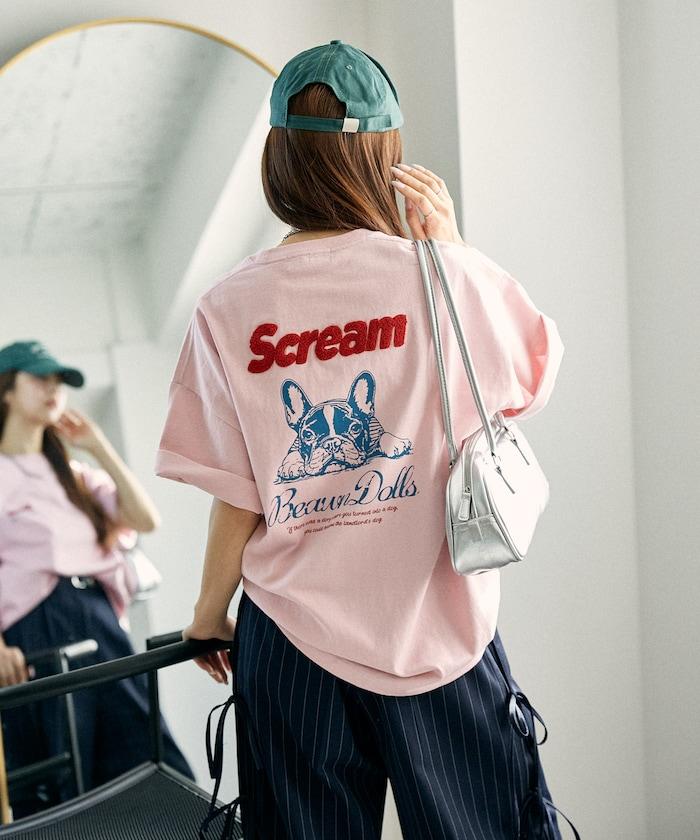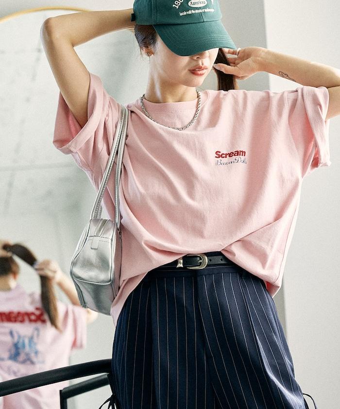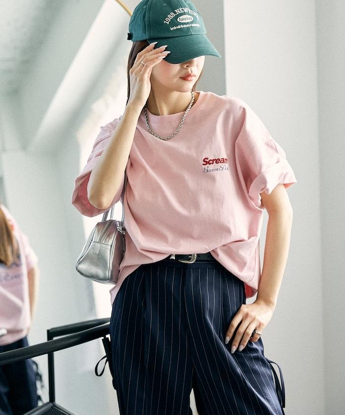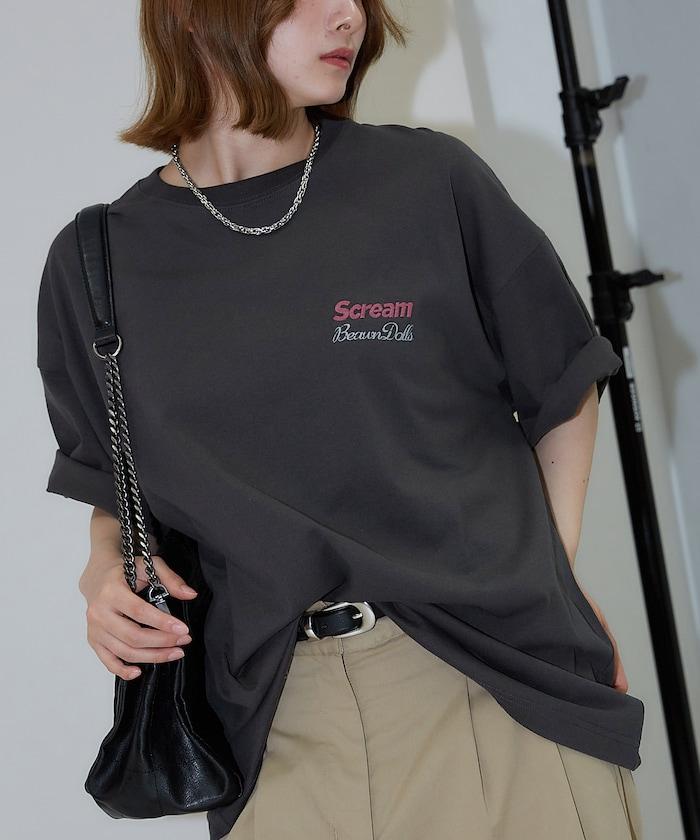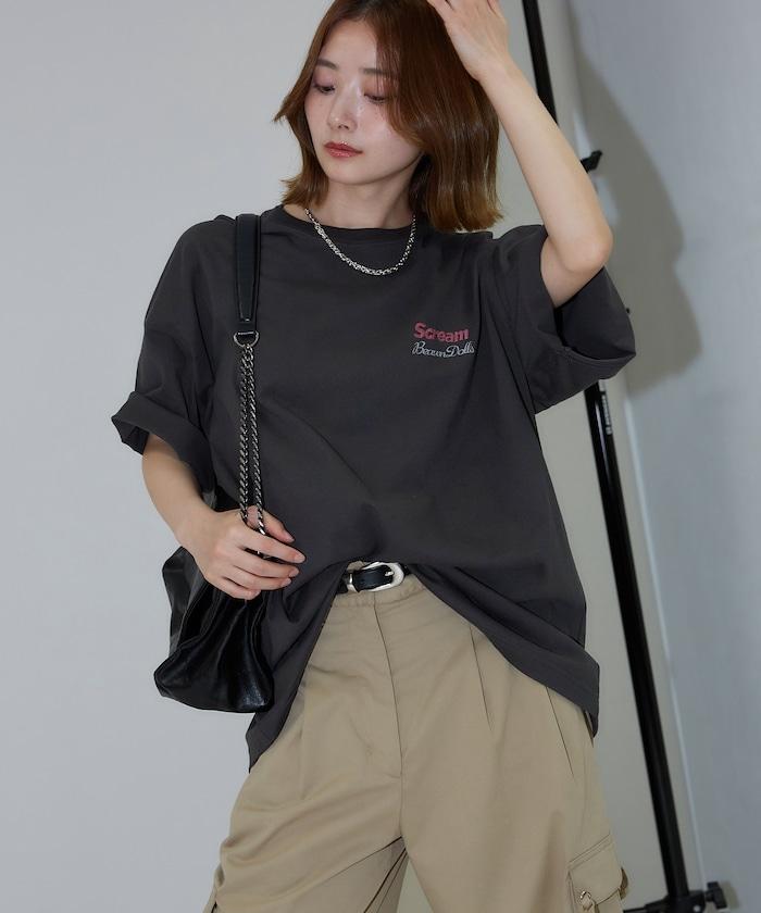 橡膠印花和相良刺繡的可愛 T 恤