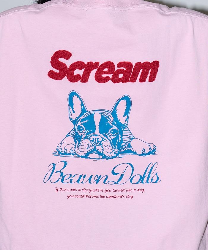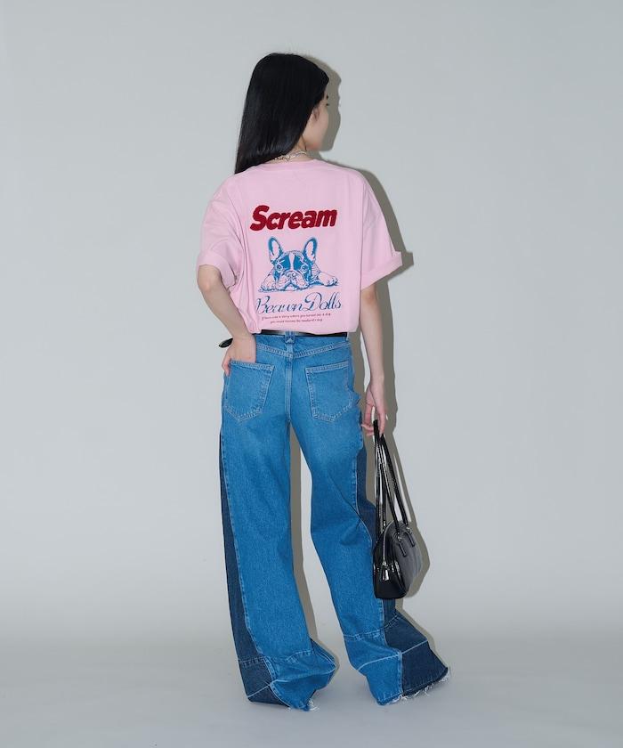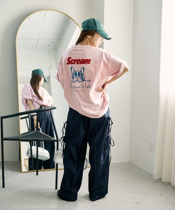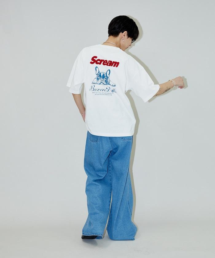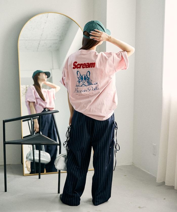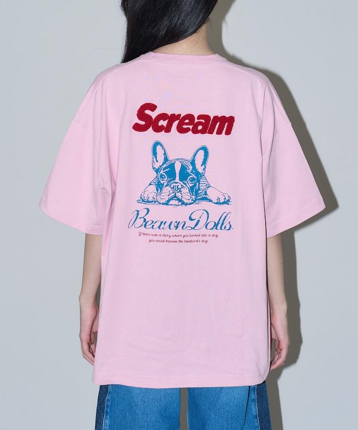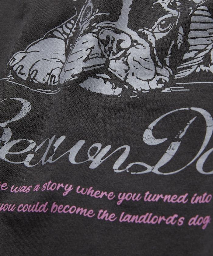 背面印有可愛法國鬥牛犬圖案的 T 恤。