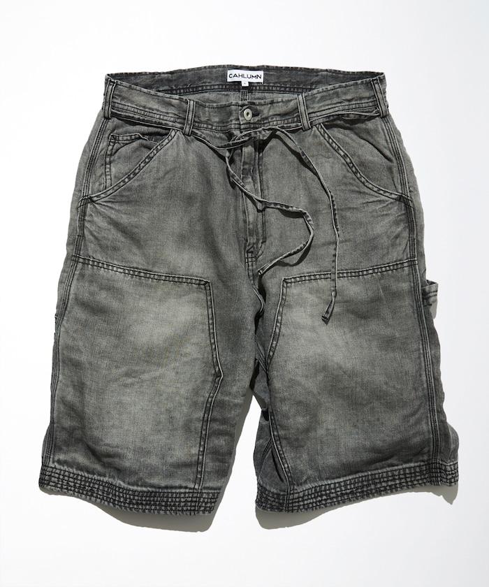 畫家短褲採用 10 盎司岡山牛仔面料和 100% 原產法國的亞麻布製成。亞麻紗線在賓果地區進行繩染,在比丘地區製成布料,然後在賓果地區再次加工。雖然是亞麻布,但織物的老化方式與棉牛仔布相同。通常,繩染的是棉紗。很少用亞麻布生產。不過,這樣做可以品味到這種材料獨有的自然特徵,而棉布則不具備這些特徵。如上所述,亞麻具有保暖性、耐用性、散熱性、吸溼性和快乾性。它能讓多餘的熱量散發出去,保持乾爽"。(A.H.)