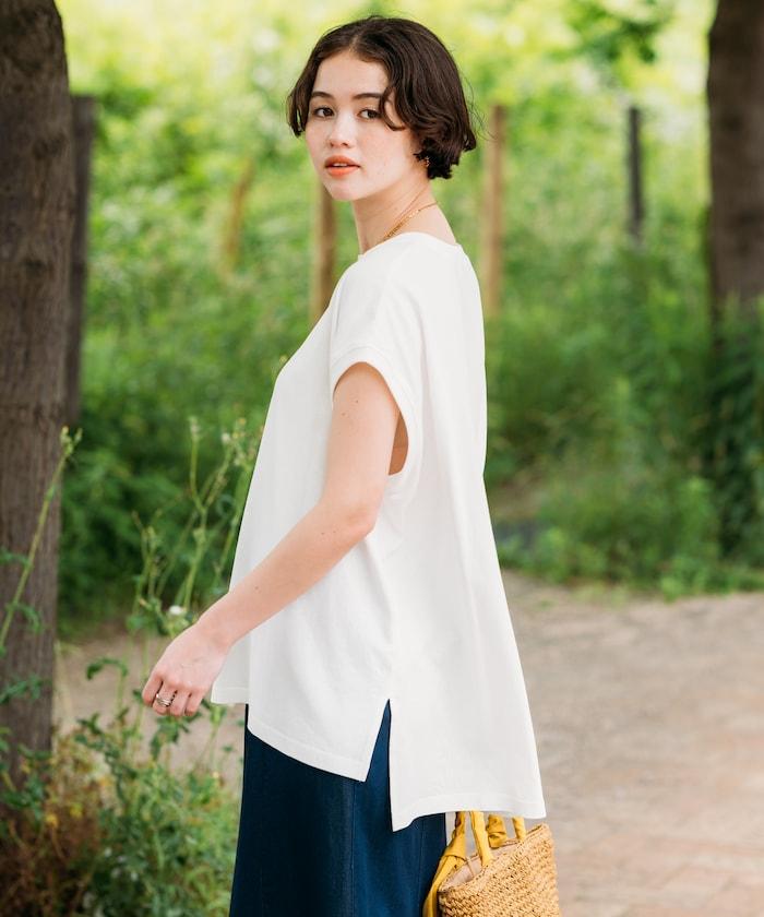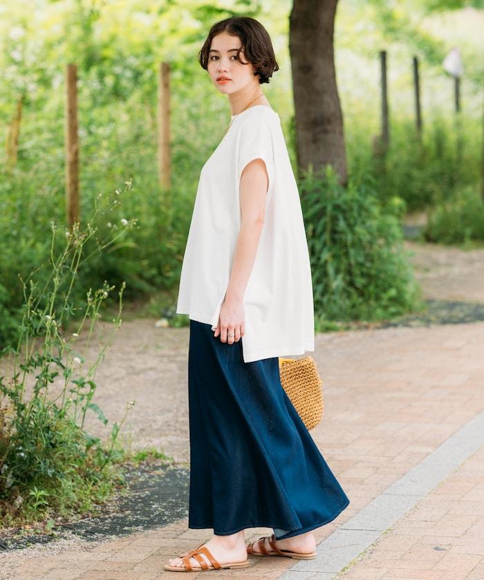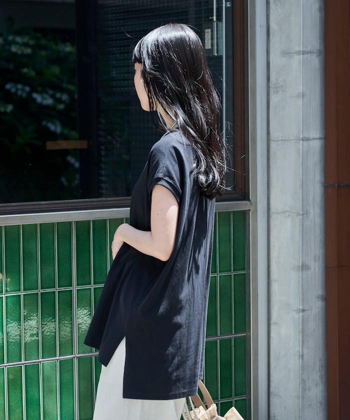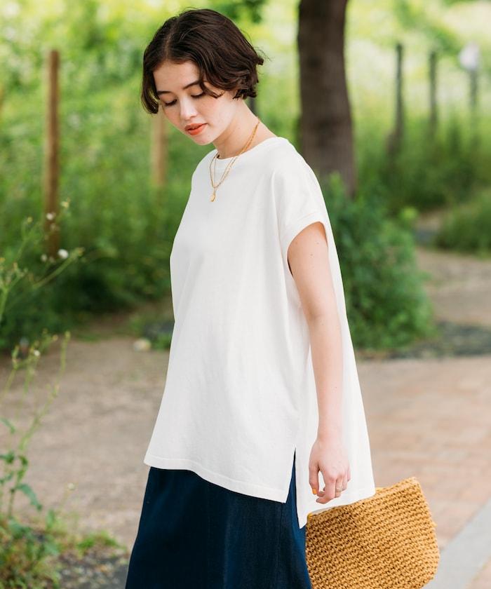 長款平紋 T 恤由 100% 純棉針織布製成,不會太厚,在炎熱的天氣裡也能輕鬆穿著。