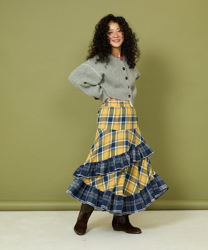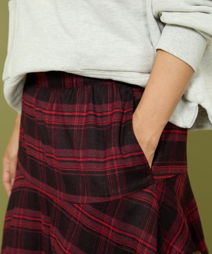 這款聚攏裙採用了秋冬季特有的法蘭絨格紋面料。
